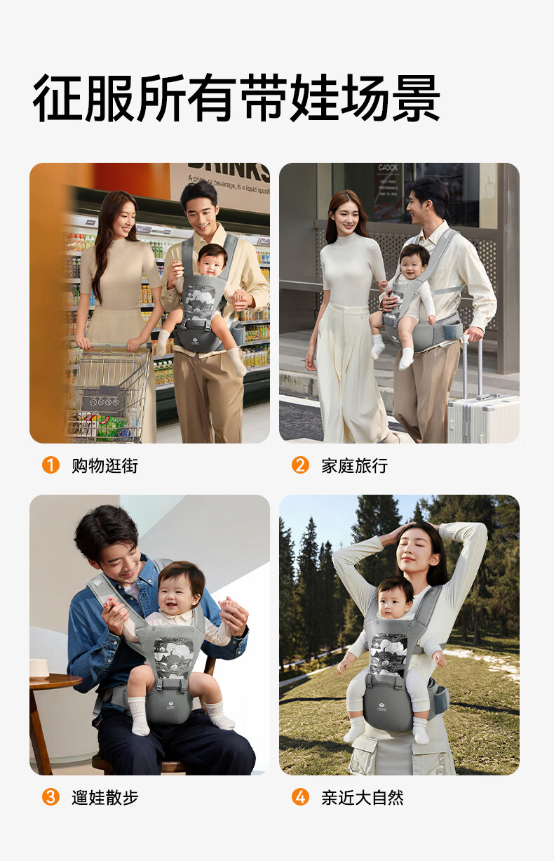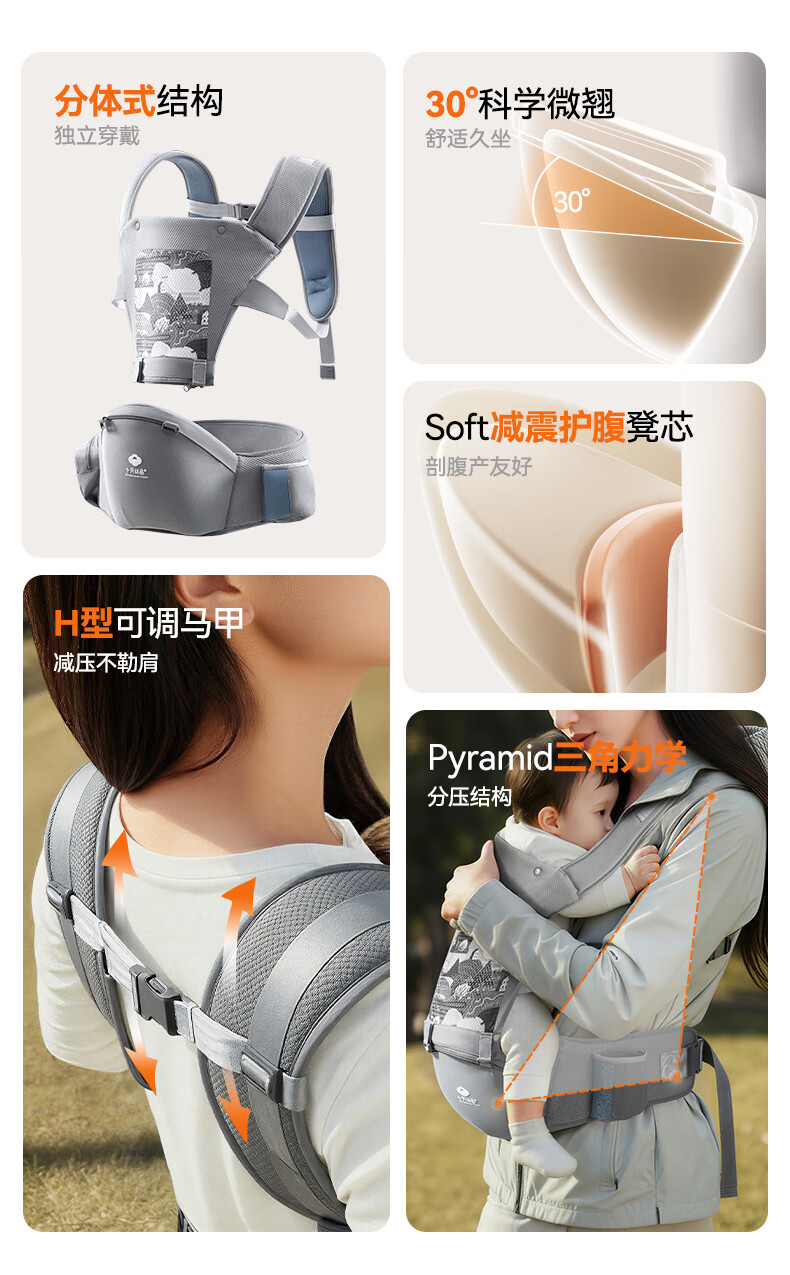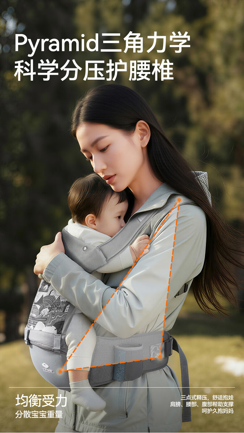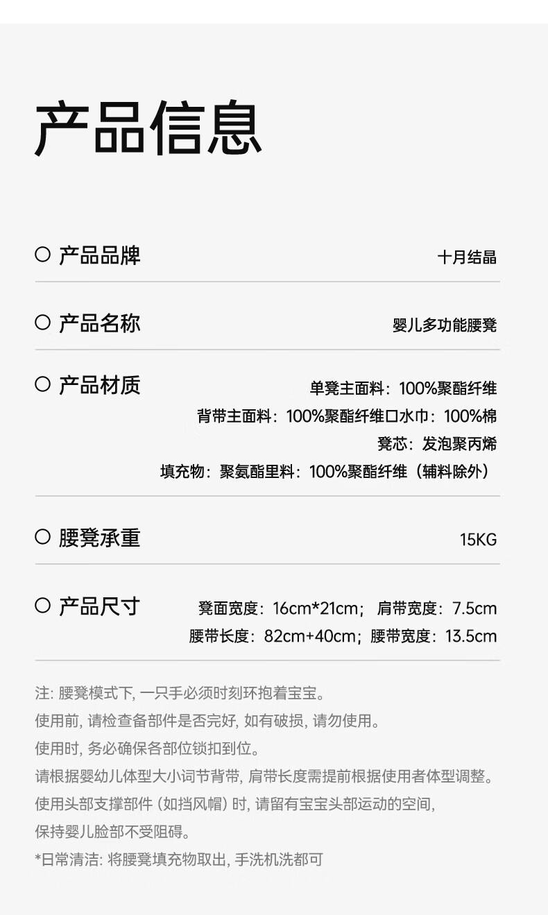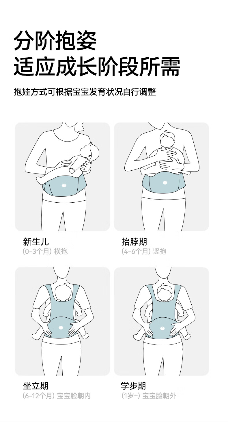 十月结晶腰凳婴儿背带抱娃神器四季通用透气肩带多功能宝宝坐凳 青鸾灰