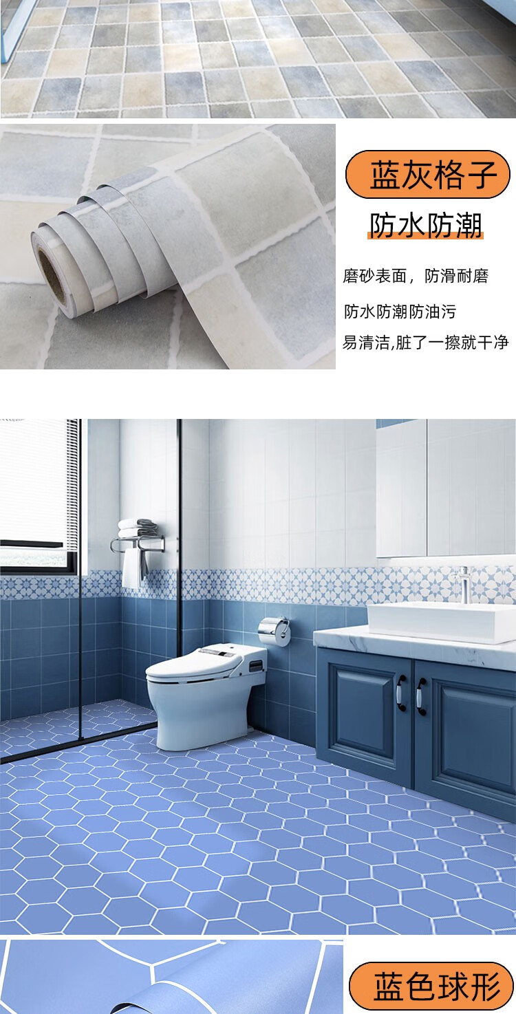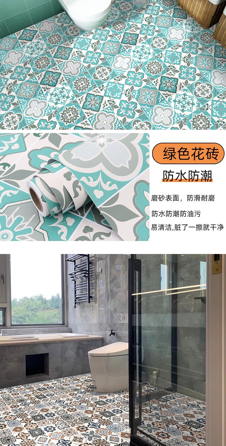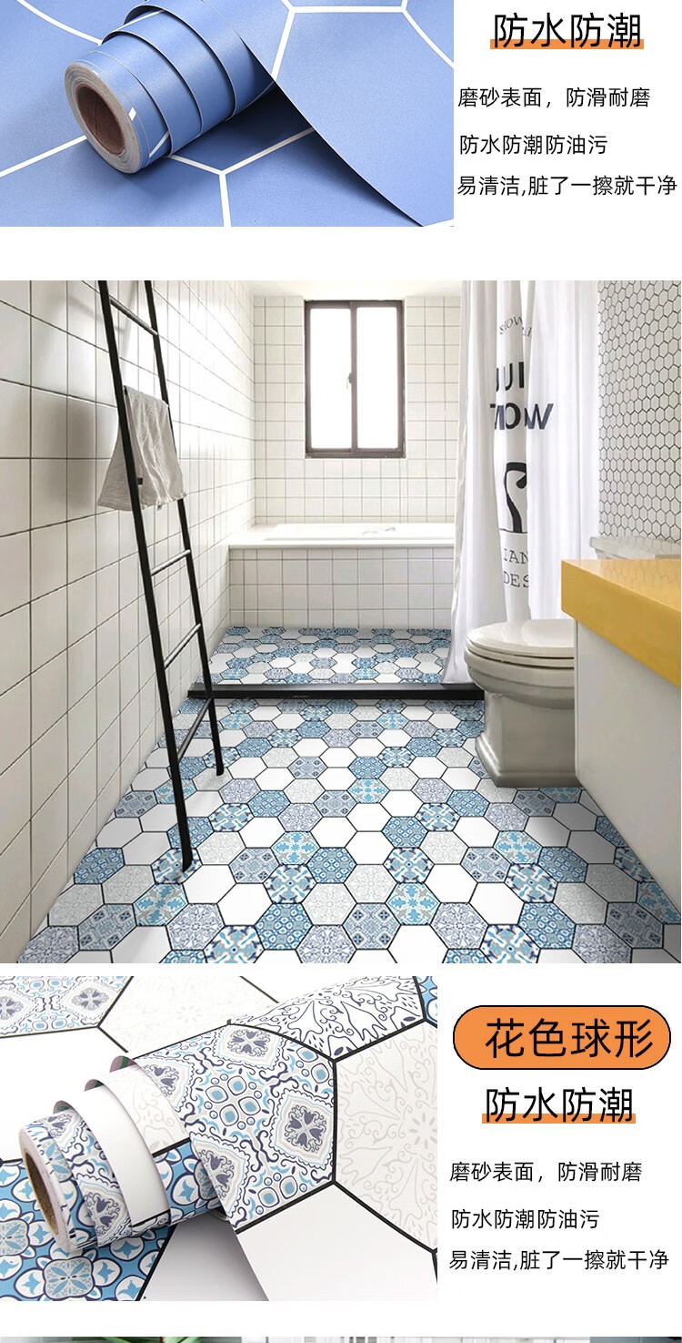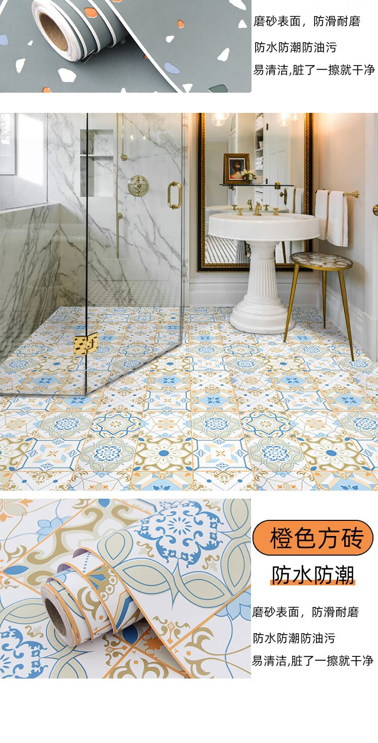 皇昇【特厚】地板贴卫生间加厚地砖翻新贴纸厨房防水防滑地面耐磨遮丑 黄色花格【防滑耐磨】0.35MM特厚 5米长*60厘米宽+工具