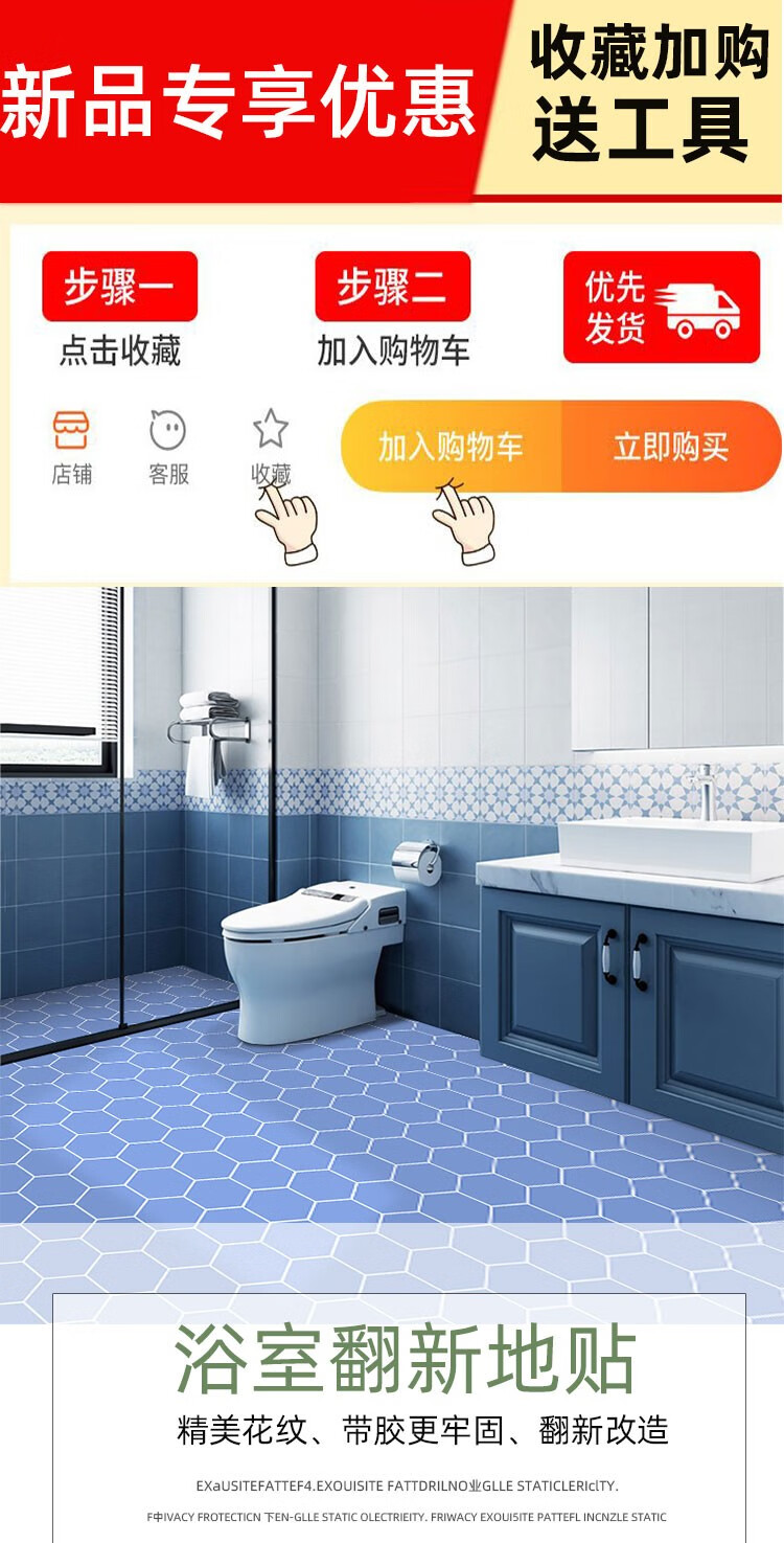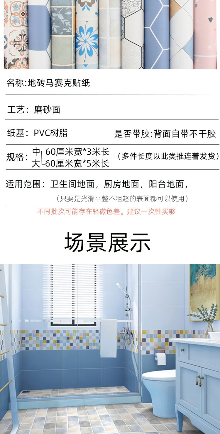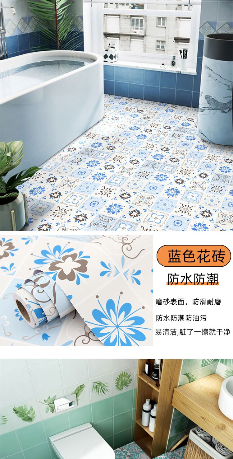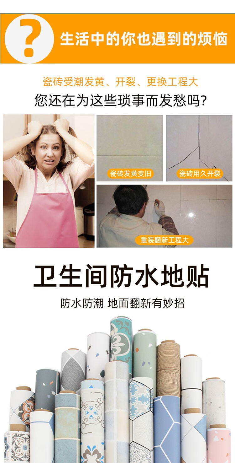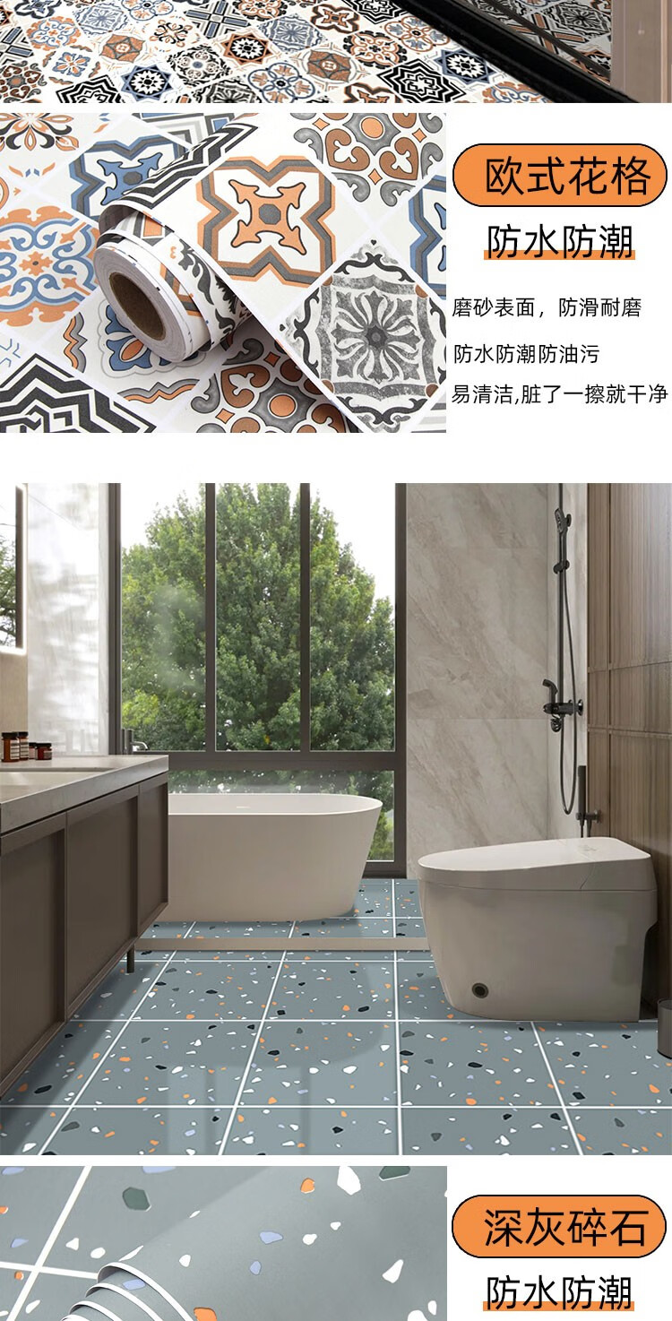 皇昇【特厚】地板贴卫生间加厚地砖翻新贴纸厨房防水防滑地面耐磨遮丑 黄色花格【防滑耐磨】0.35MM特厚 5米长*60厘米宽+工具