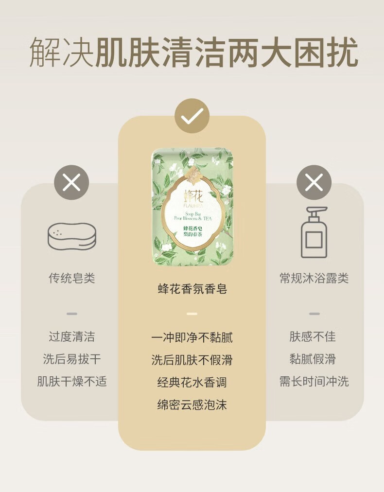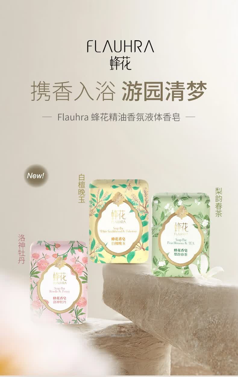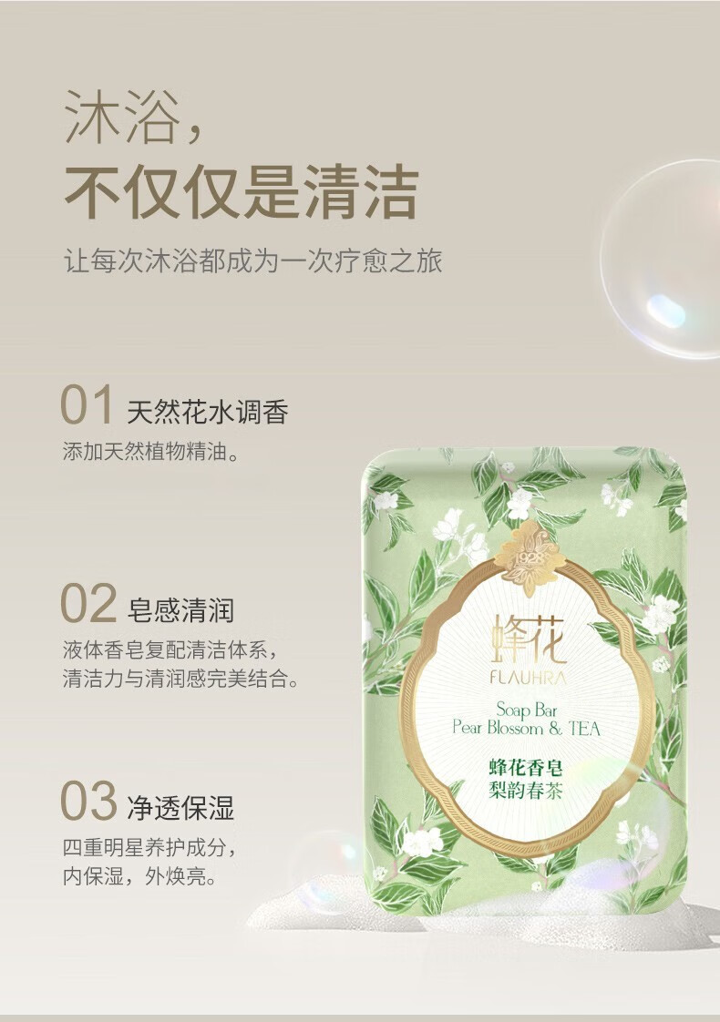 蜂花蜂花精油香氛香皂3块 牡丹春茶檀香皂洗脸沐浴洗澡洗手皂男女通用 3块装梨韵春茶(买2送皂盒)