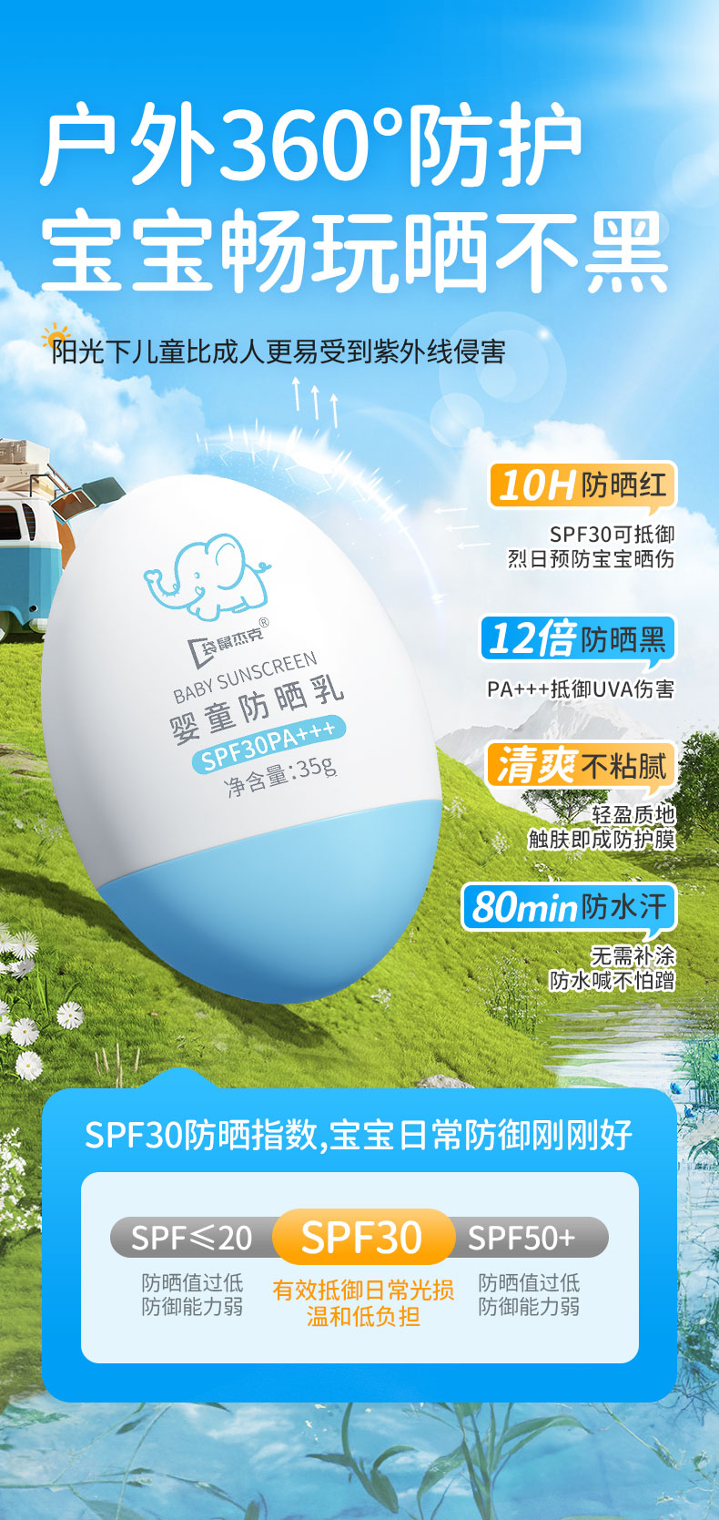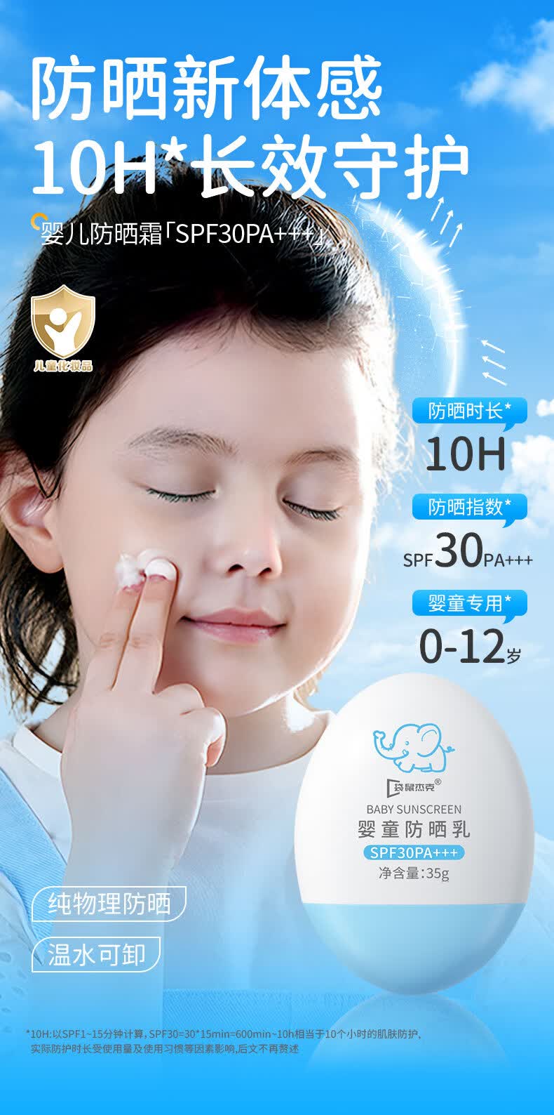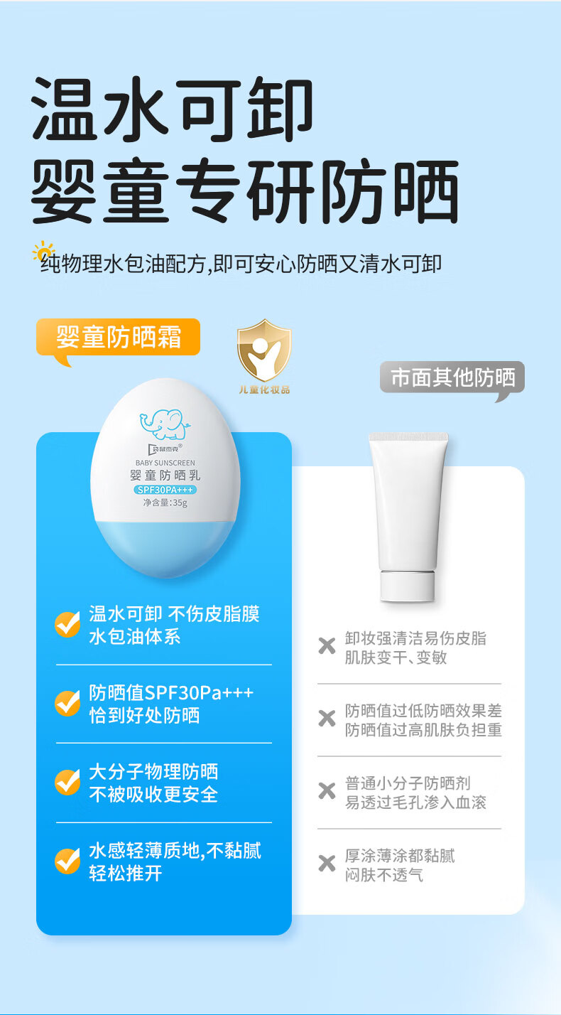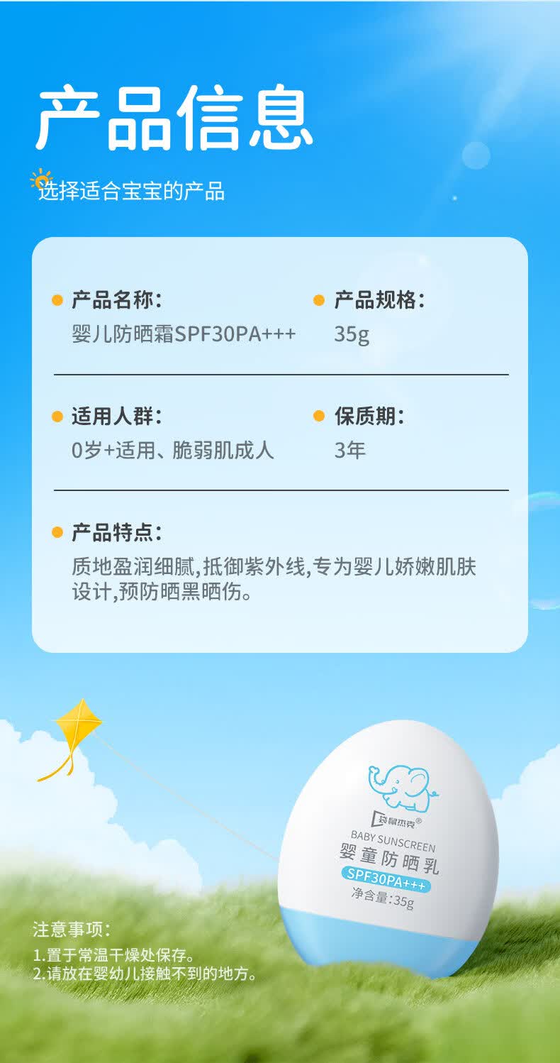 袋鼠杰克儿童防晒霜隔离紫外线婴儿宝宝防水防汗纯物理防晒乳35g