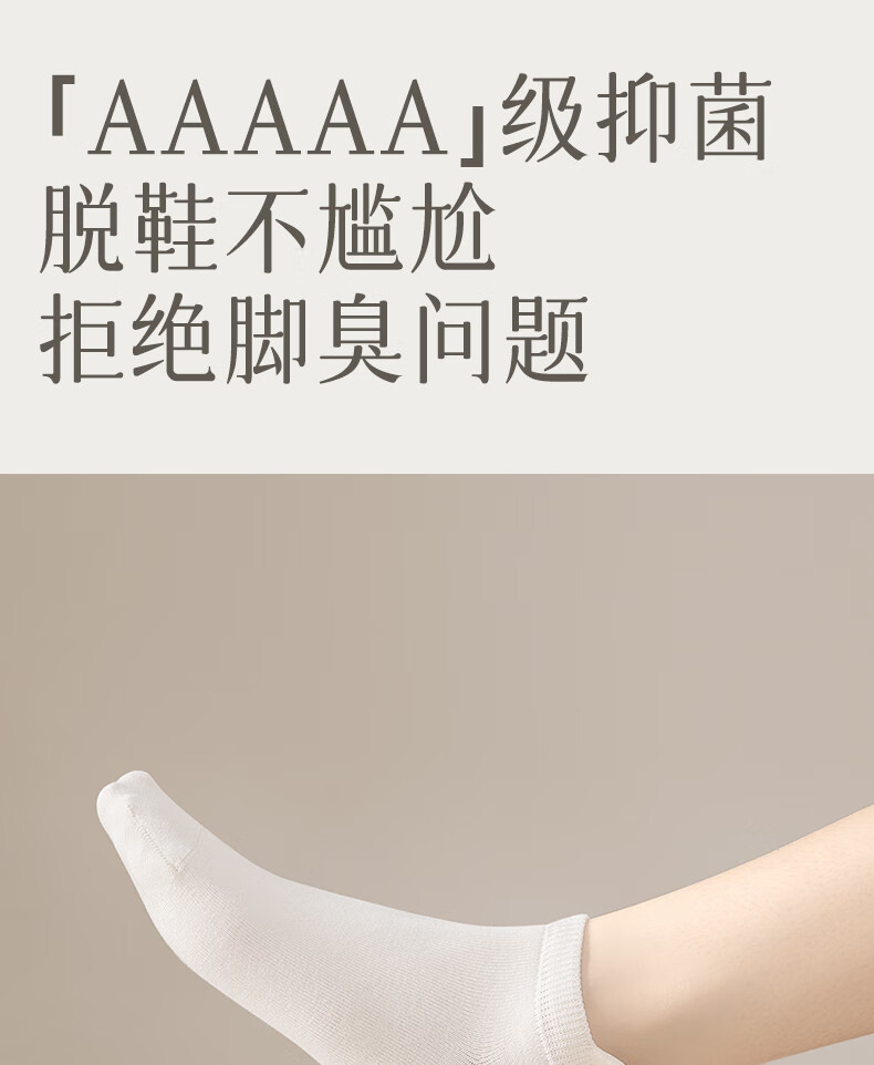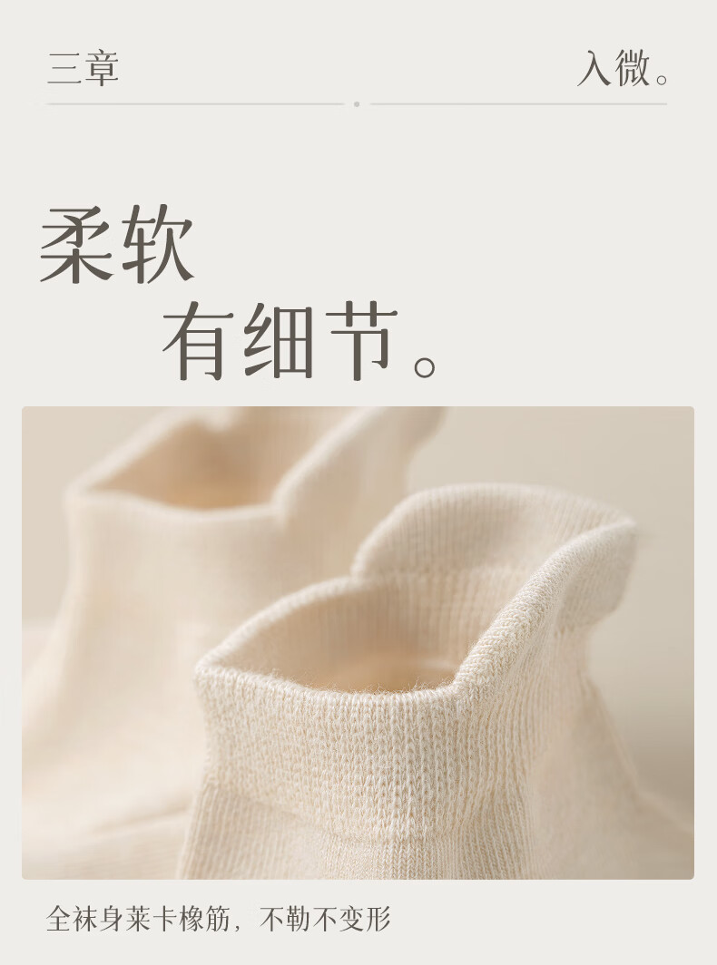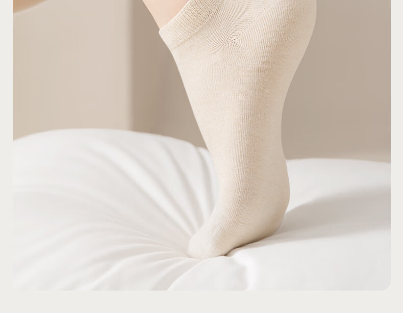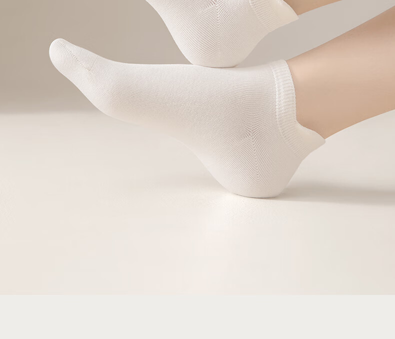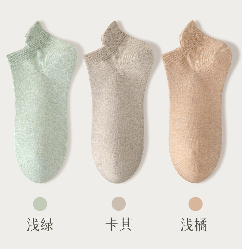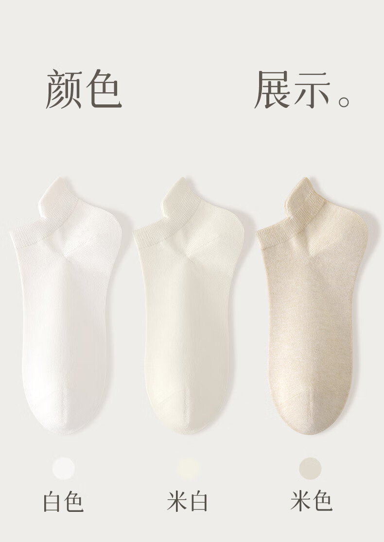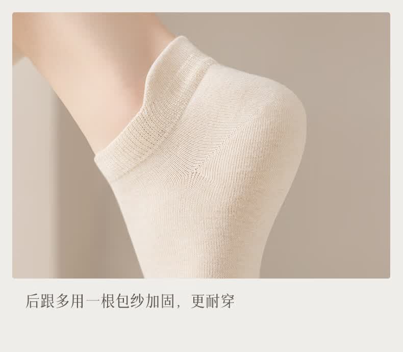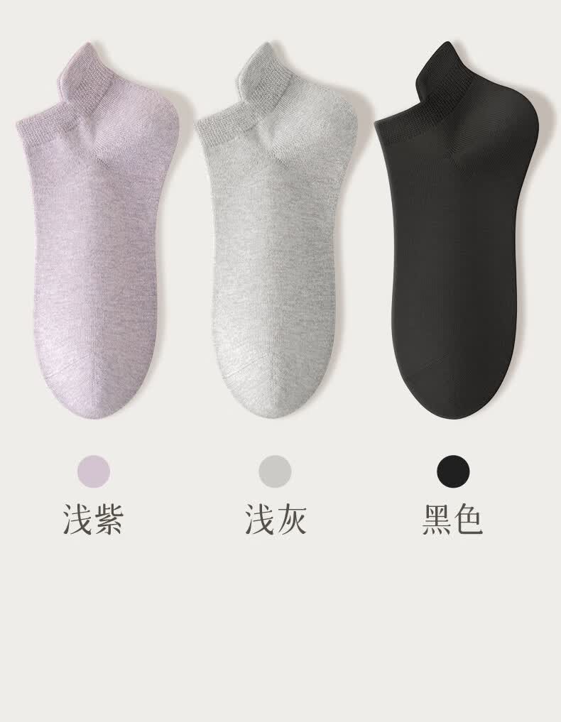 棉竹屋袜子女短袜春夏纯棉抗菌防臭吸汗透气无骨运动防滑女士船袜 白色+奶白+米色+浅灰+浅紫 5双 均码 35-39