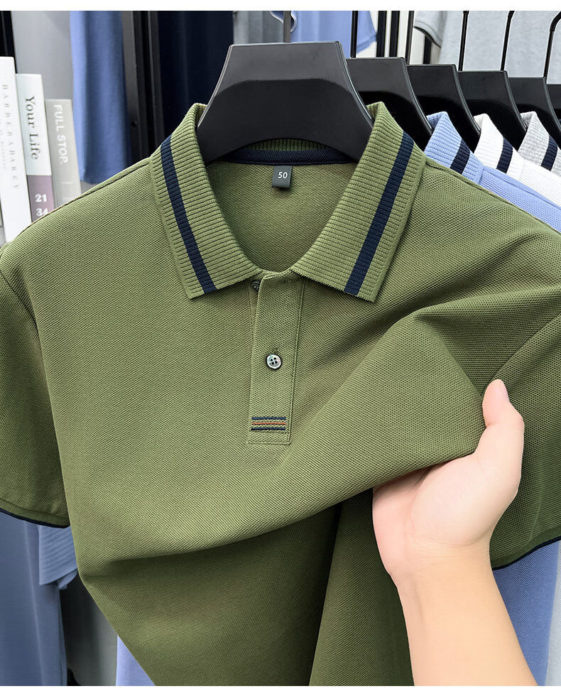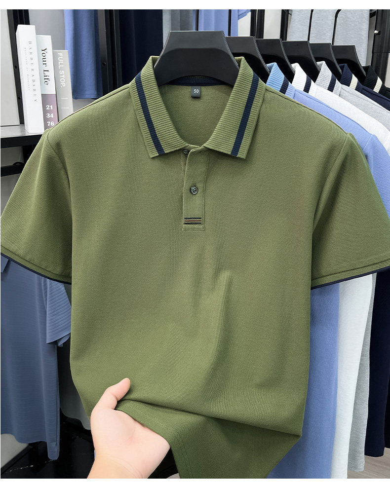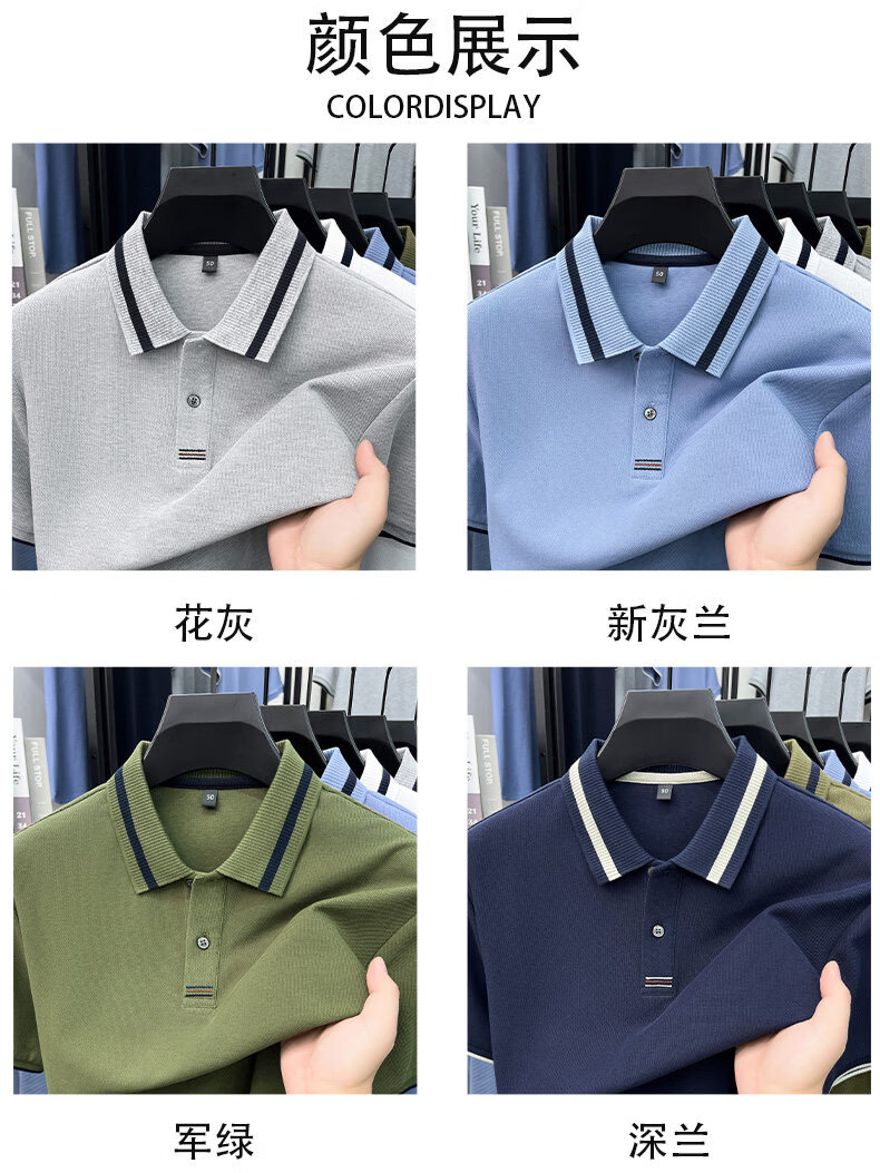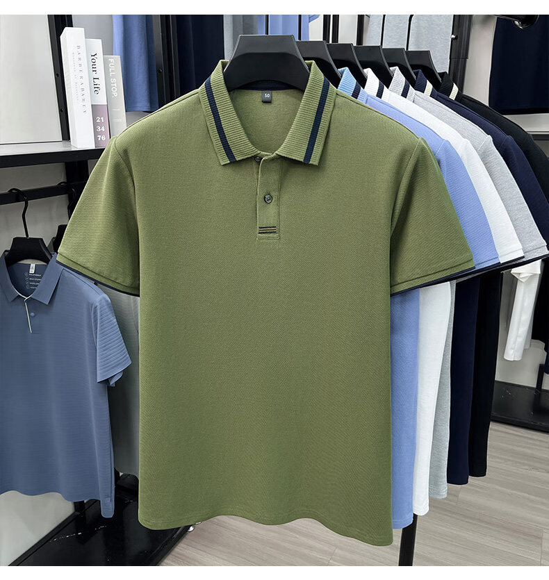 九牧王(JOEONE)男士2016新款翻领POLO衫中青年短袖T恤爸爸装打底衫衣 军绿色 XL