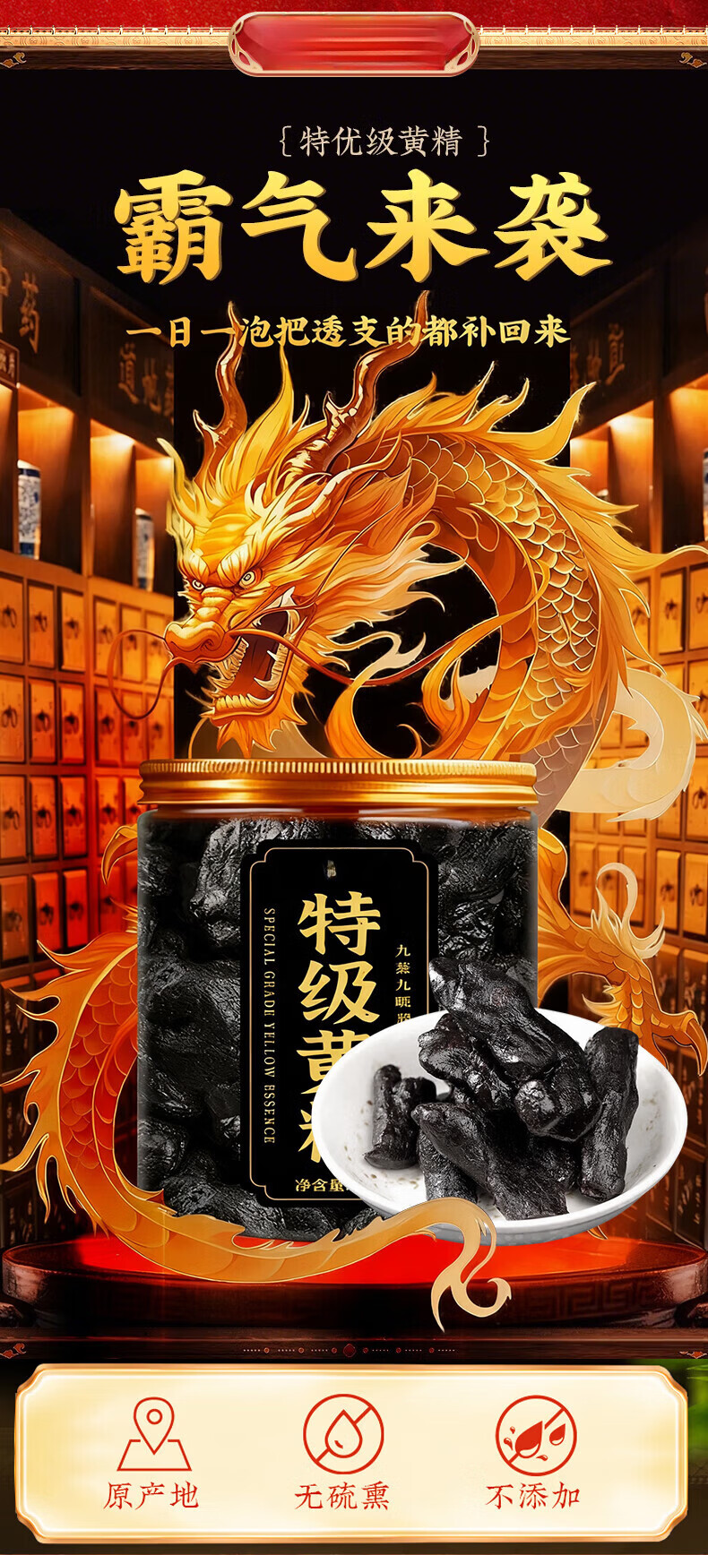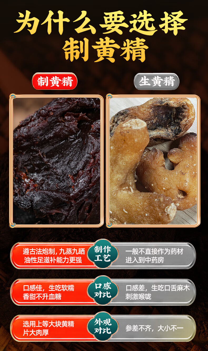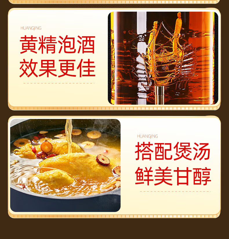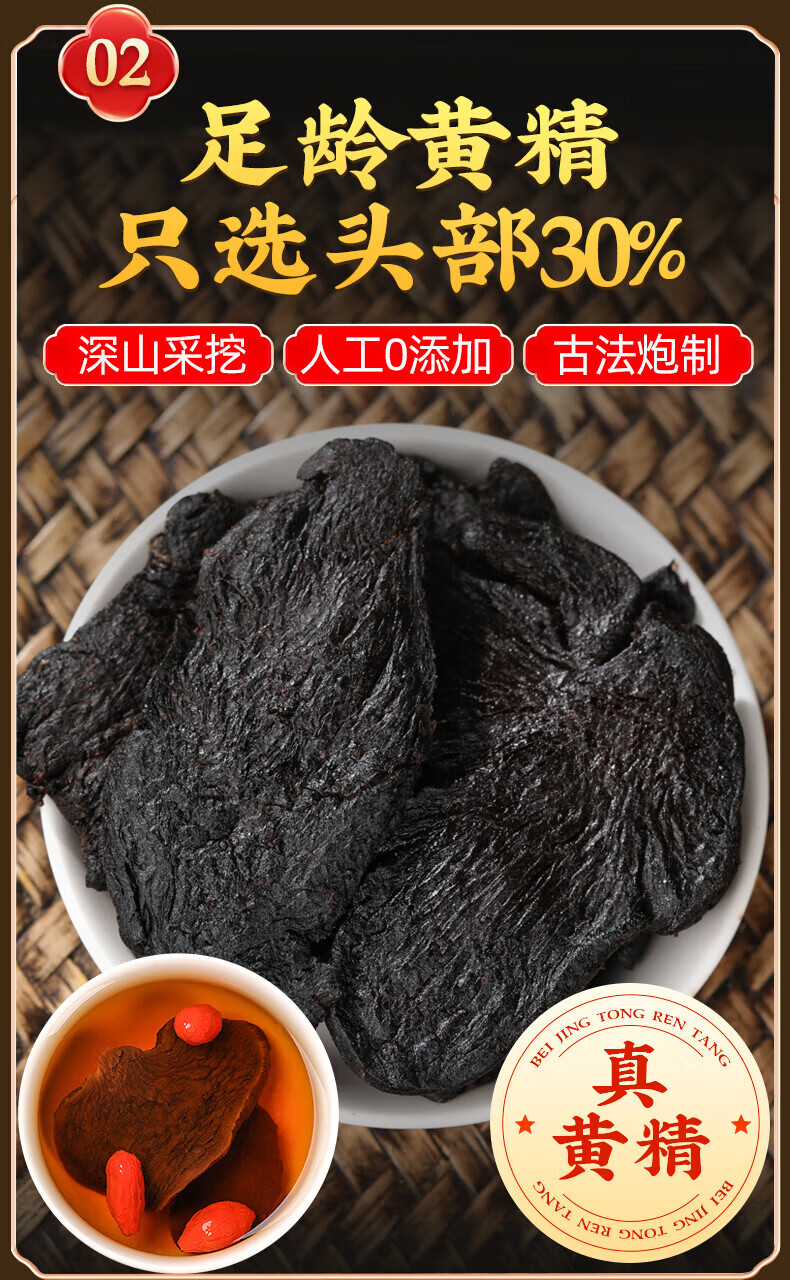 同仁堂(TRT)野生黄精九蒸九晒九华山深山野生制黄精油头黄精即食泡茶中药材 -补益肾精强筋健骨黄精片 250g*2罐