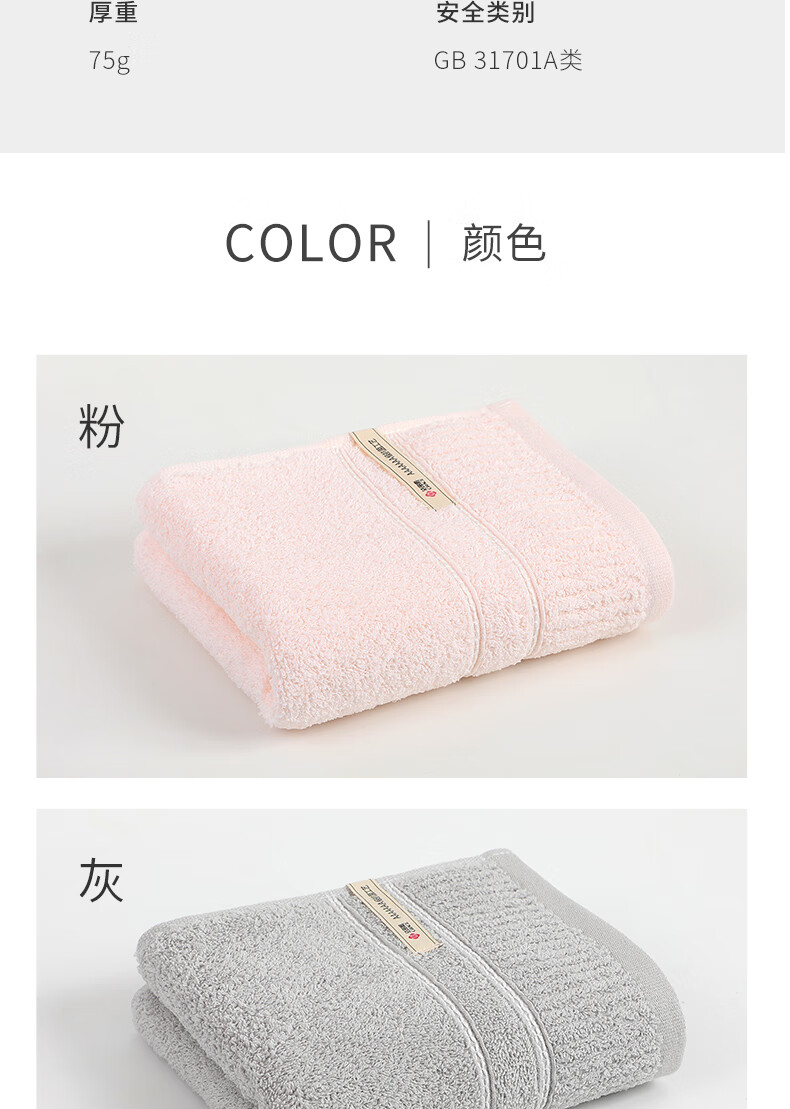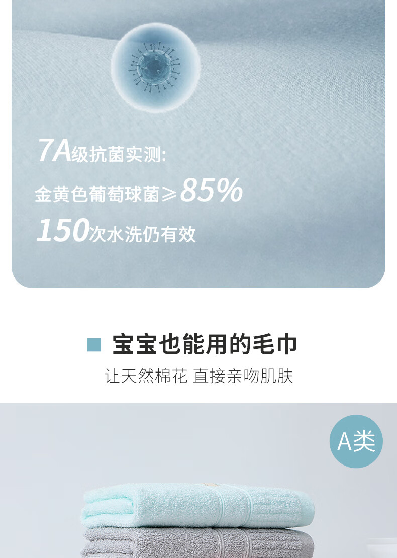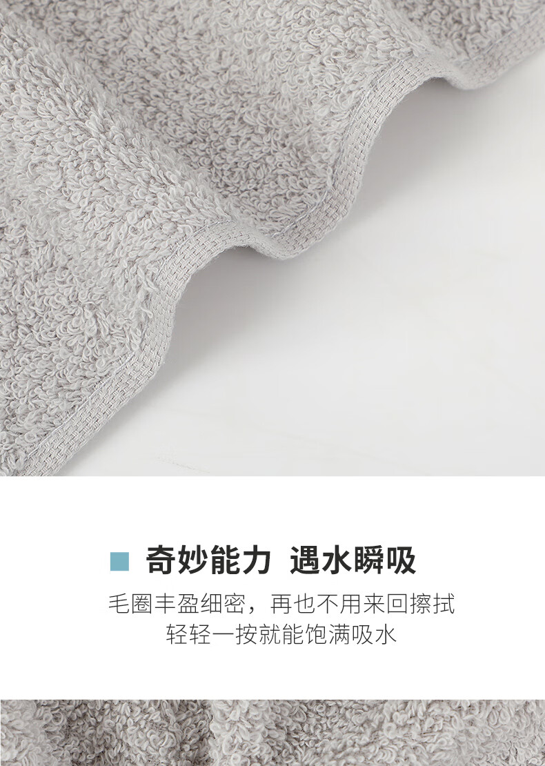无印良品毛巾7A级抗菌强吸水不易掉毛男士加厚2条装A类洗脸大毛巾115g/条