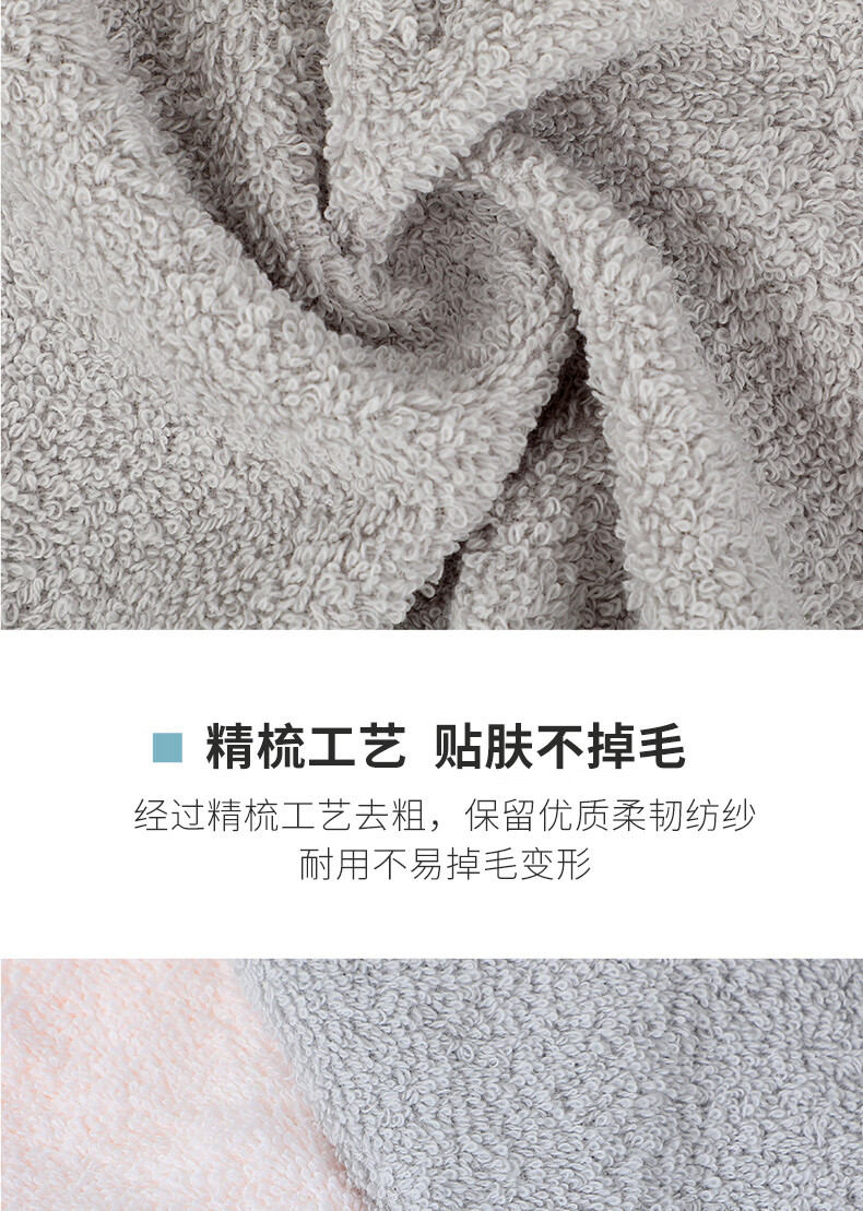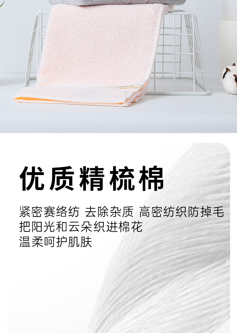 洁丽雅10A级抗菌纯棉毛巾 柔软吸水新疆长绒棉洗脸巾2条装浅灰+粉运动