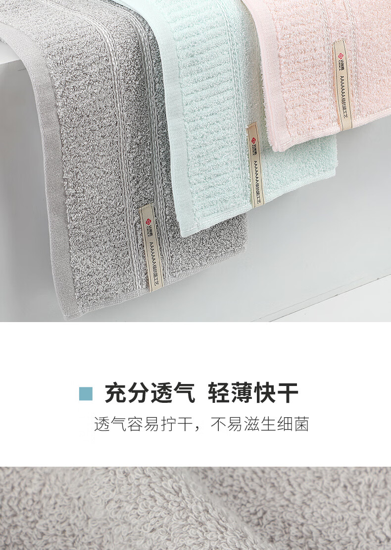 无印良品毛巾3条新疆全棉10A级抗菌男士100%纯棉家用超吸水洗澡擦脸大毛巾