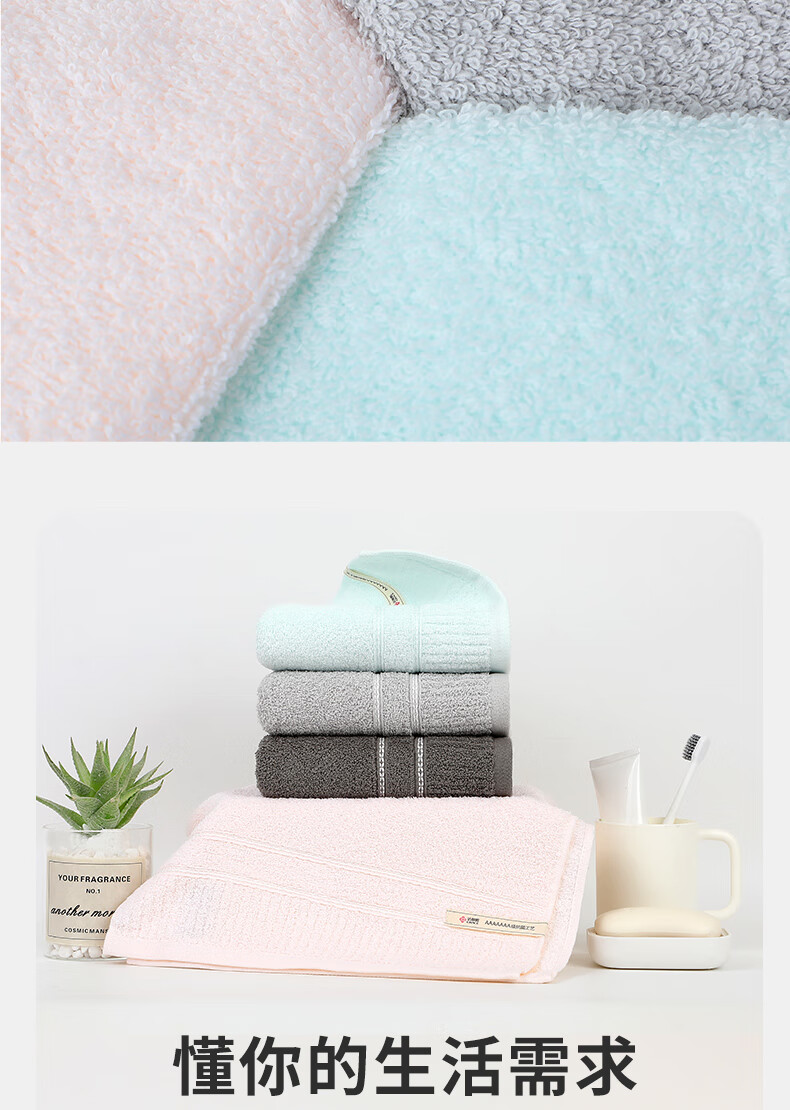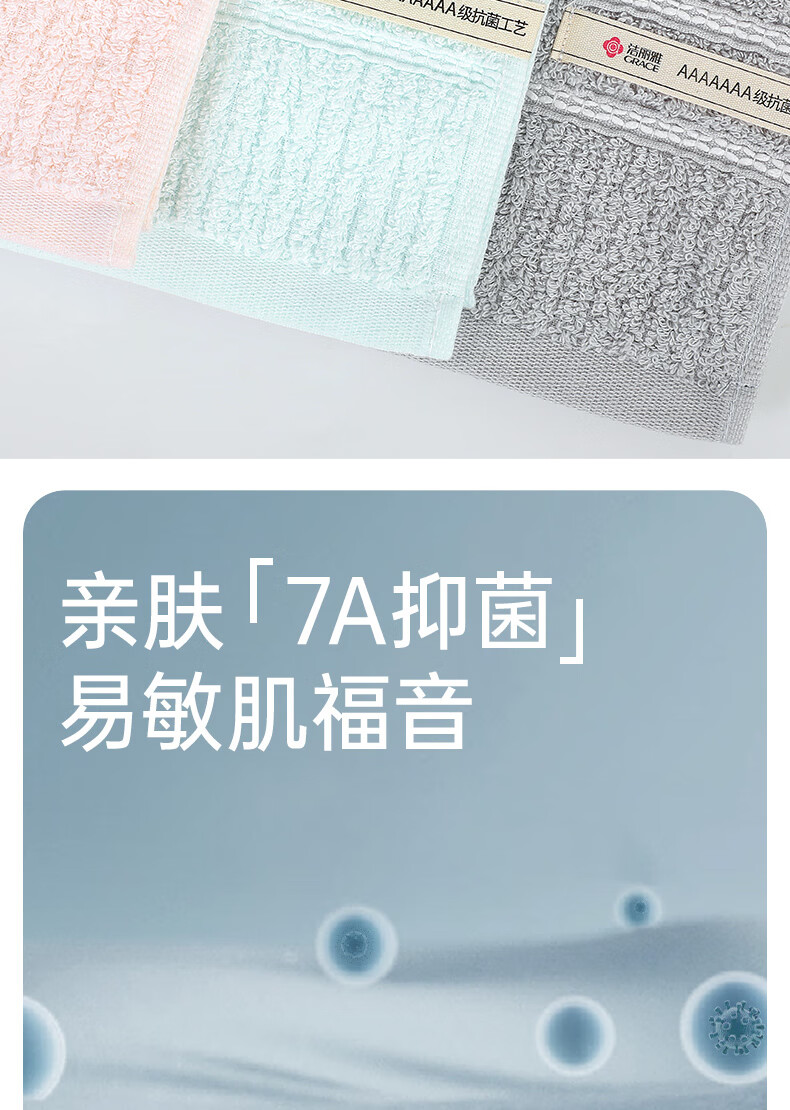 洁丽雅10A级抑菌抗菌纯棉毛巾4条装新疆长绒棉男女洗脸擦脸巾运动