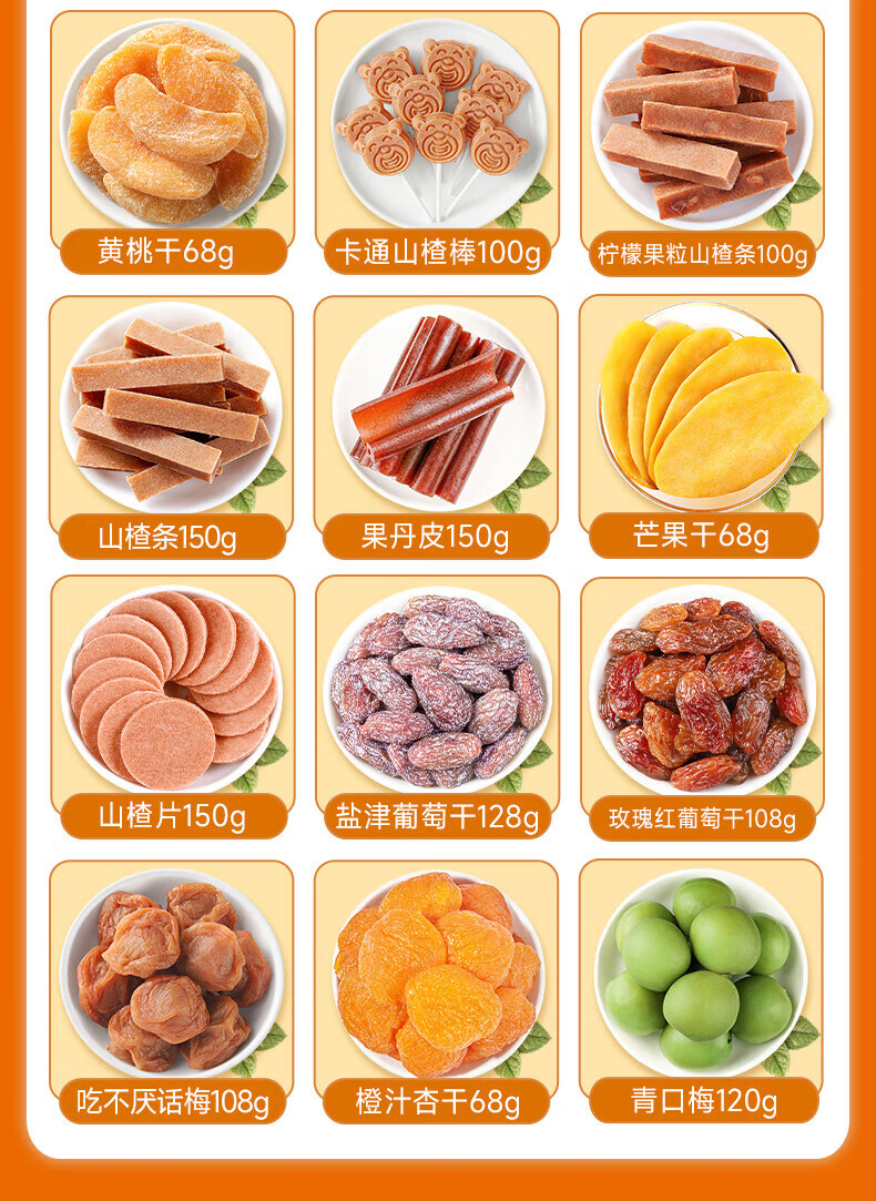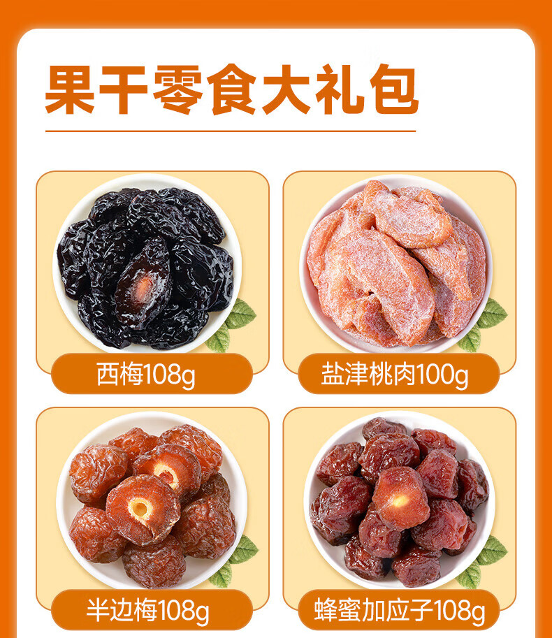 华味亨 蜜饯果干零食组合 盐津葡萄山楂西梅芒果干话梅蜜饯果干休闲零食 108g蜂蜜加应子