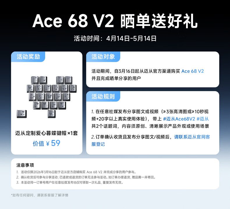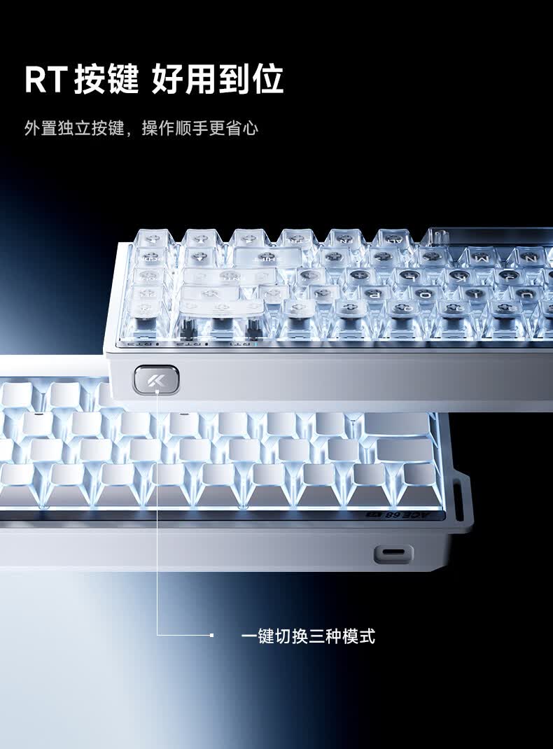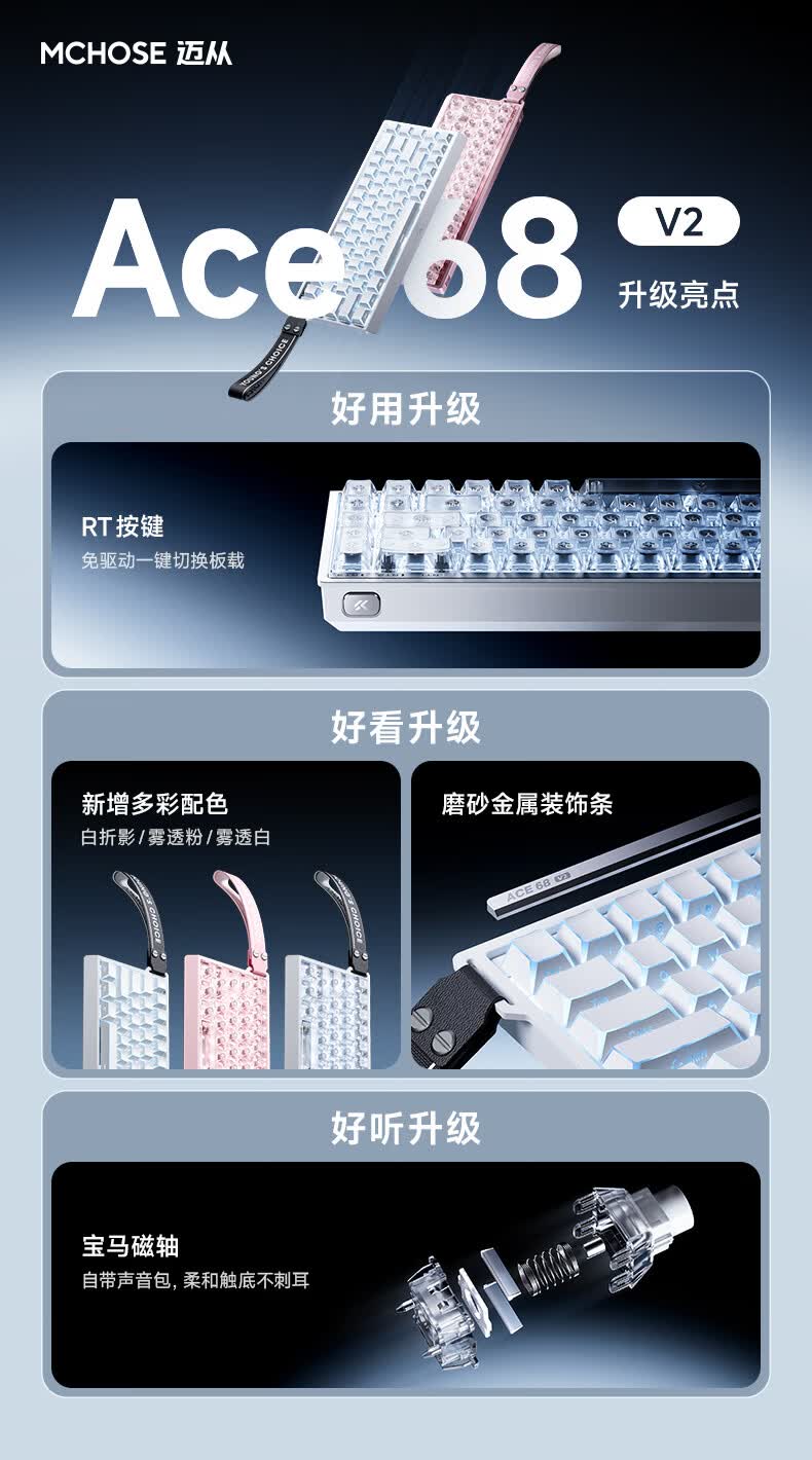 迈从(MCHOSE)Ace 68 V2磁轴键盘Gus同款RT电竞游戏低延迟60pro机械有线连接68键配列FPS双驱动无畏契约 Ace 68 V2 超竞版雾透白 星环磁轴+RT键