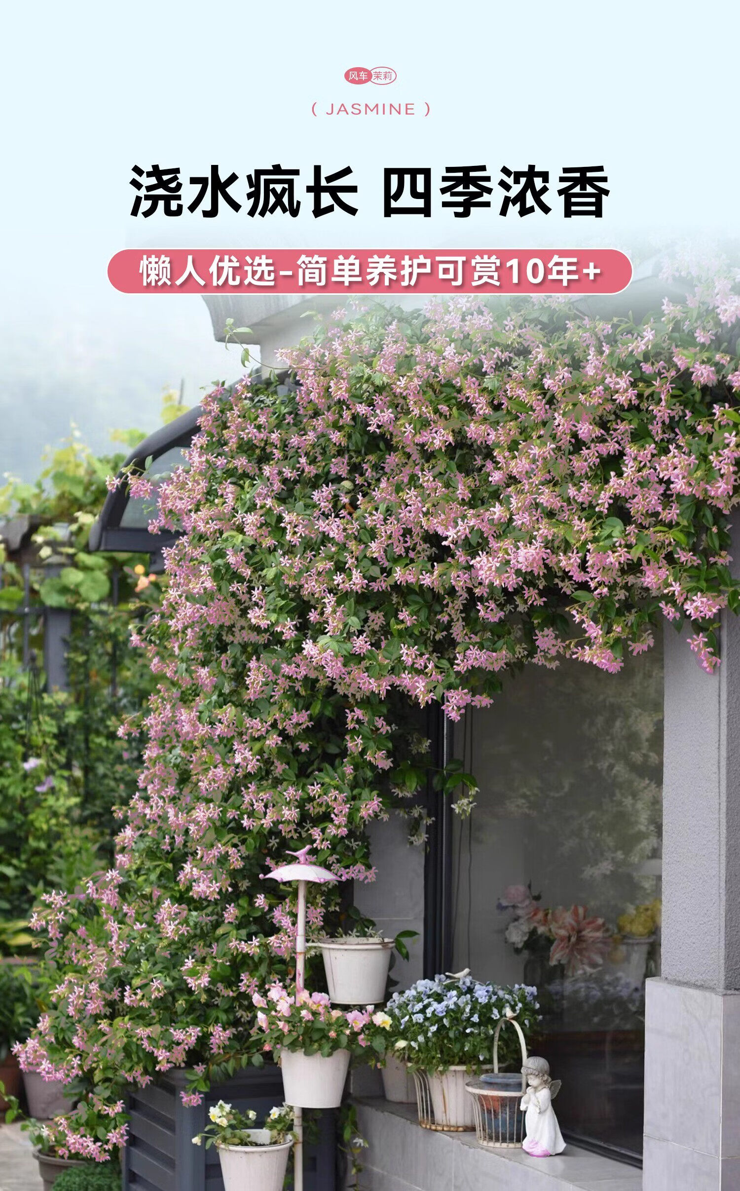 风车茉莉爬藤植物盆栽大苗棒棒糖花苗耐寒耐旱阳台庭院开花浓香型 白色爬藤茉莉【1.8-2.0米】