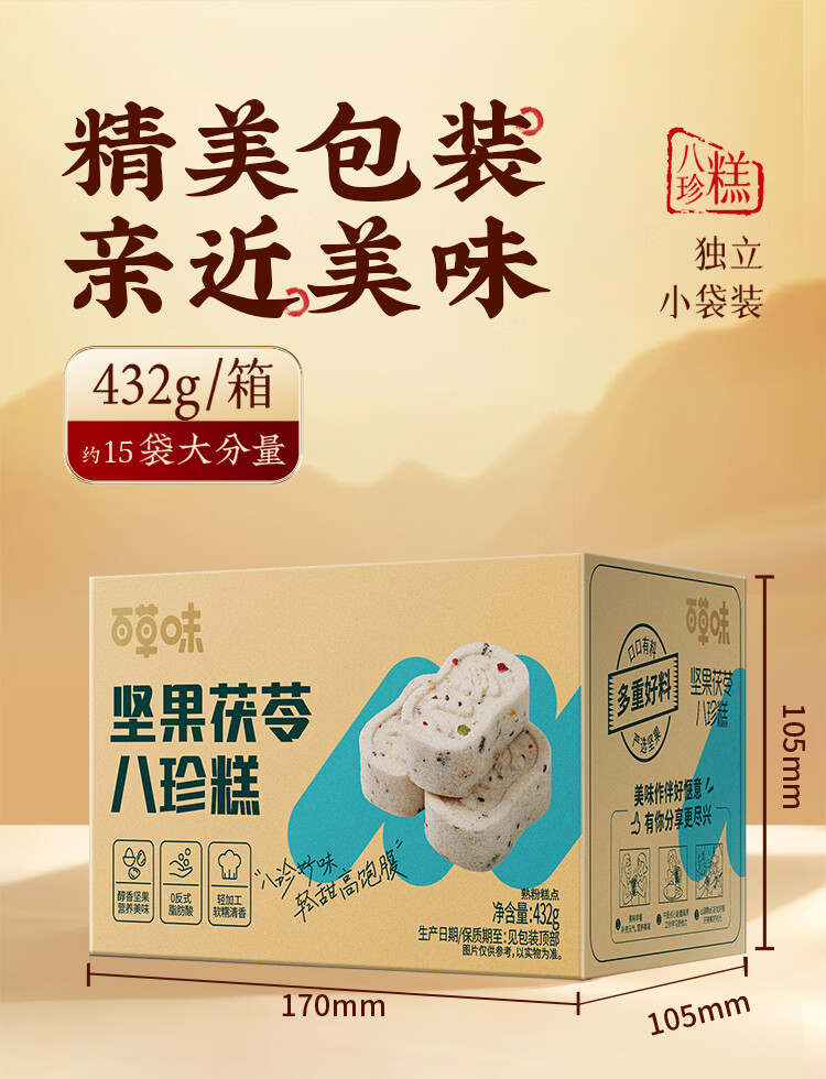 百草味坚果茯苓八珍糕432g/箱 早餐食品传统中式小吃糕点点心休闲零食
