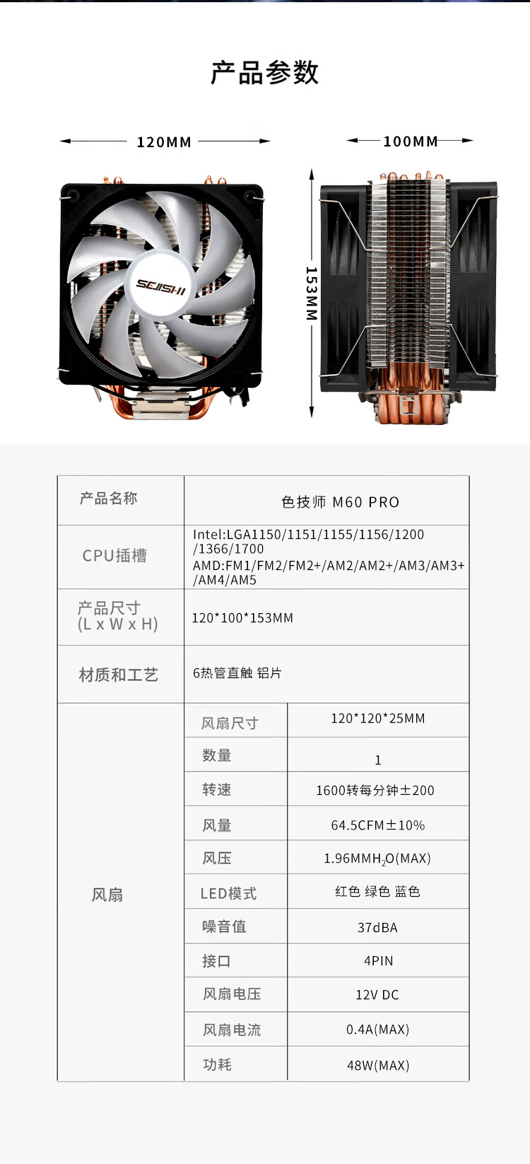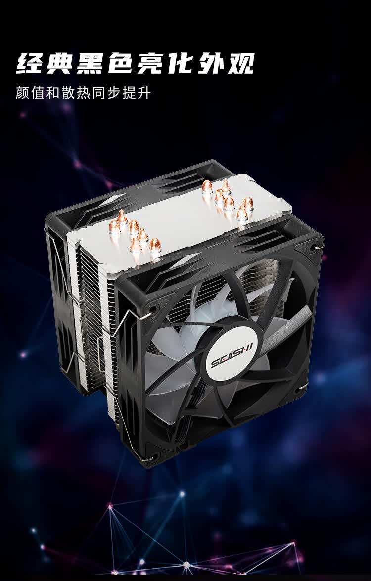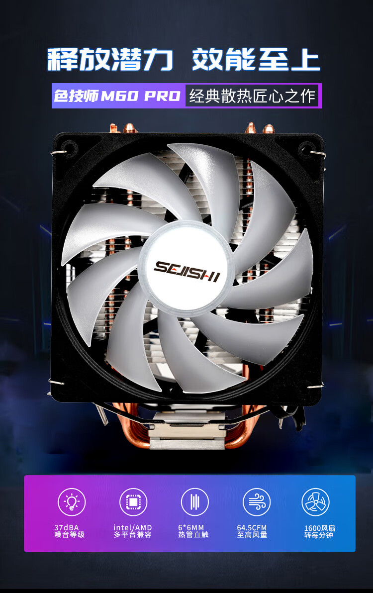 色技师6热管塔式CPU风冷散热器性能静音4热管ARGB灯光支持AM4/5/LGA1700/1200双风扇 6热管M60 PRO