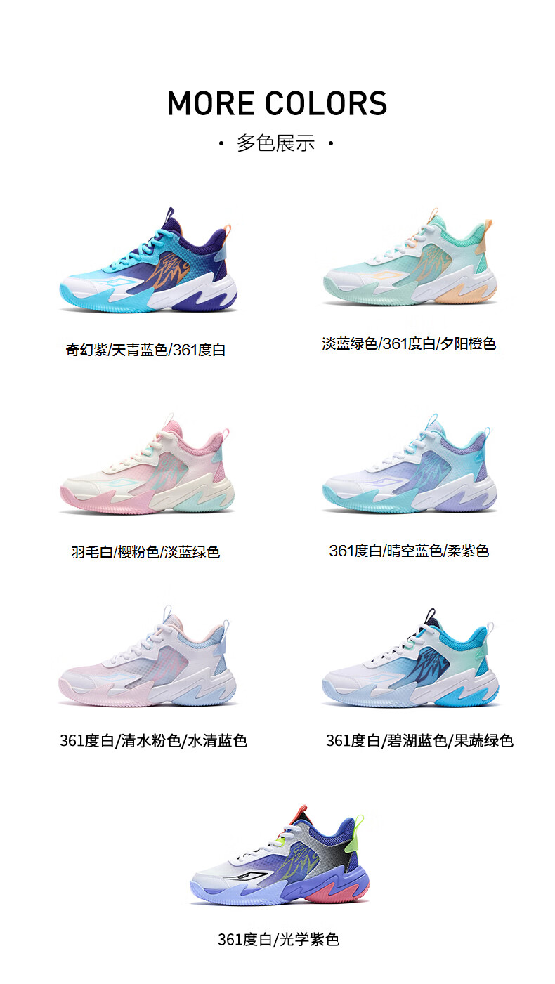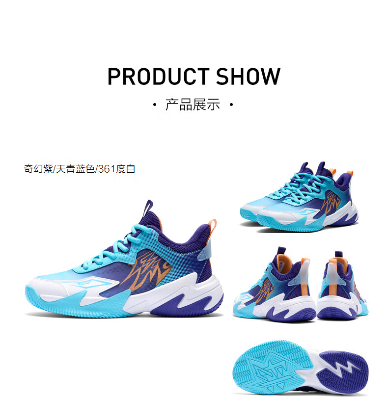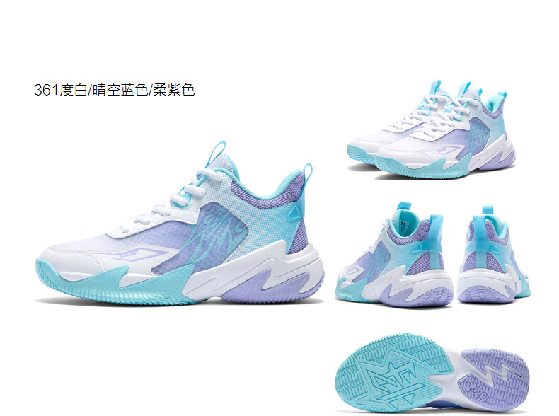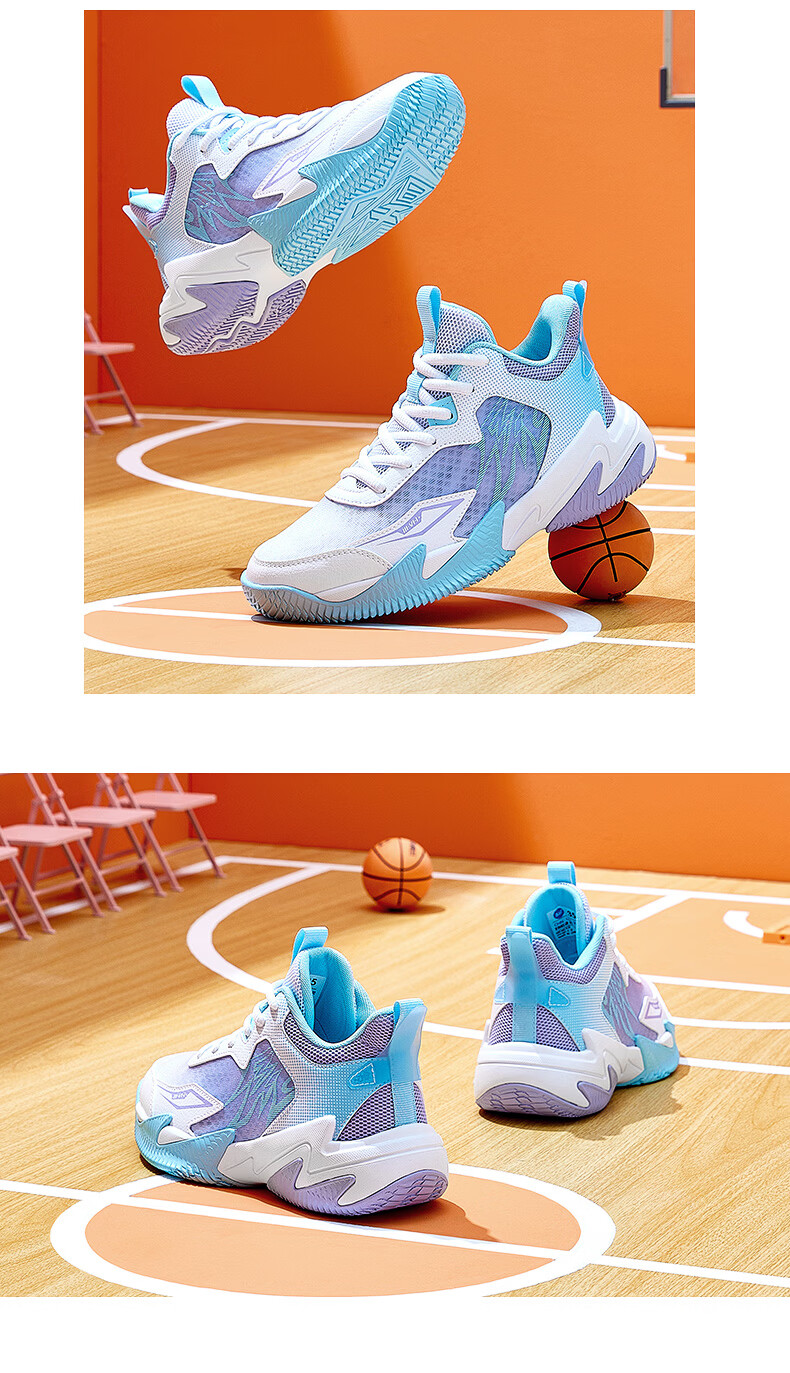 361°【悍将】儿童鞋男童篮球鞋春夏透气减震中大童运动鞋女童训练球鞋 【夏季大网】奇幻紫/天青蓝色/361度白 37