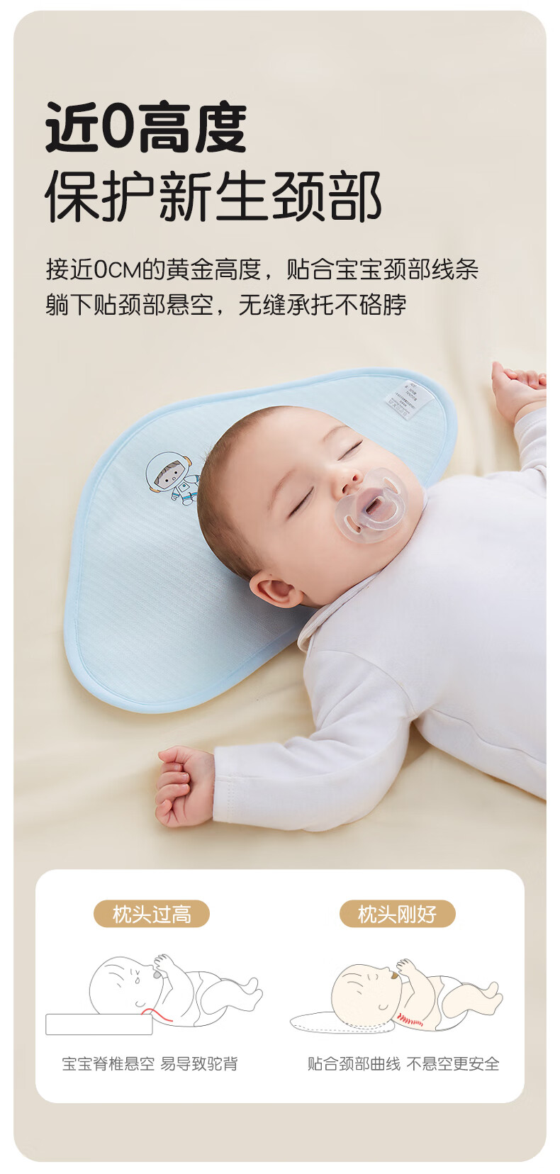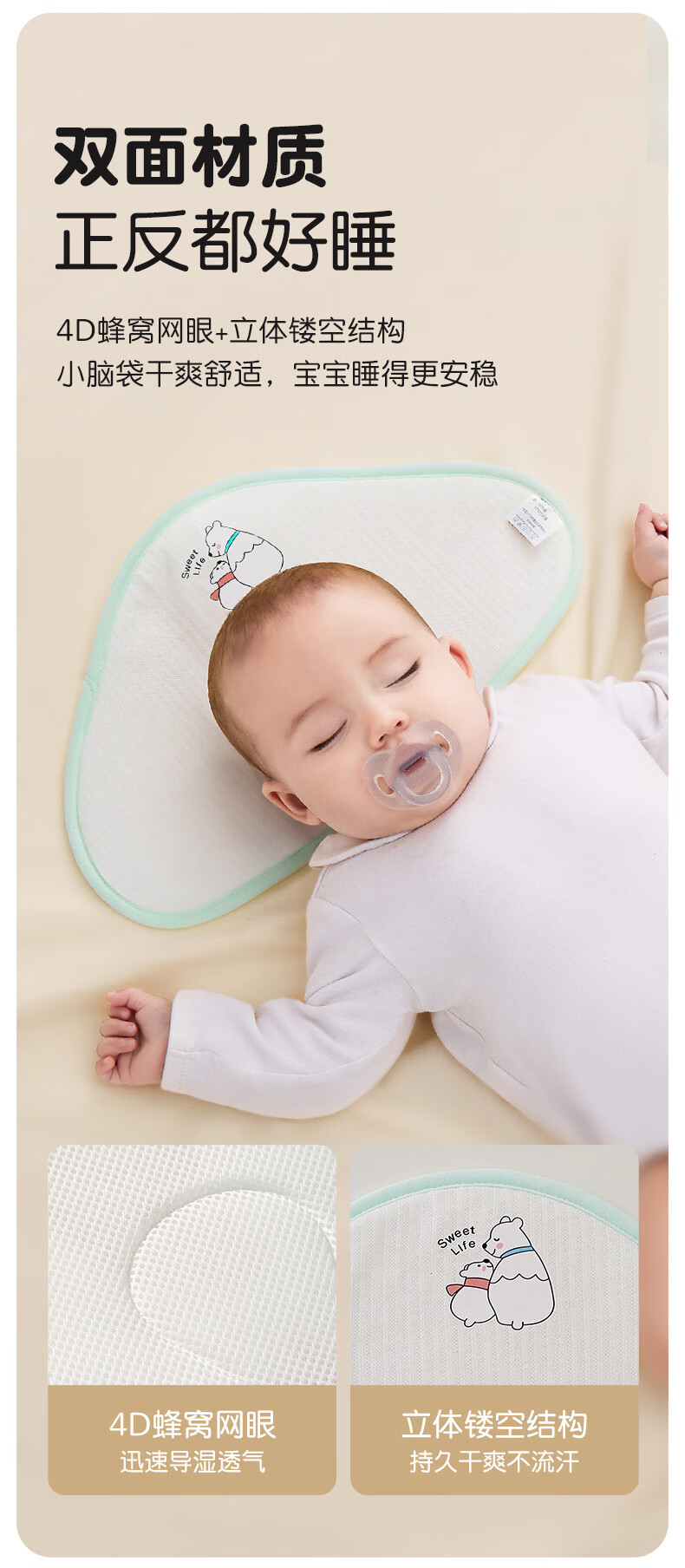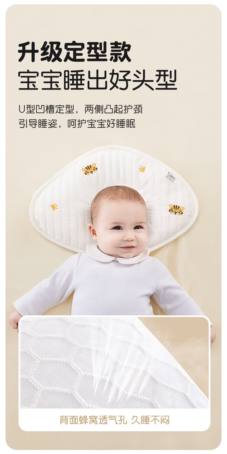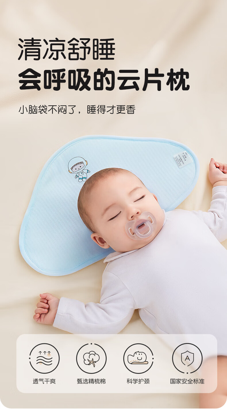 贝谷贝谷云片枕宝宝0-6个月定型护型枕巾可水洗新生儿吸汗透气婴儿枕头 淘气小樱桃 升级抑菌款