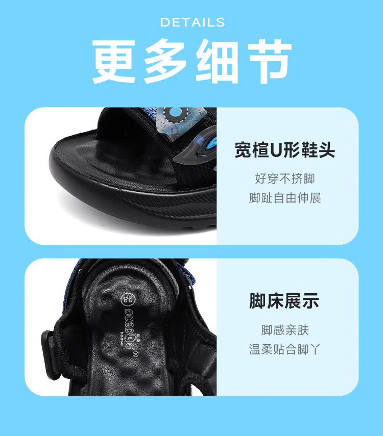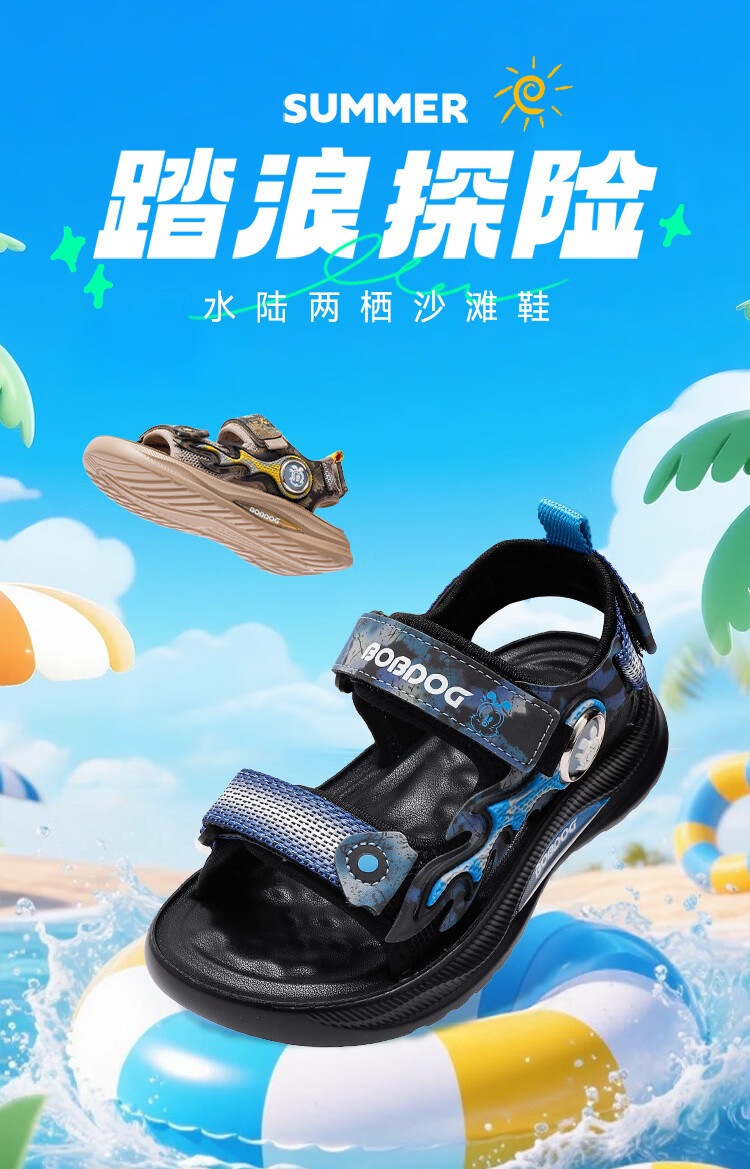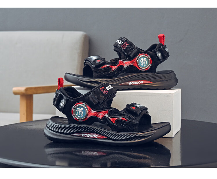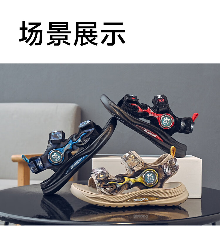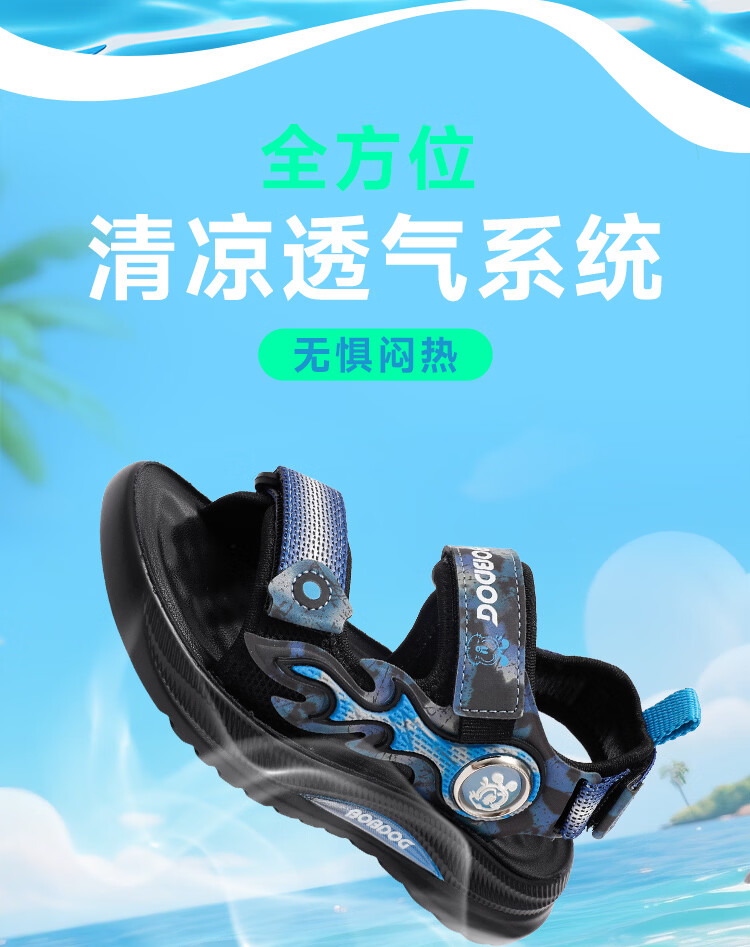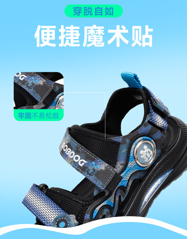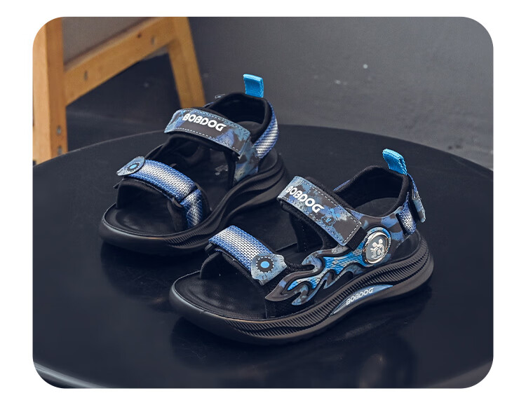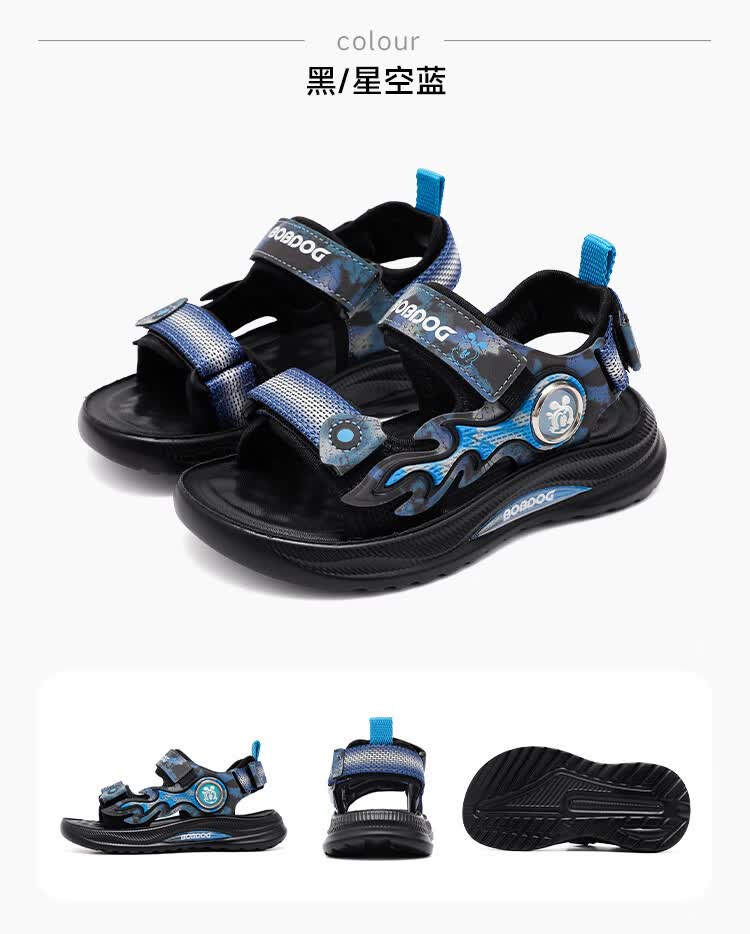 巴布豆(BOBDOG)童鞋男童夏季运动凉鞋中大童校园鞋子2026新款百搭露趾沙滩鞋 黑/星空蓝 26 适合脚长17.5cm