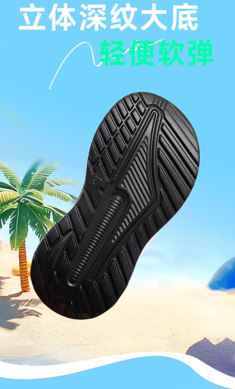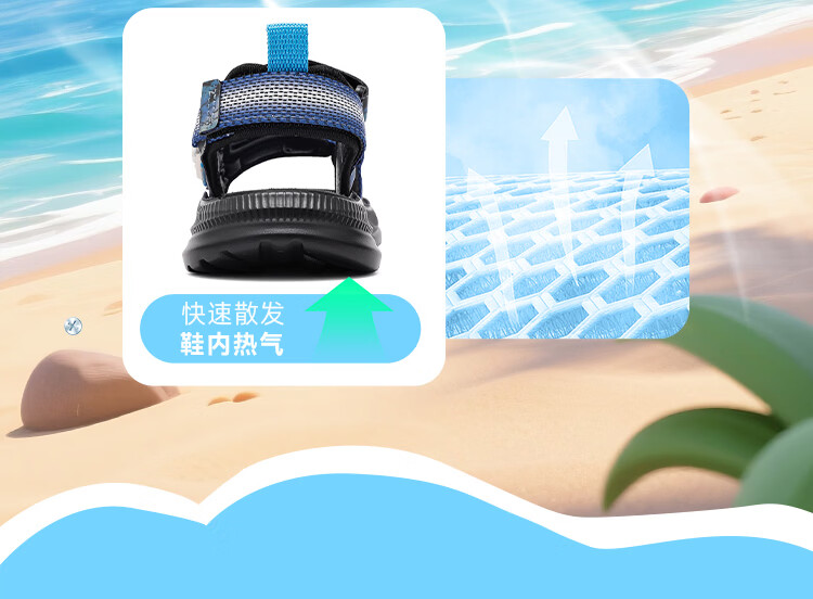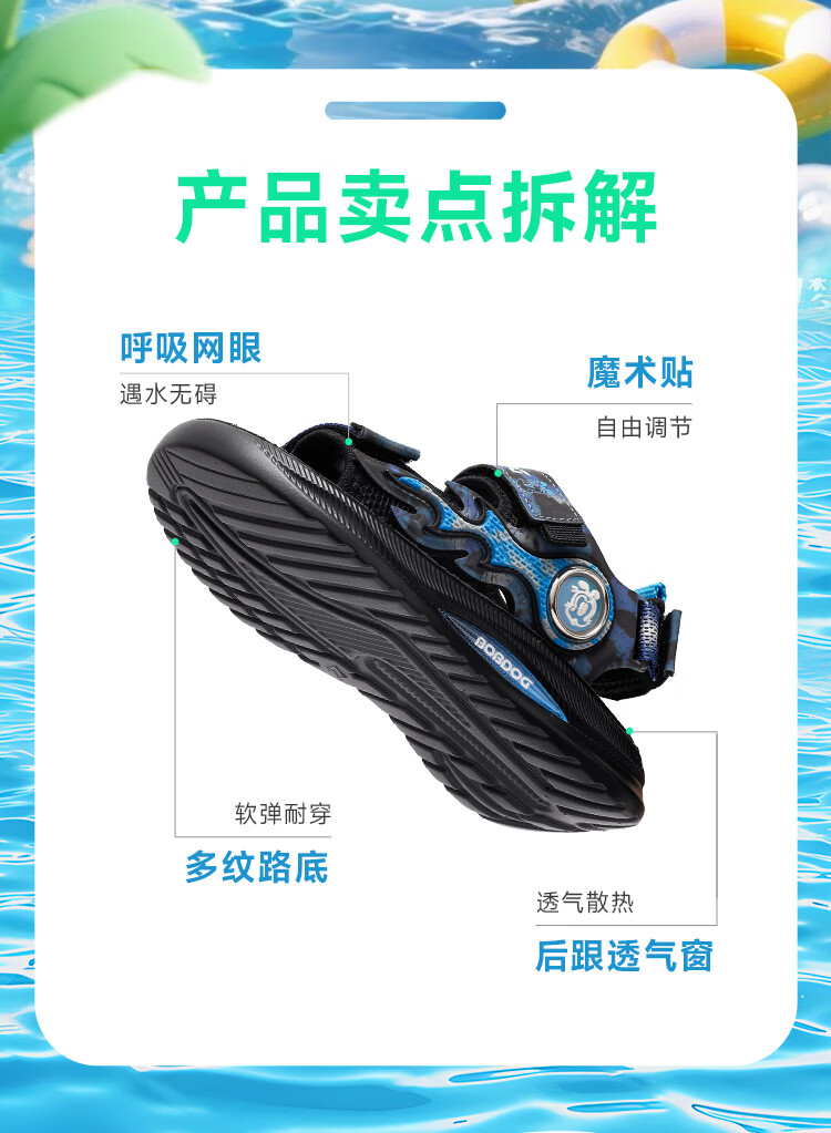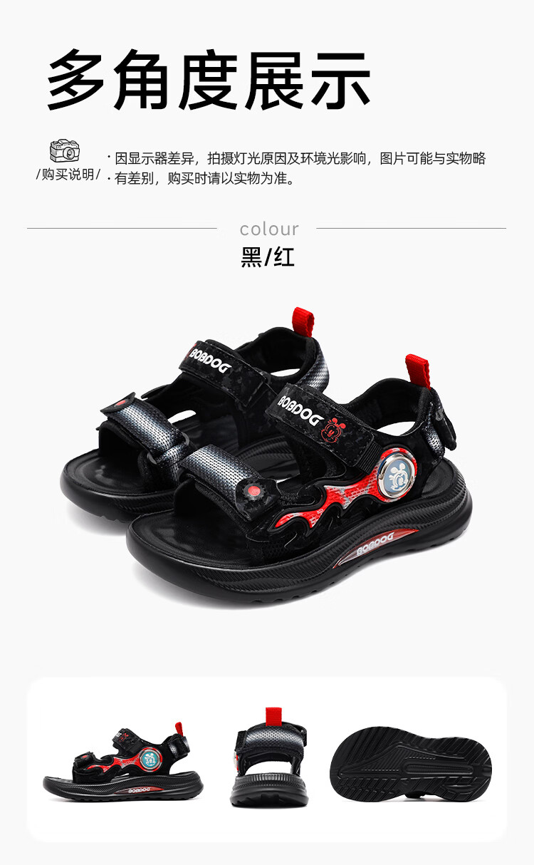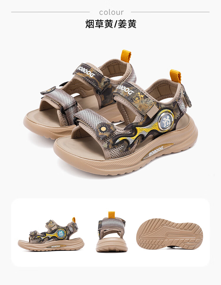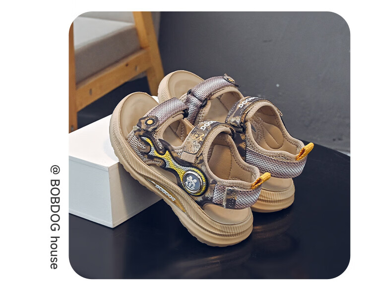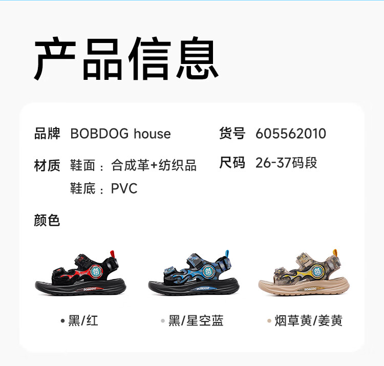 巴布豆(BOBDOG)童鞋男童夏季运动凉鞋中大童校园鞋子2026新款百搭露趾沙滩鞋 黑/星空蓝 26 适合脚长17.5cm