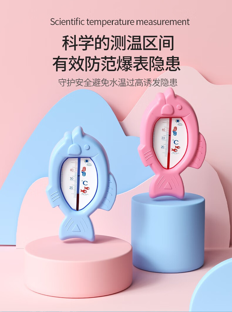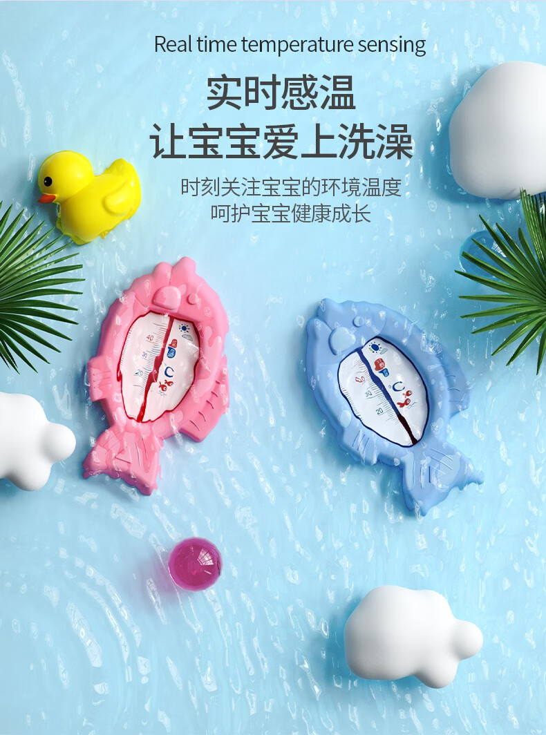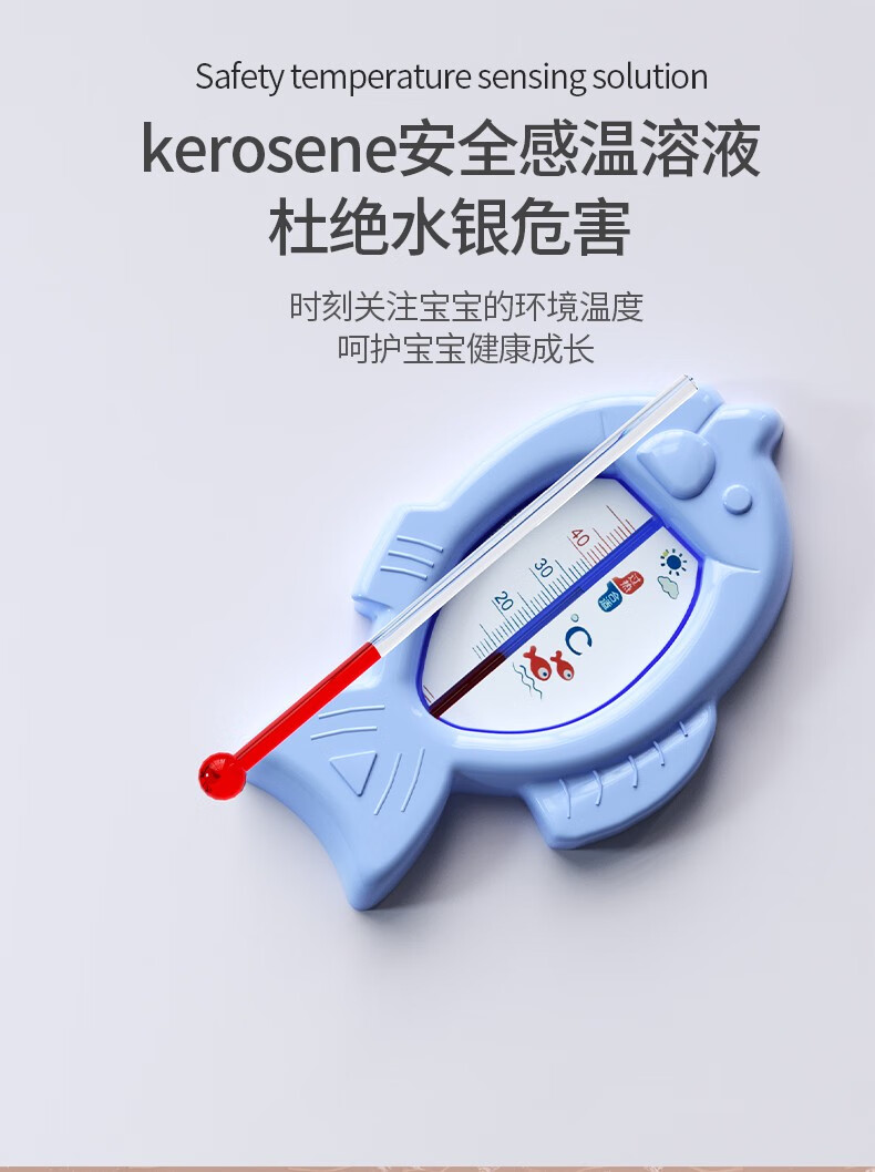 倦透婴儿水温计新生儿水温度计儿童精准洗澡温度计防破裂精准感温 【升级款】小鱼蓝色-不含水银