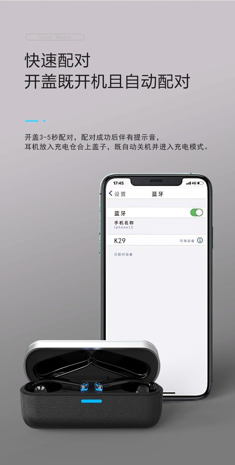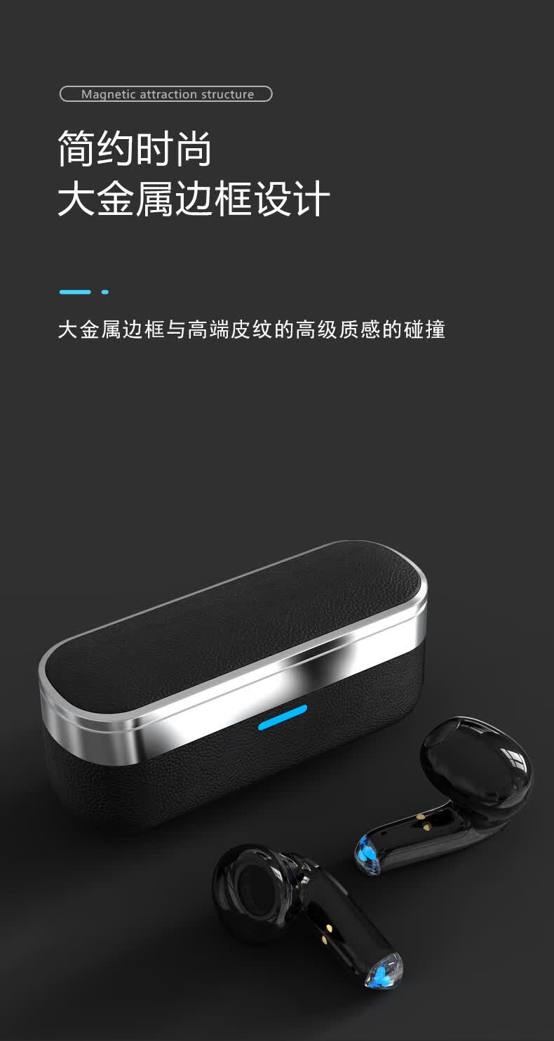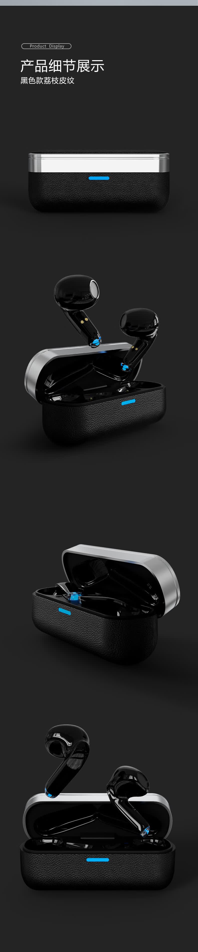 千飒K29 蓝牙无线耳机简约时尚高级荔枝皮纹质感无线蓝牙耳机 黑色