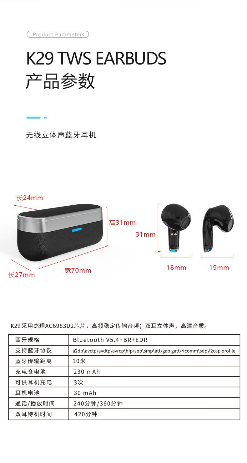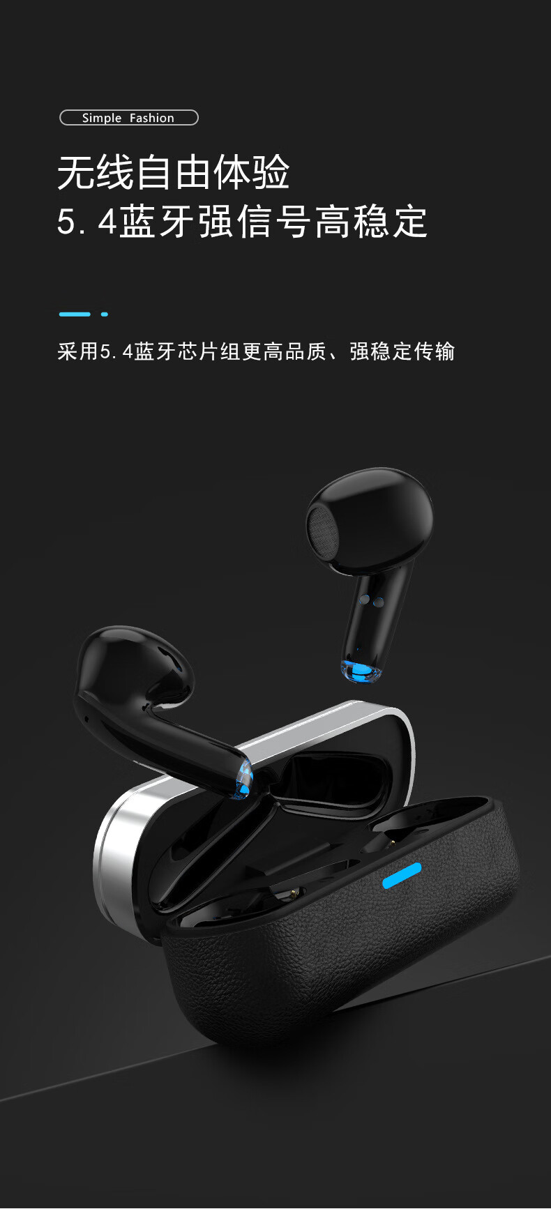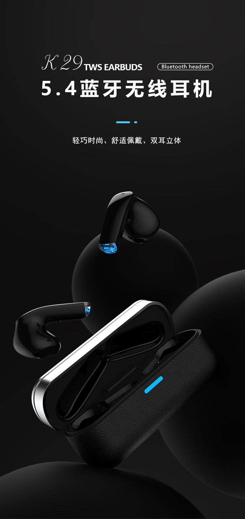 千飒K29 蓝牙无线耳机简约时尚高级荔枝皮纹质感无线蓝牙耳机 黑色