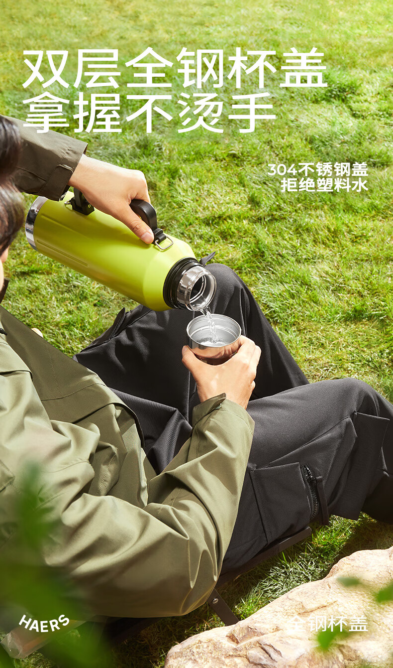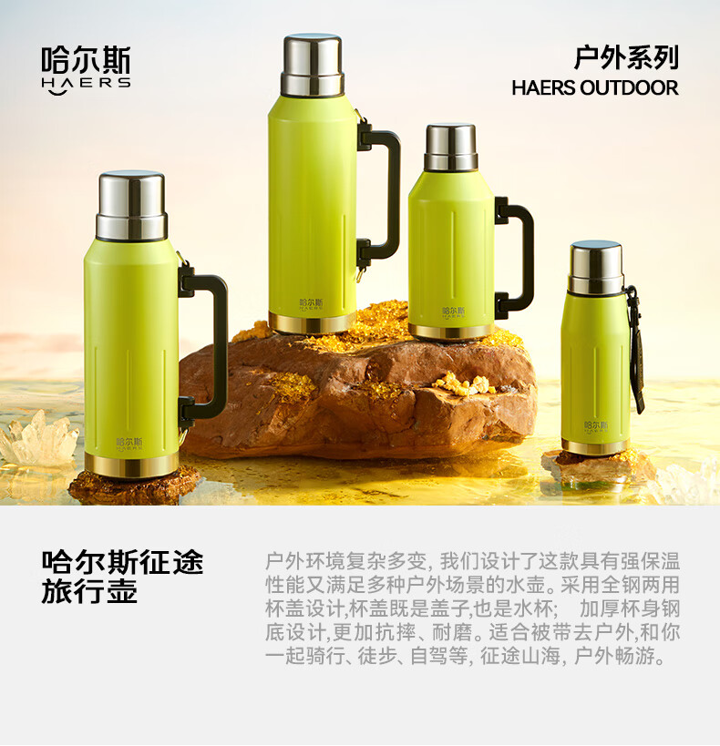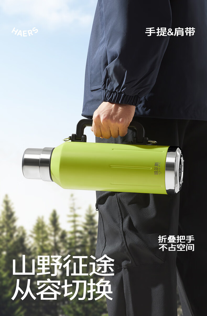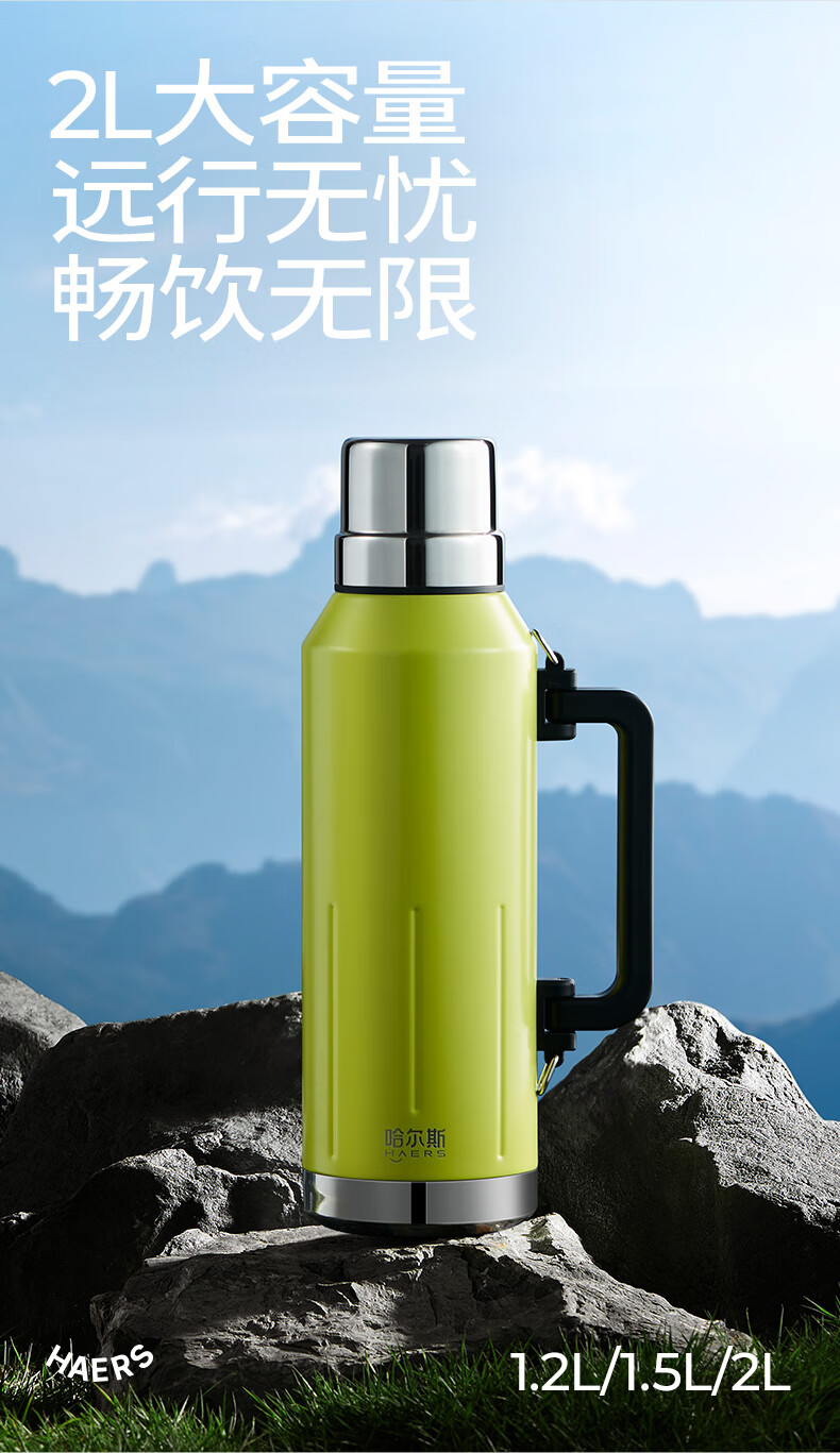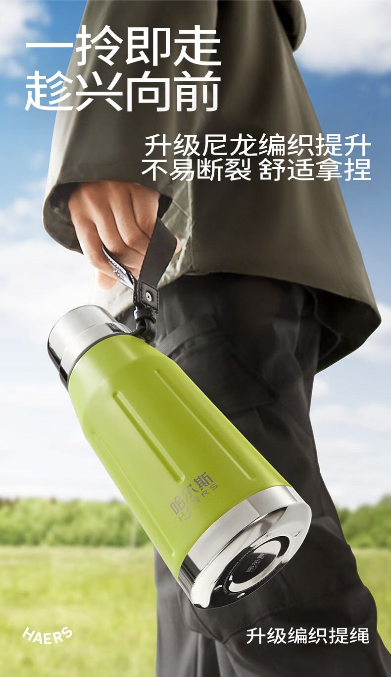 哈尔斯真空家用保温壶户外露营旅游大容量保温杯车载暖水壶热水瓶壶 夜空黑【全钢杯身+304内胆】1200ml