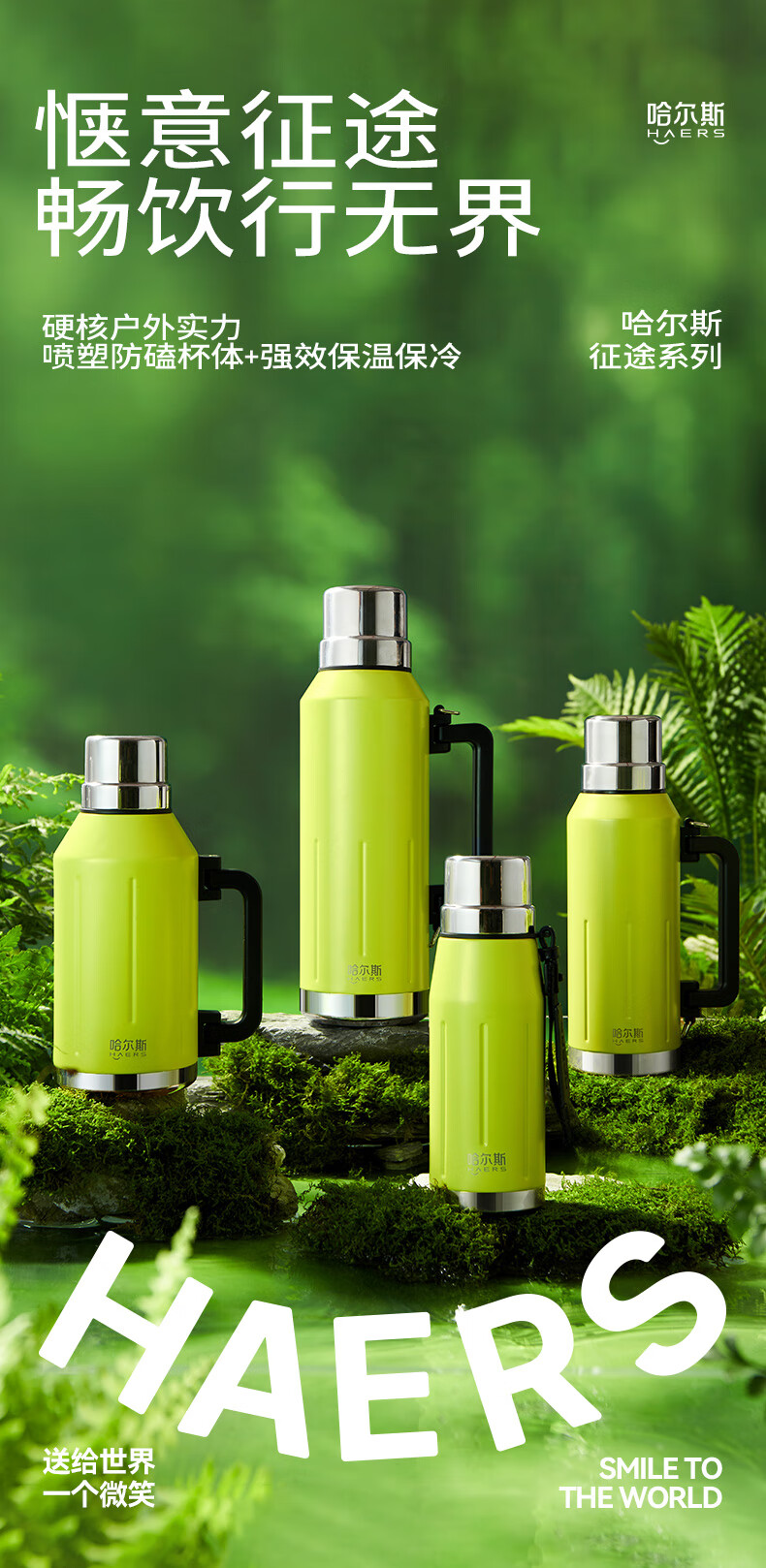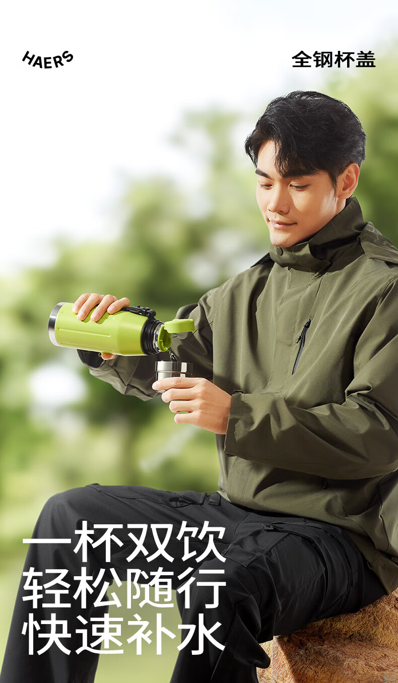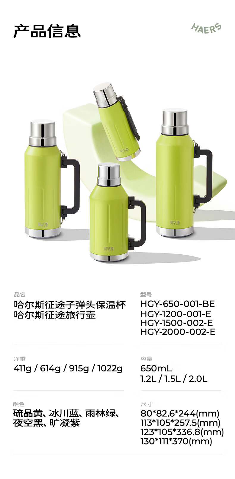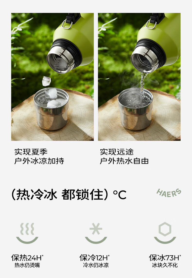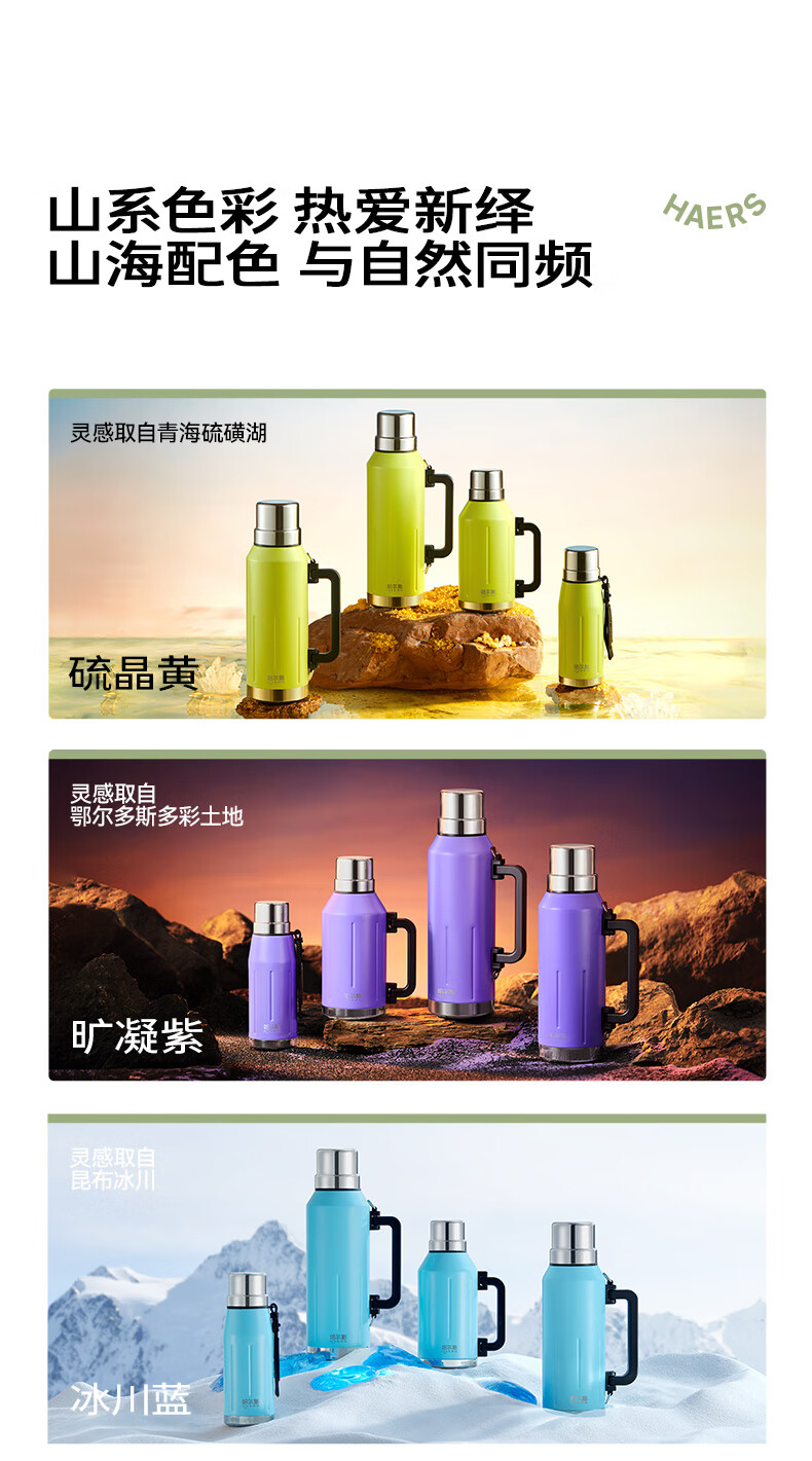 哈尔斯真空家用保温壶户外露营旅游大容量保温杯车载暖水壶热水瓶壶 夜空黑【全钢杯身+304内胆】1200ml