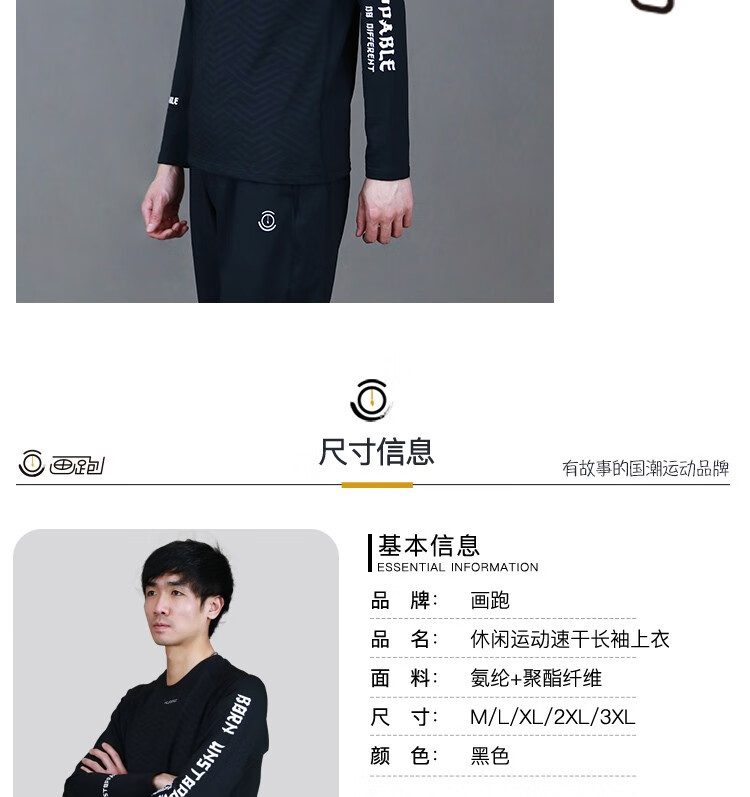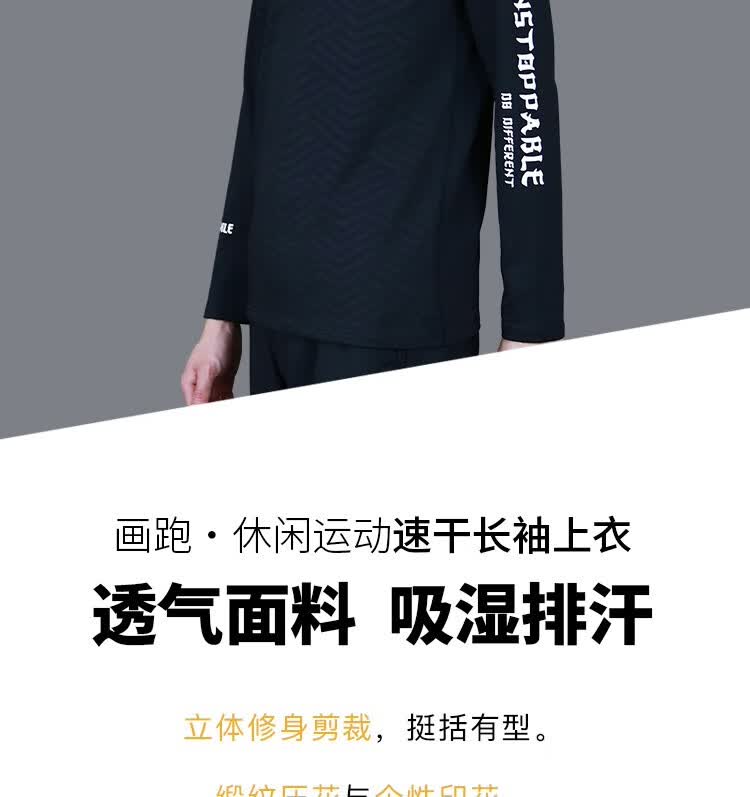 画跑【顺丰发货】 势不可挡主题休闲运动速干长袖T恤 黑色 3XL