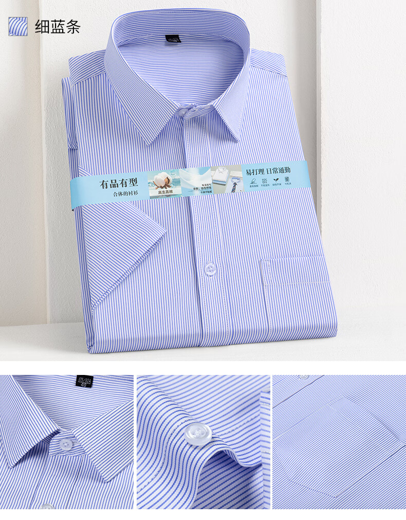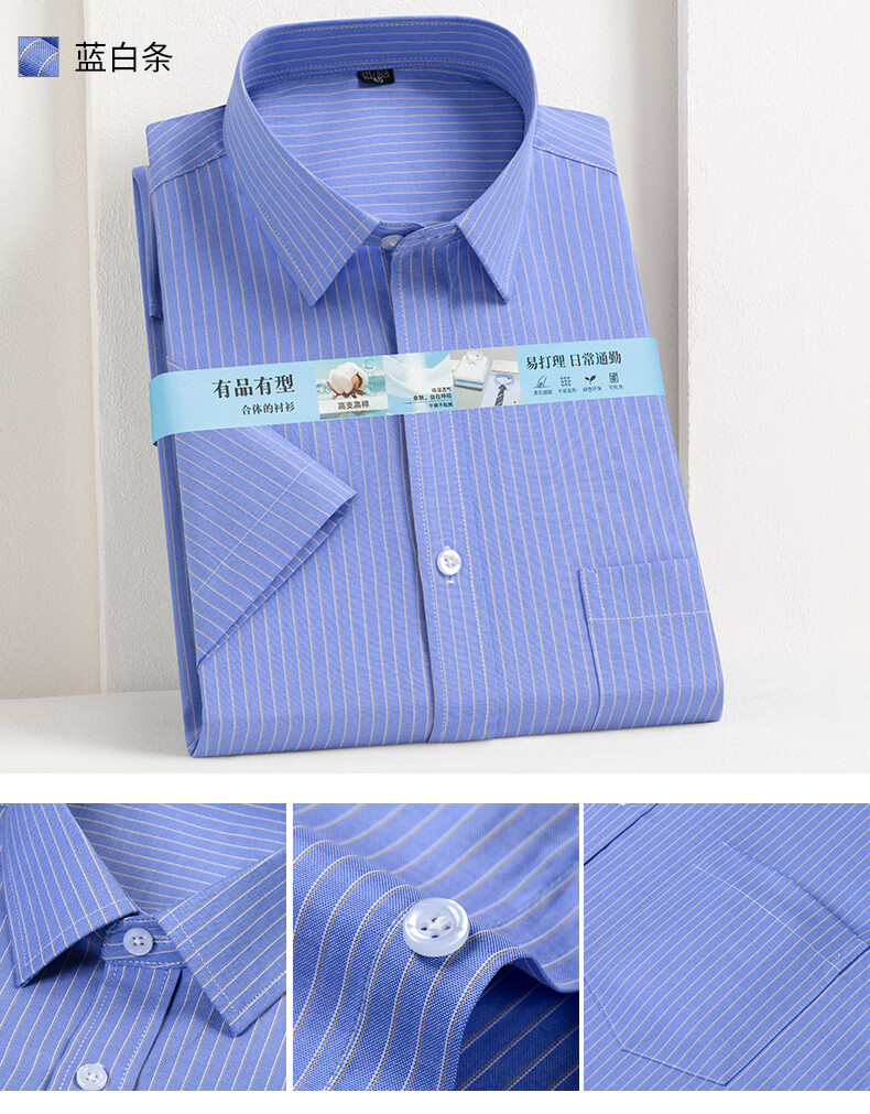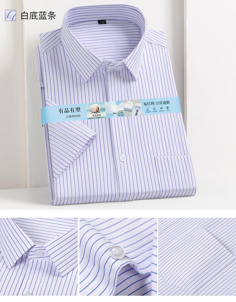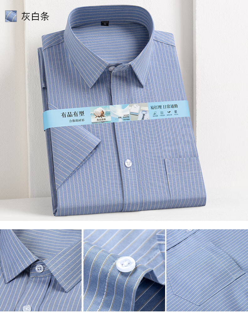 罗蒙(ROMON)条纹短袖衬衫男士商务休闲衬衣2026夏季半袖免烫爸爸装上衣 7036T白色平纹 41 (建议体重150-165斤)