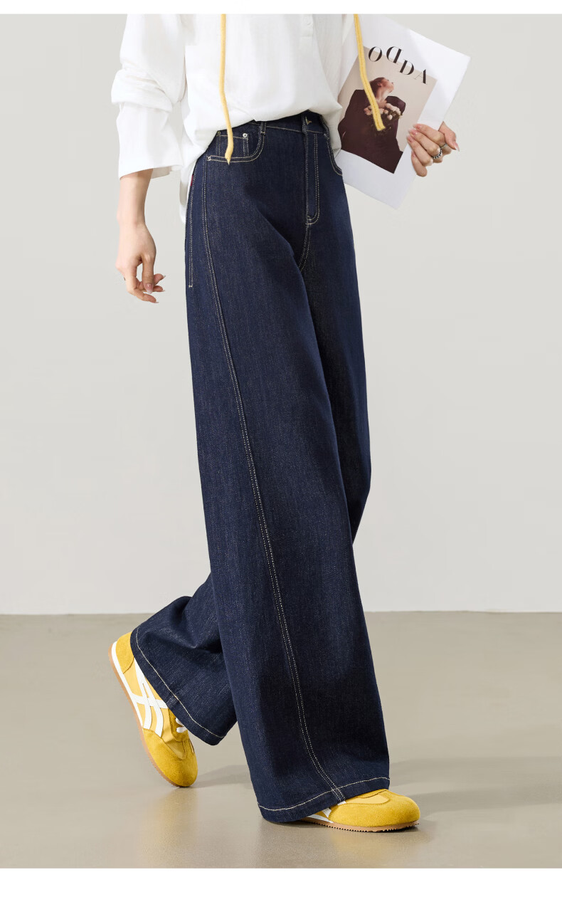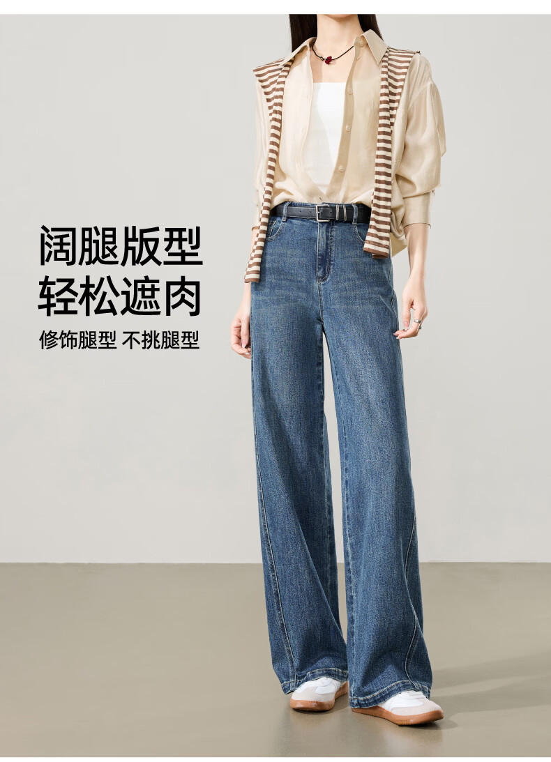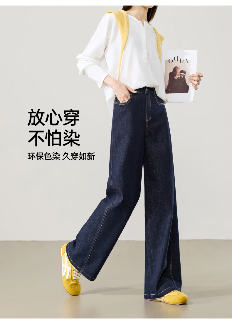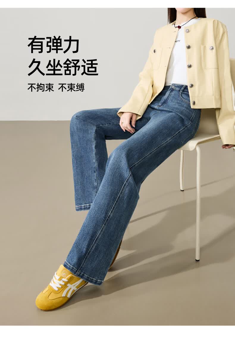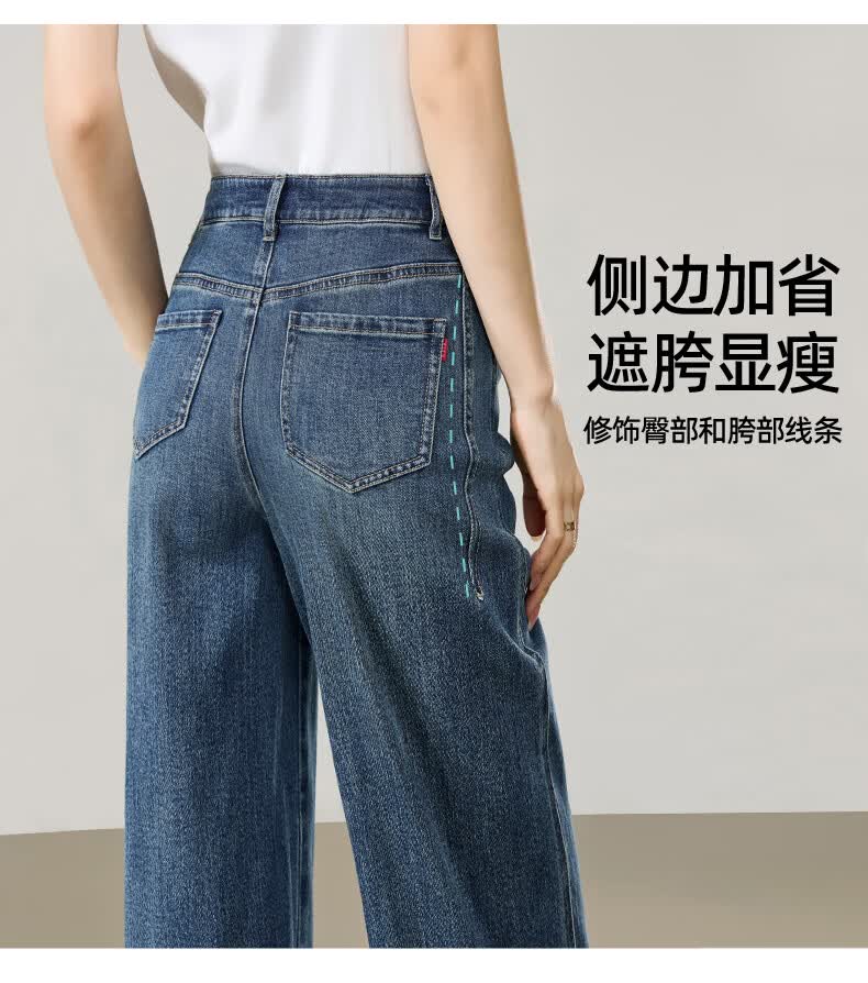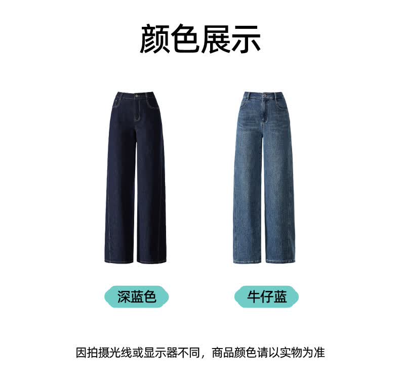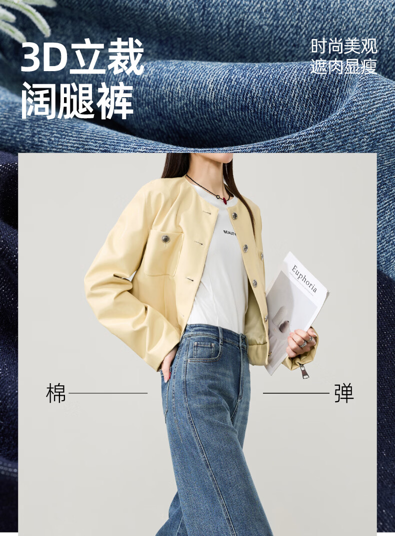逸阳(ESE-Y)显瘦阔腿裤女26春季新款莱卡弹力不易褪色窄版直筒裤子 牛仔蓝 28