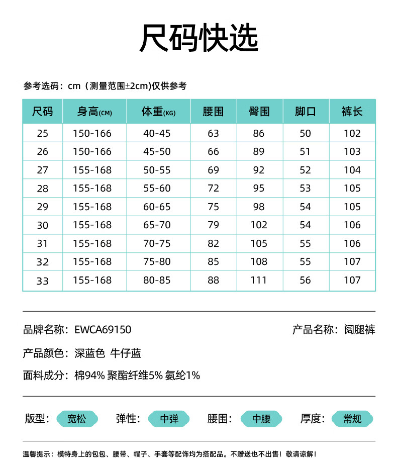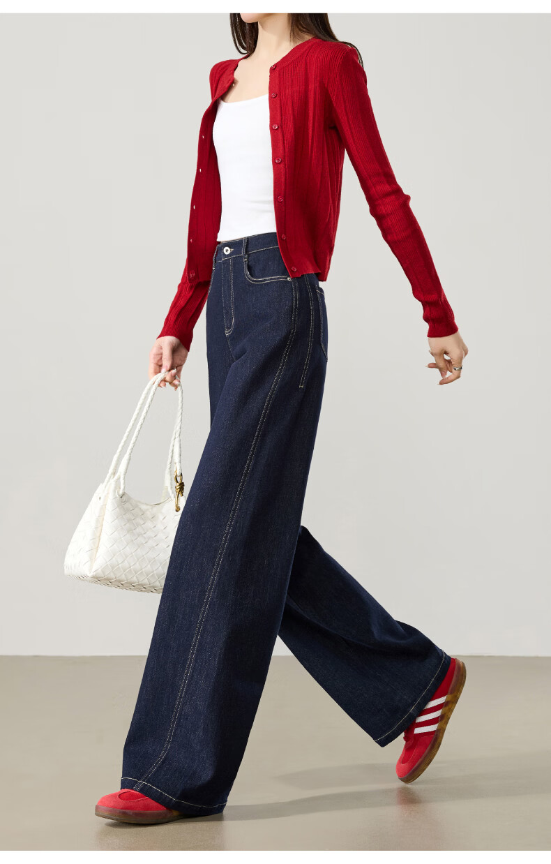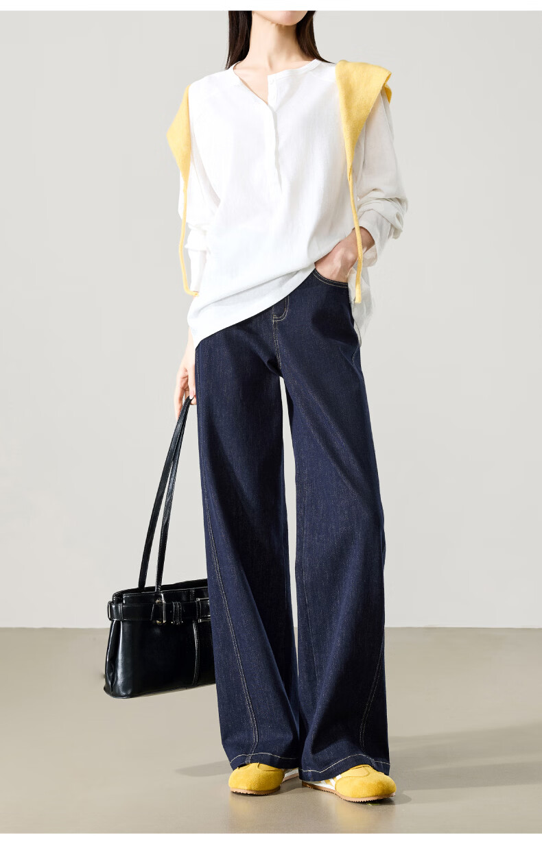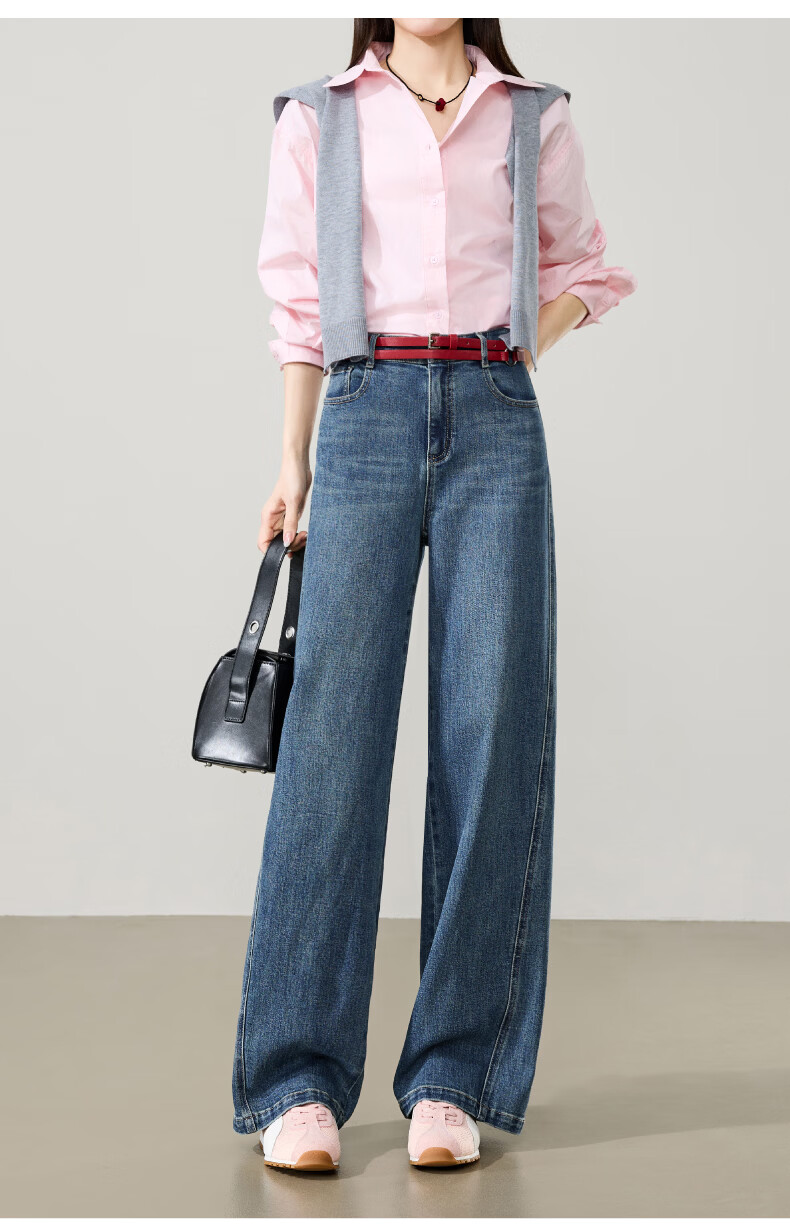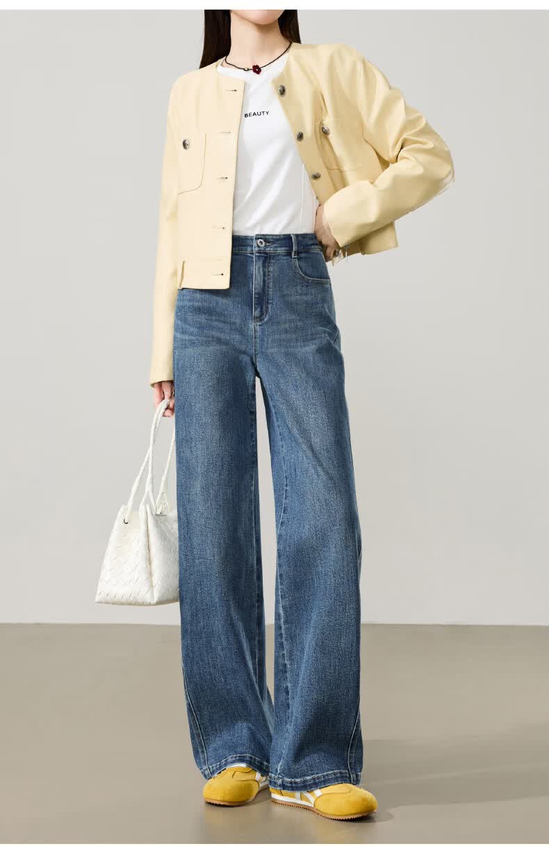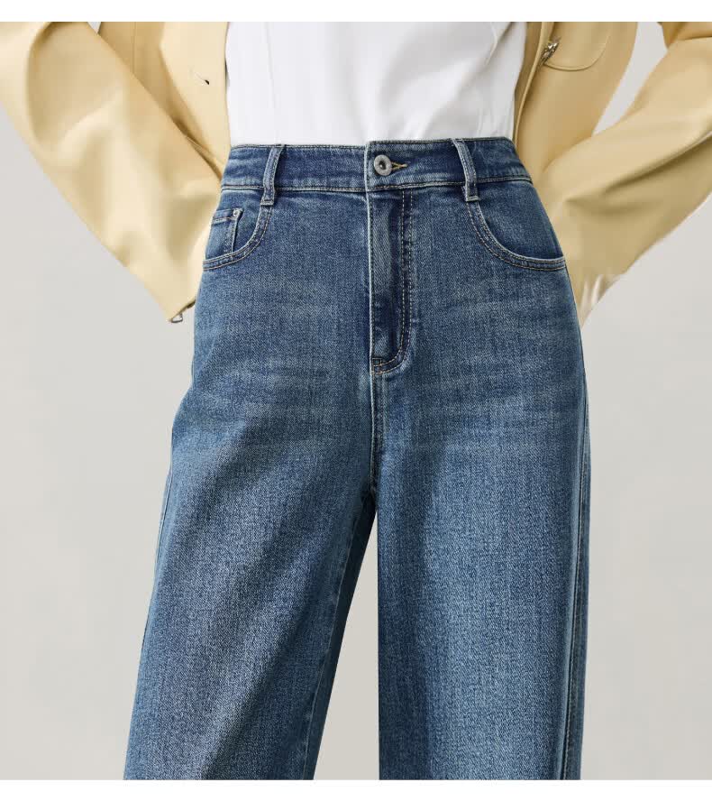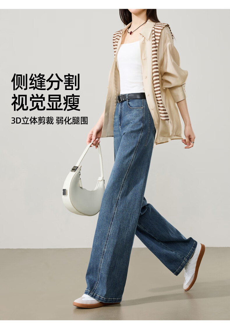 逸阳(ESE-Y)显瘦阔腿裤女26春季新款莱卡弹力不易褪色窄版直筒裤子 牛仔蓝 28