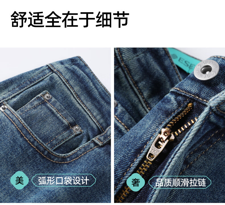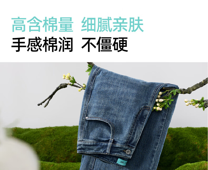 HLA海澜之家牛仔裤男轻商务时尚凉感刺绣裤子男春季