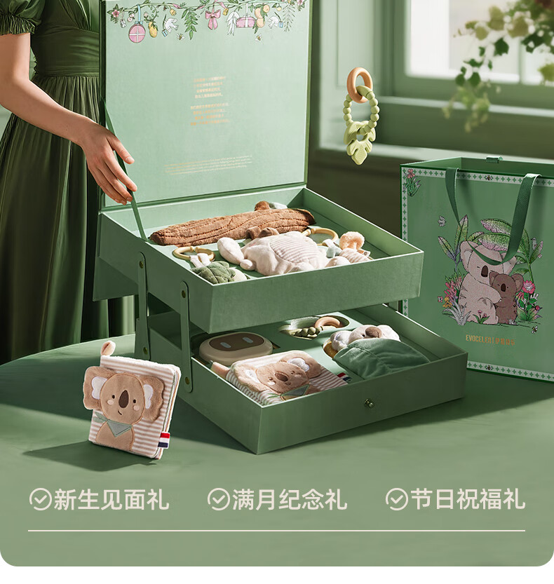 EVOCELER新生儿礼物高档礼盒婴儿见面礼宝宝布书床铃安抚玩具满月百天礼物