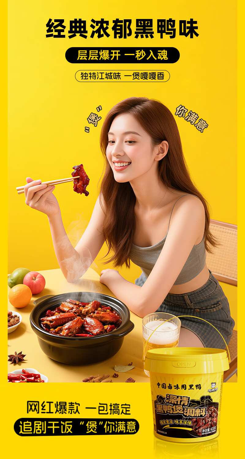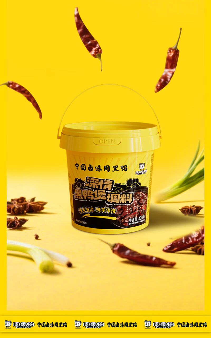 周黑鸭黑鸭煲卤料包秘制麻辣香辣卤牛腱子鸭肉酱调味料小黄桶420g