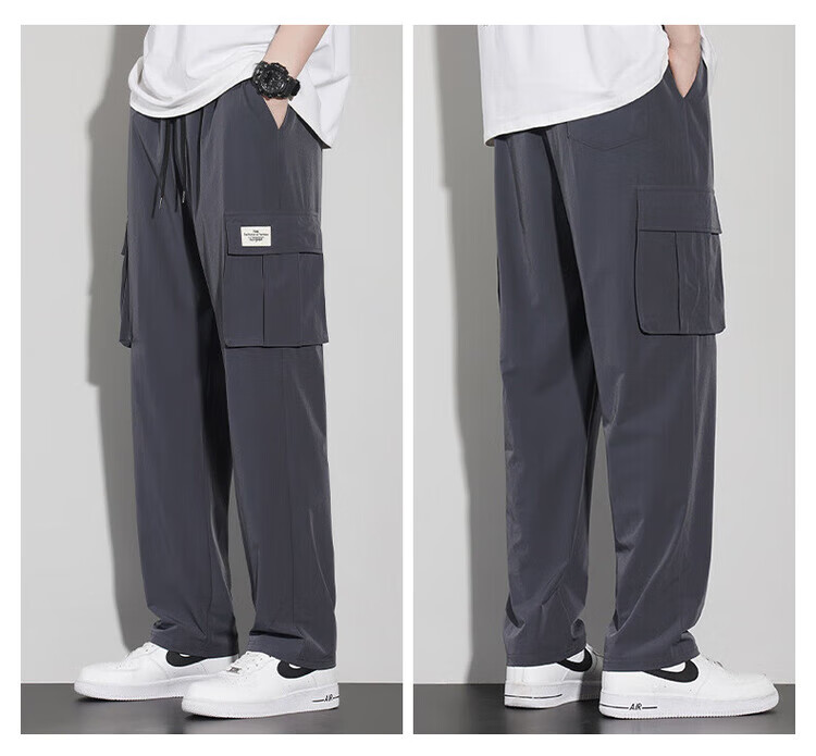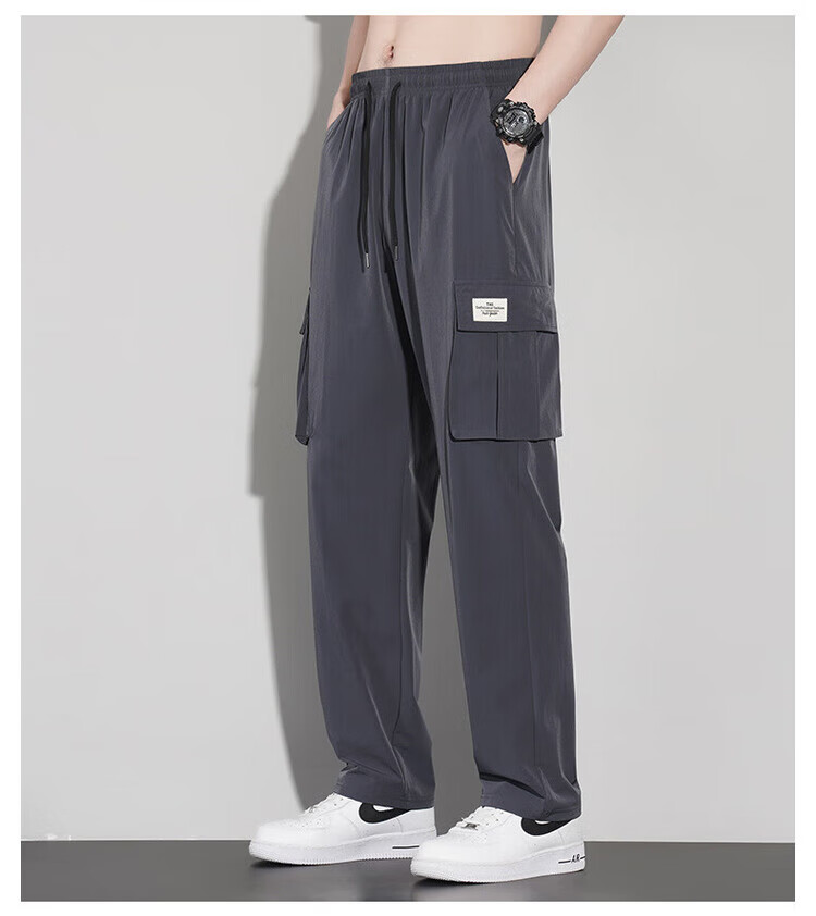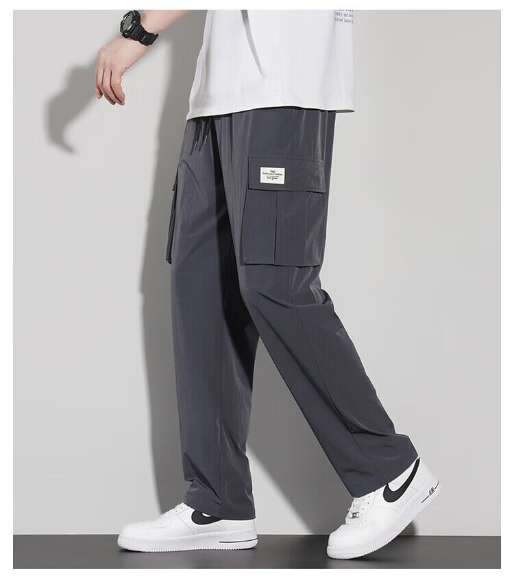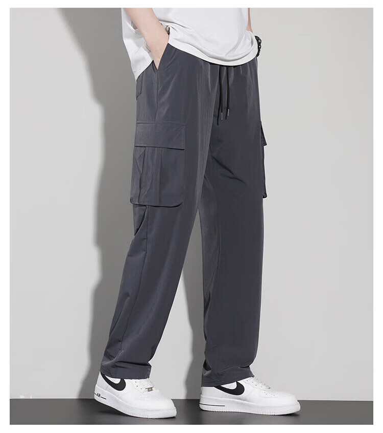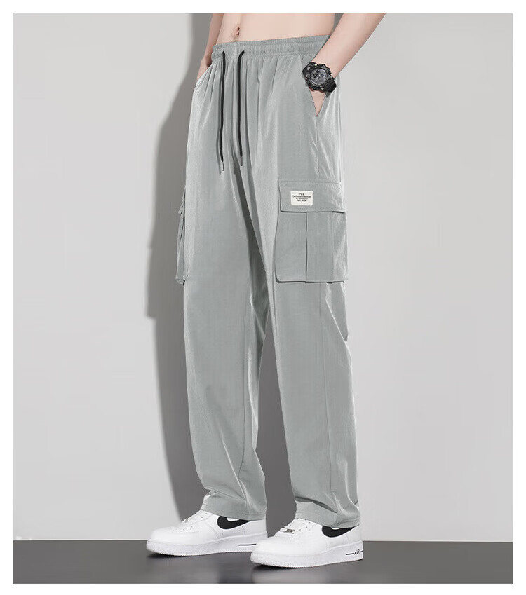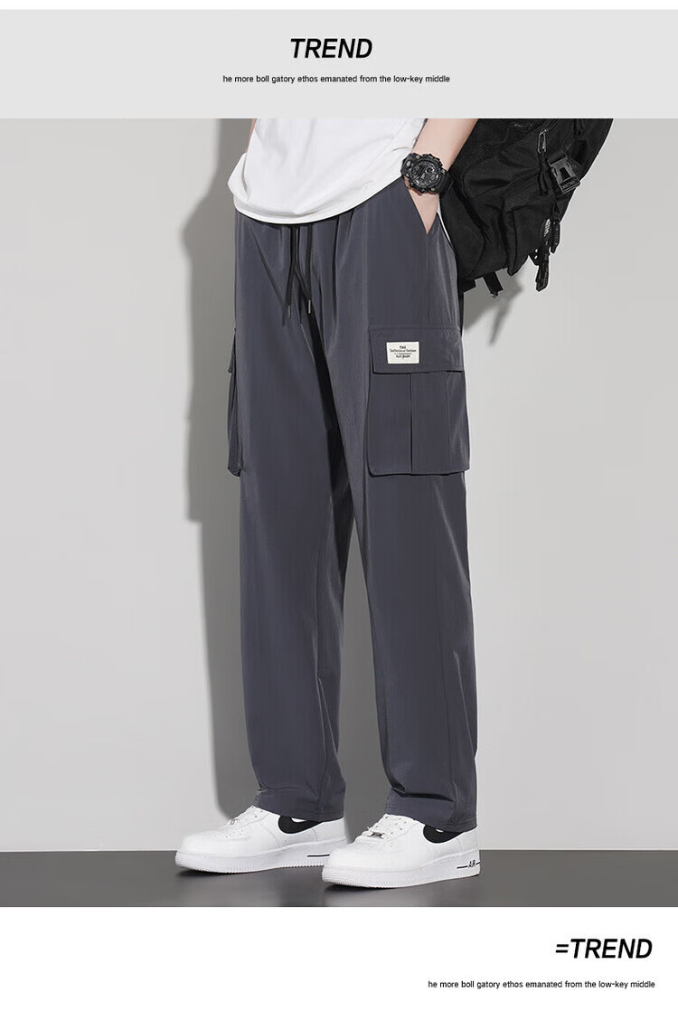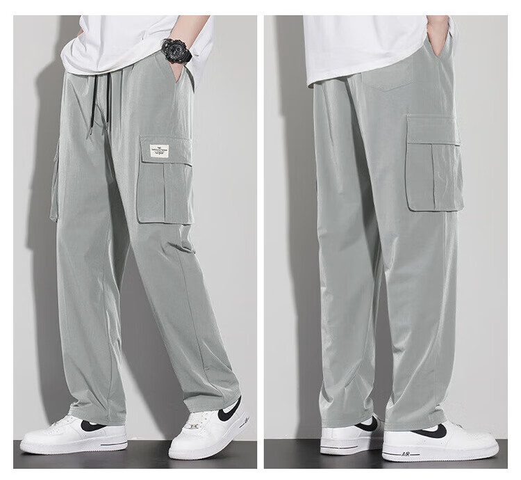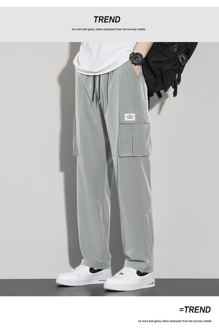燠阳冰丝工装休闲裤男生夏季薄款宽松阔腿裤新款潮流直筒长裤男士 休闲裤-浅灰色 2XL 【130-145斤】