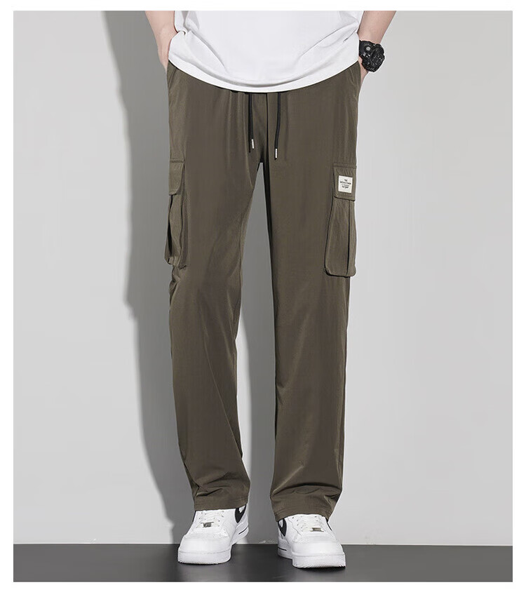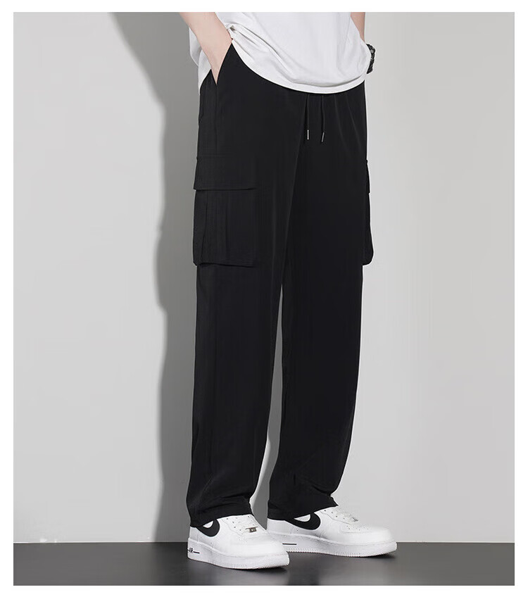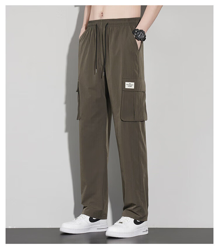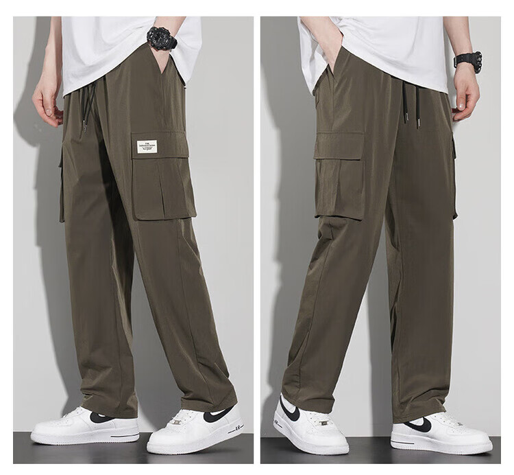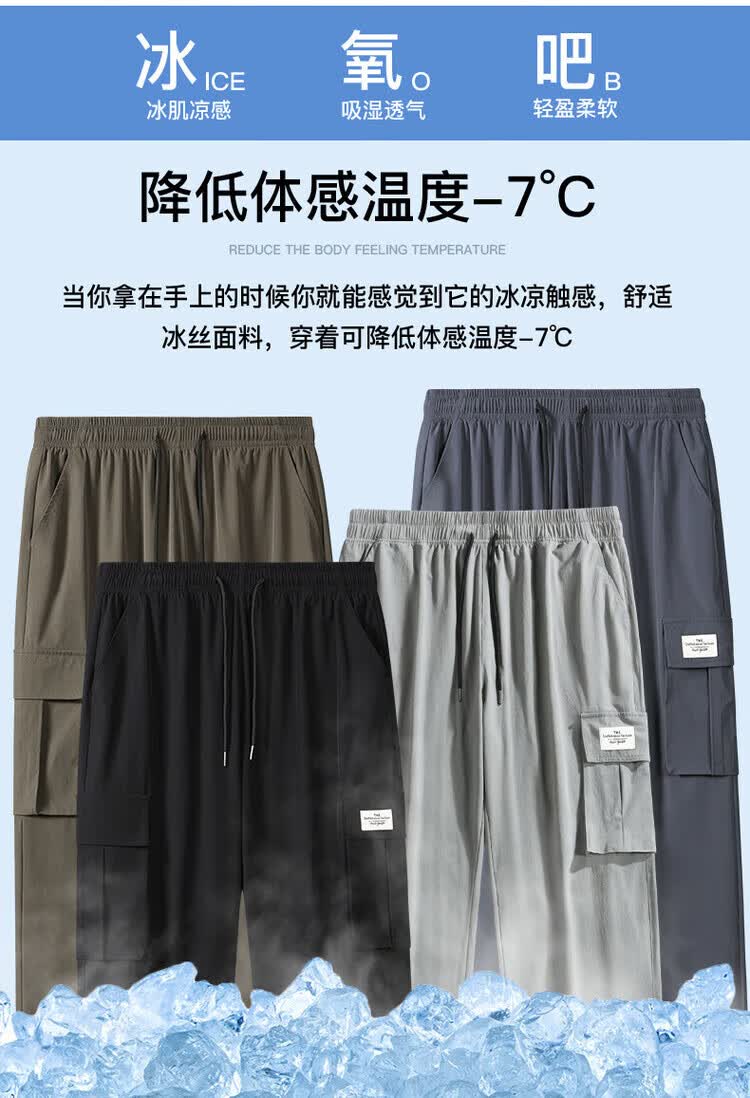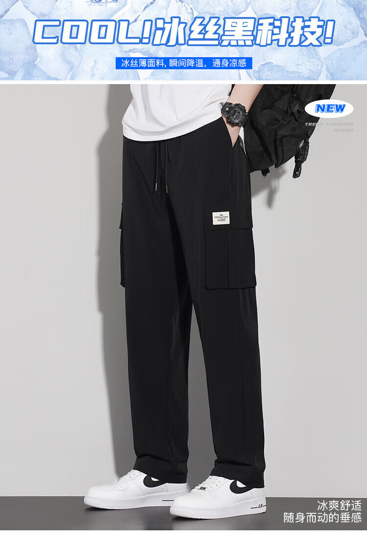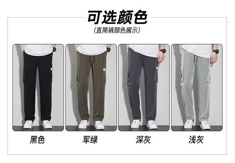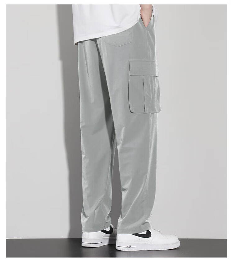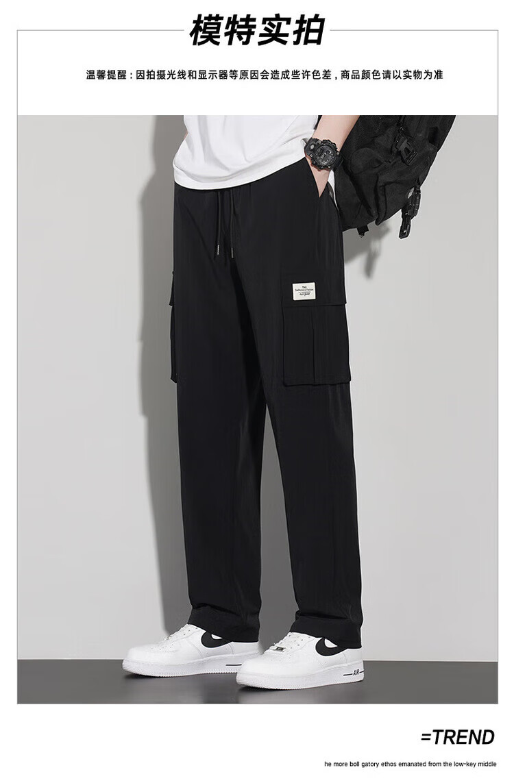 燠阳冰丝工装休闲裤男生夏季薄款宽松阔腿裤新款潮流直筒长裤男士 休闲裤-浅灰色 2XL 【130-145斤】