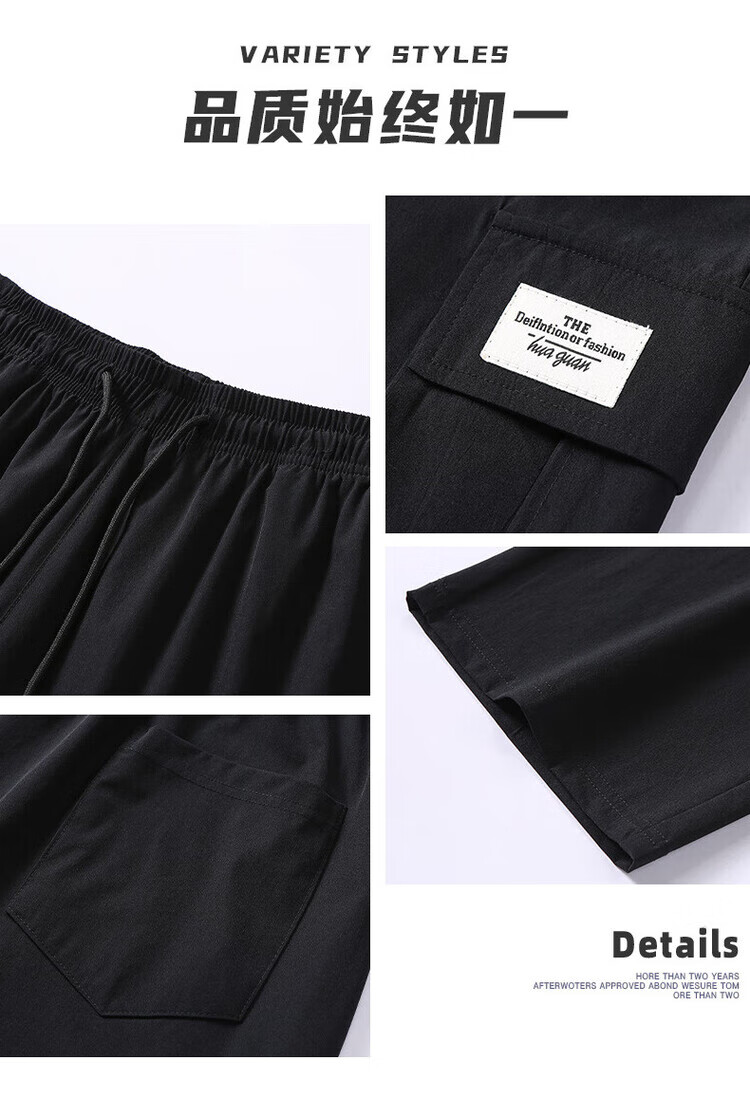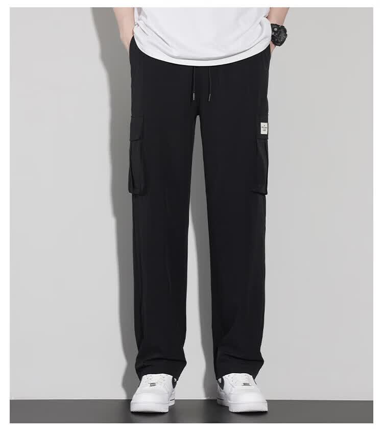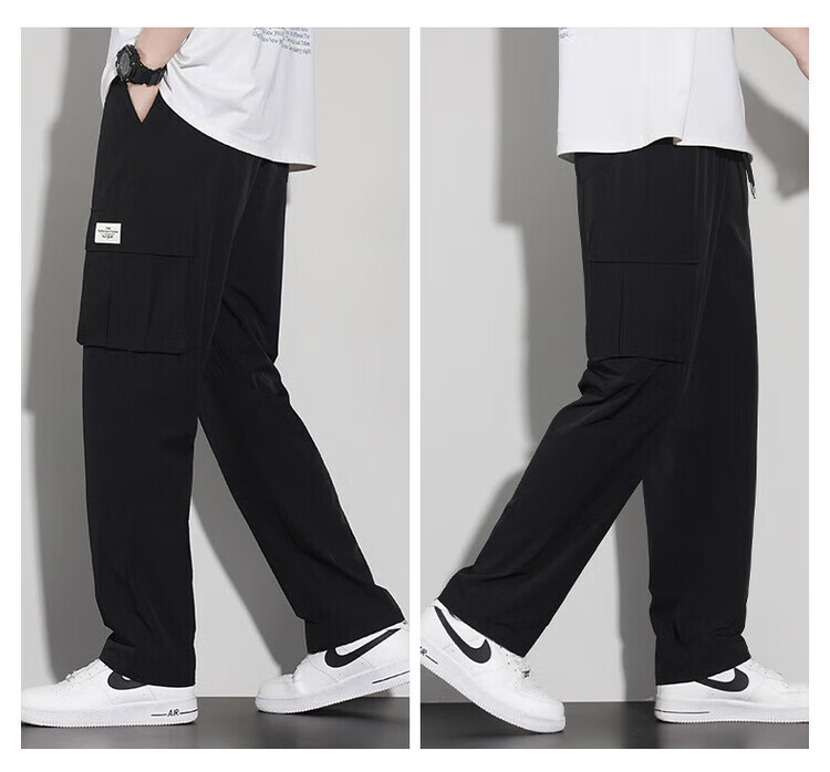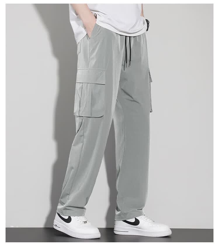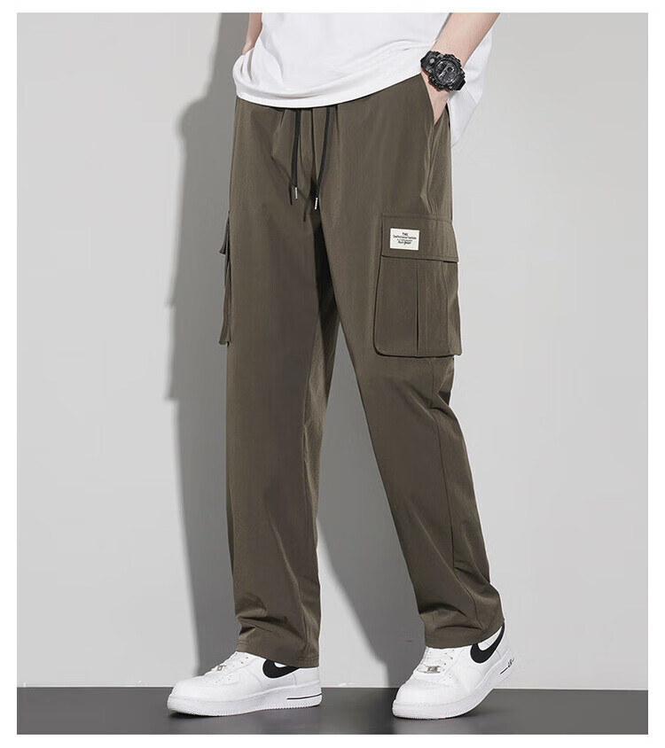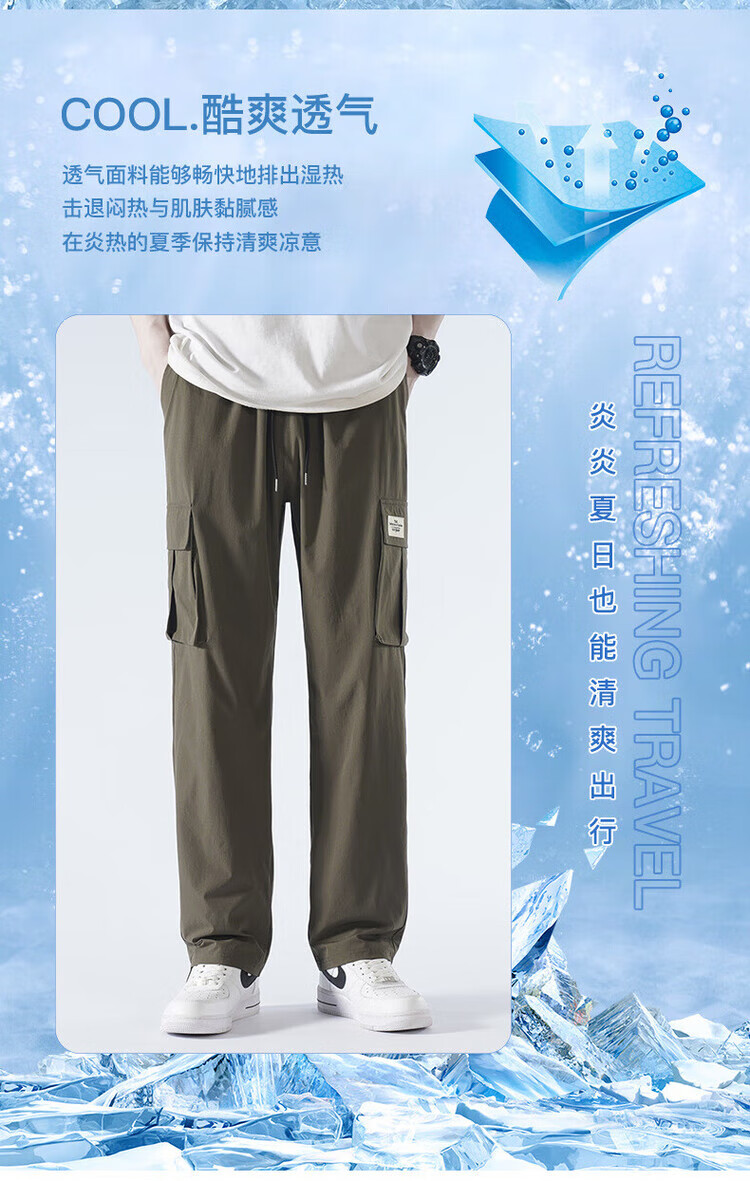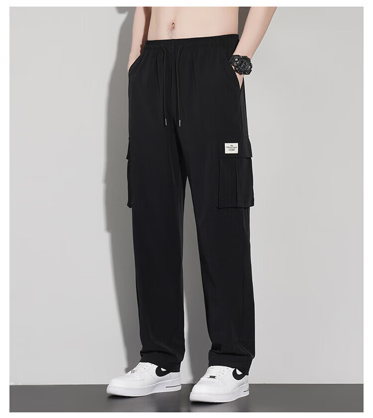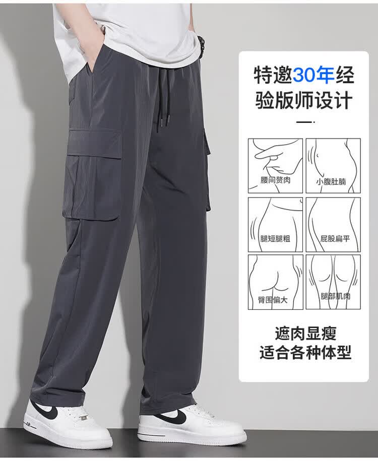 燠阳冰丝工装休闲裤男生夏季薄款宽松阔腿裤新款潮流直筒长裤男士 休闲裤-浅灰色 2XL 【130-145斤】