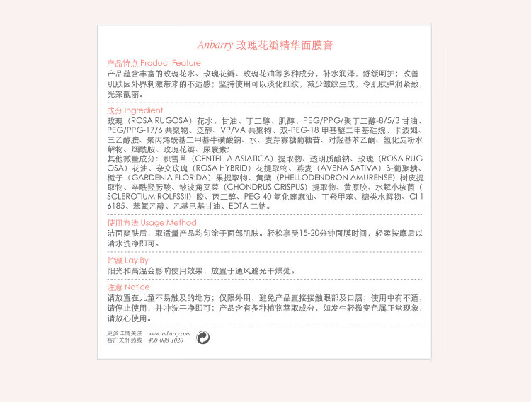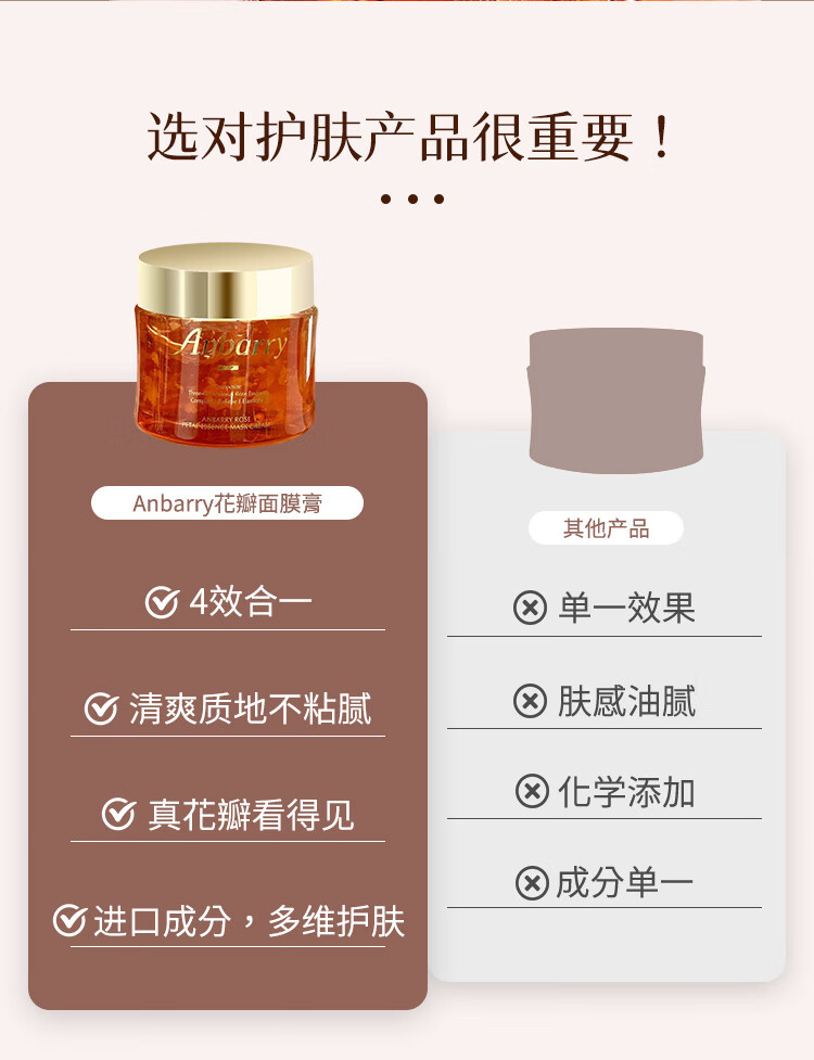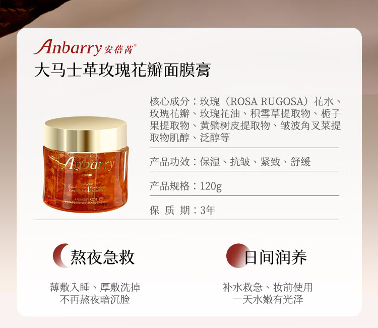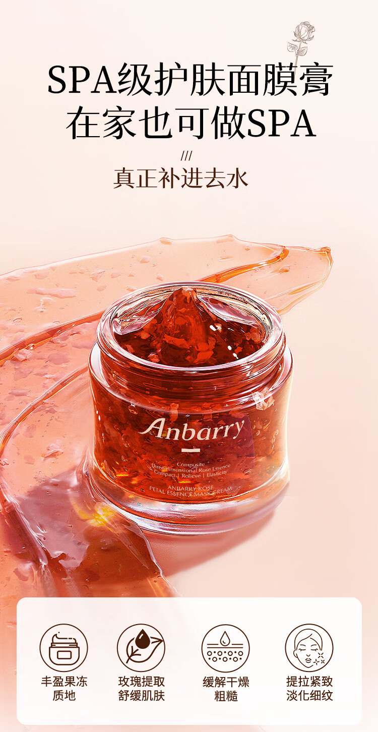 安蓓芮玫瑰花瓣精华补水保湿面膜舒缓紧致抗皱涂抹式面膜膏 【紧致抗皱舒缓保湿】4效合1