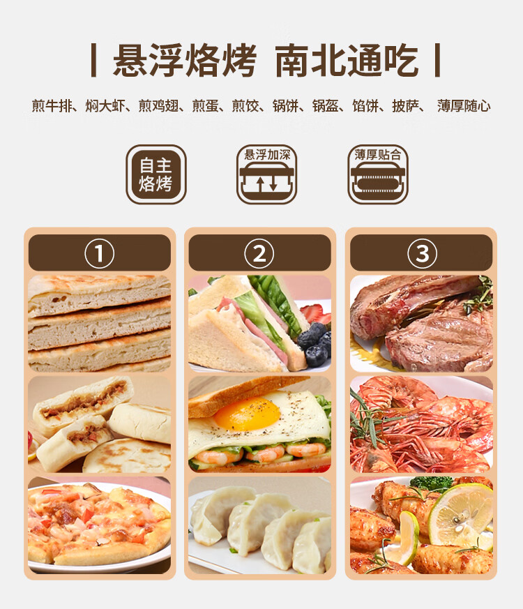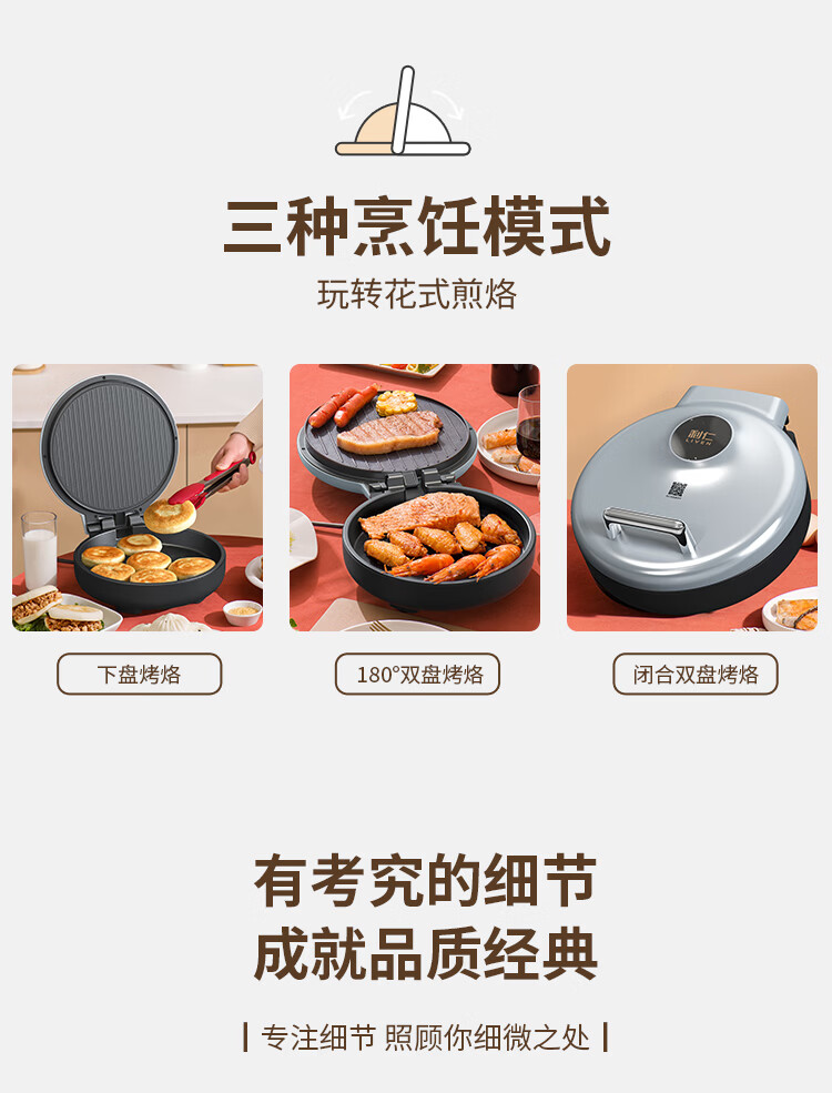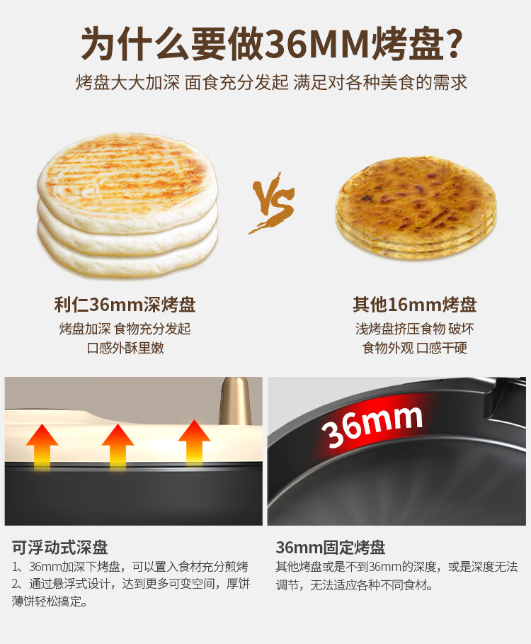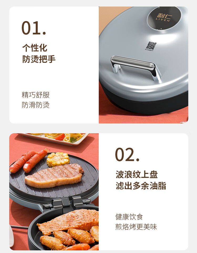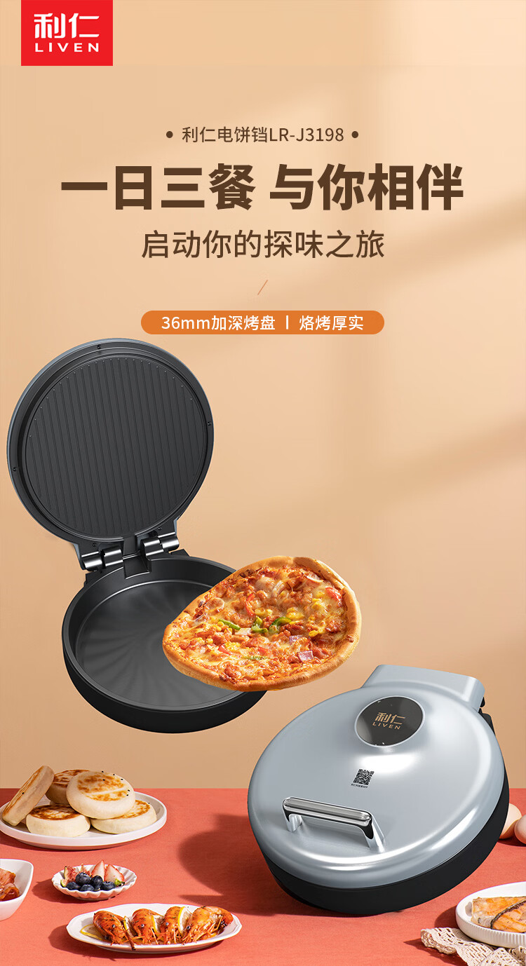 利仁(Liven)电饼铛家用 电饼档双面加热煎饼锅 煎烤烙饼锅 早餐机不粘烤盘 36mm加深 新款随机发货 可做三明治 【本店2026新款】快速加热+升降烤盘