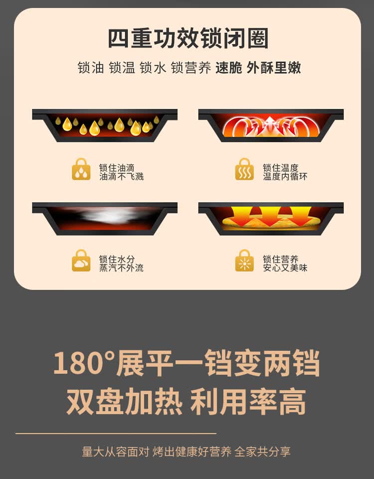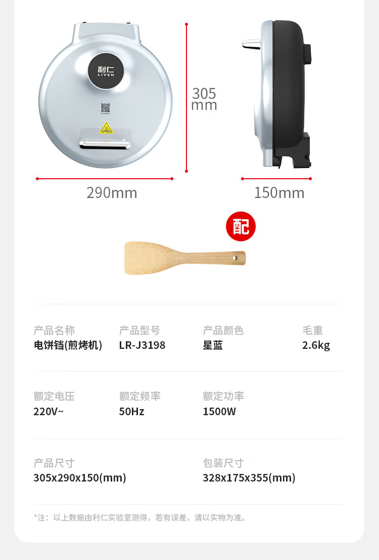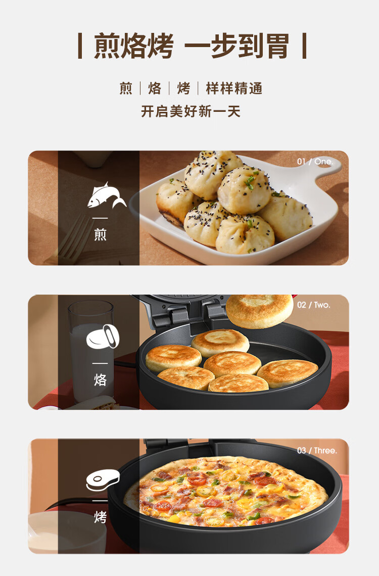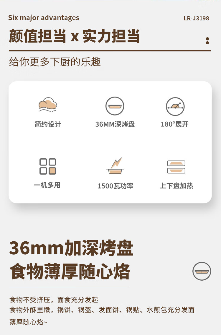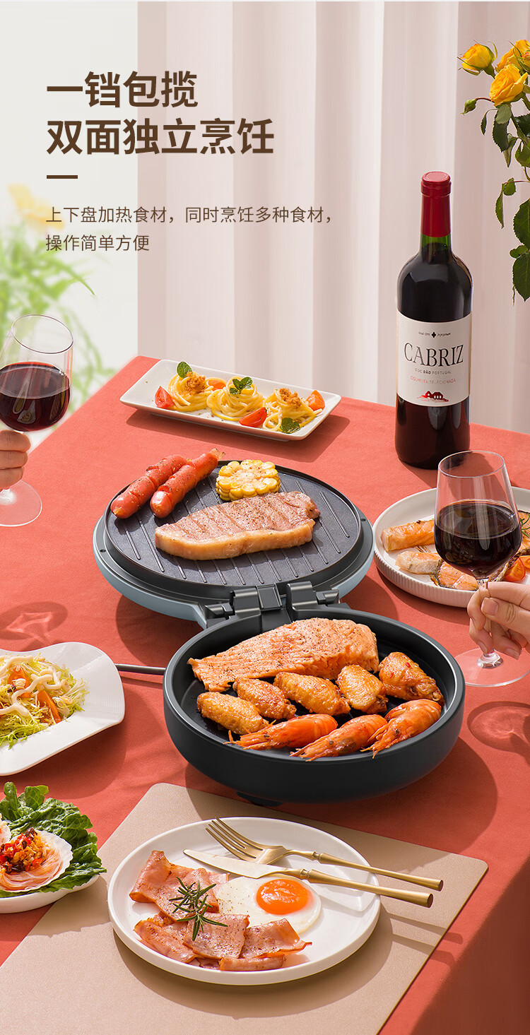 利仁(Liven)电饼铛家用 电饼档双面加热煎饼锅 煎烤烙饼锅 早餐机不粘烤盘 36mm加深 新款随机发货 可做三明治 【本店2026新款】快速加热+升降烤盘