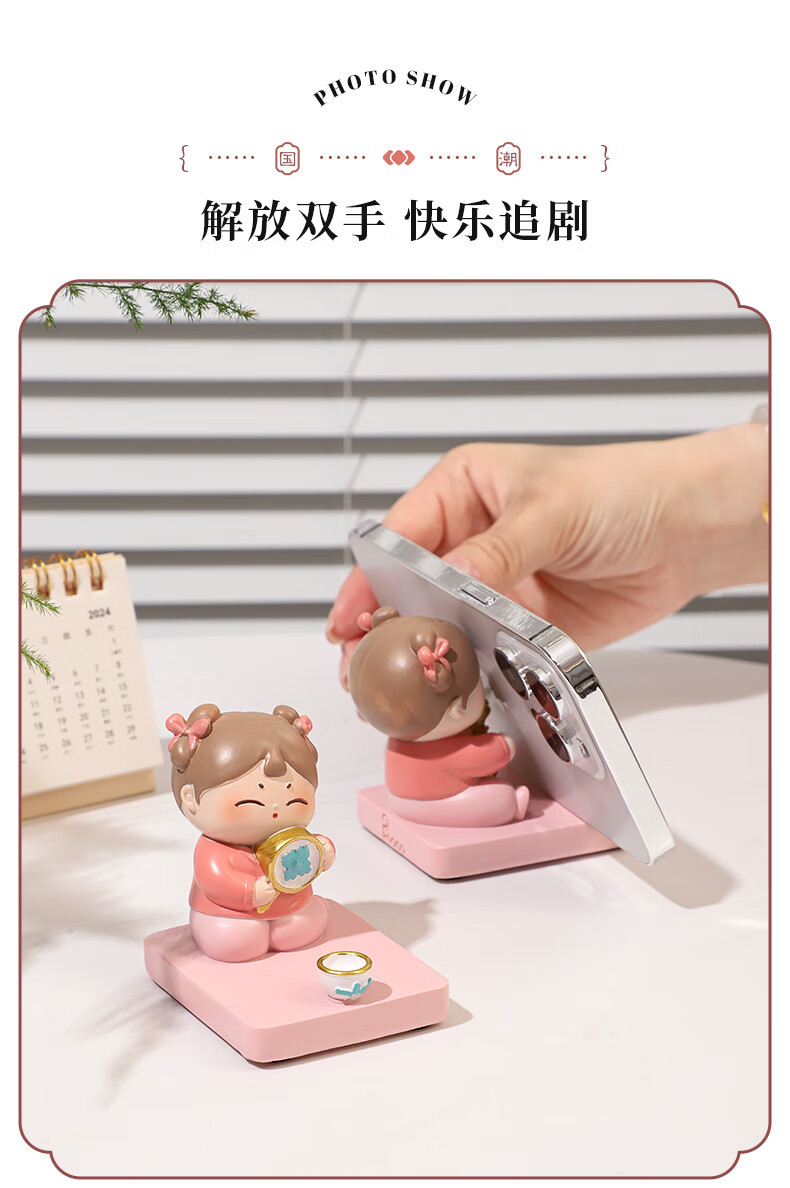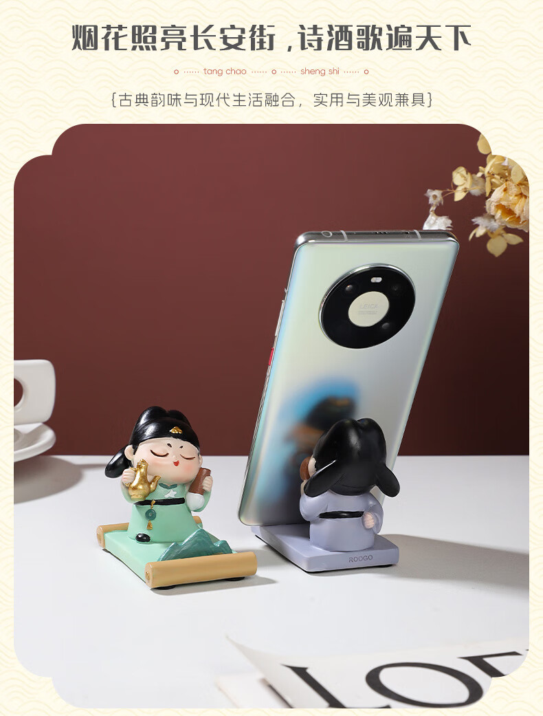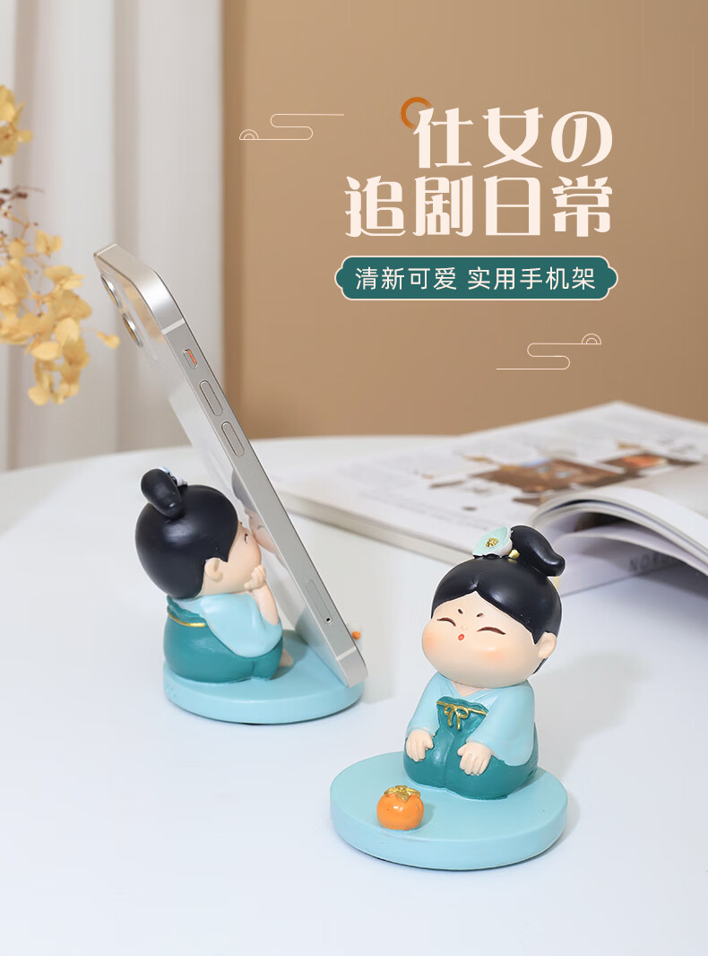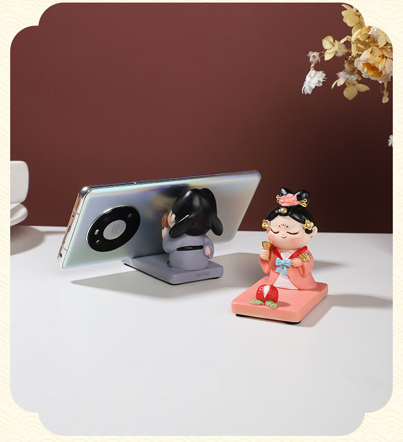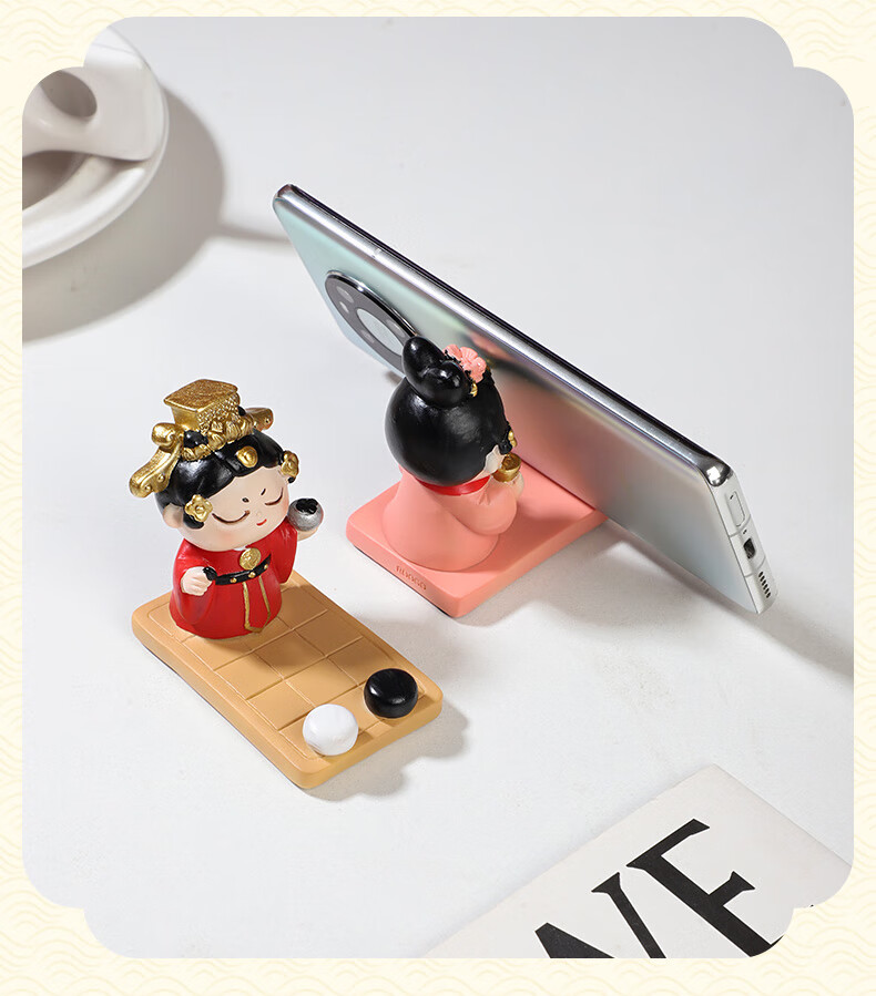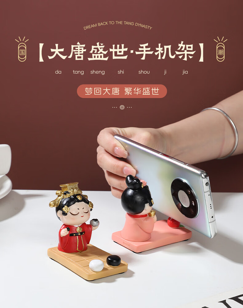 如果西安文创纪念品创意国风手机架实用桌面办公室摆件伴手礼新年礼物 唐仕女手机架全套2个