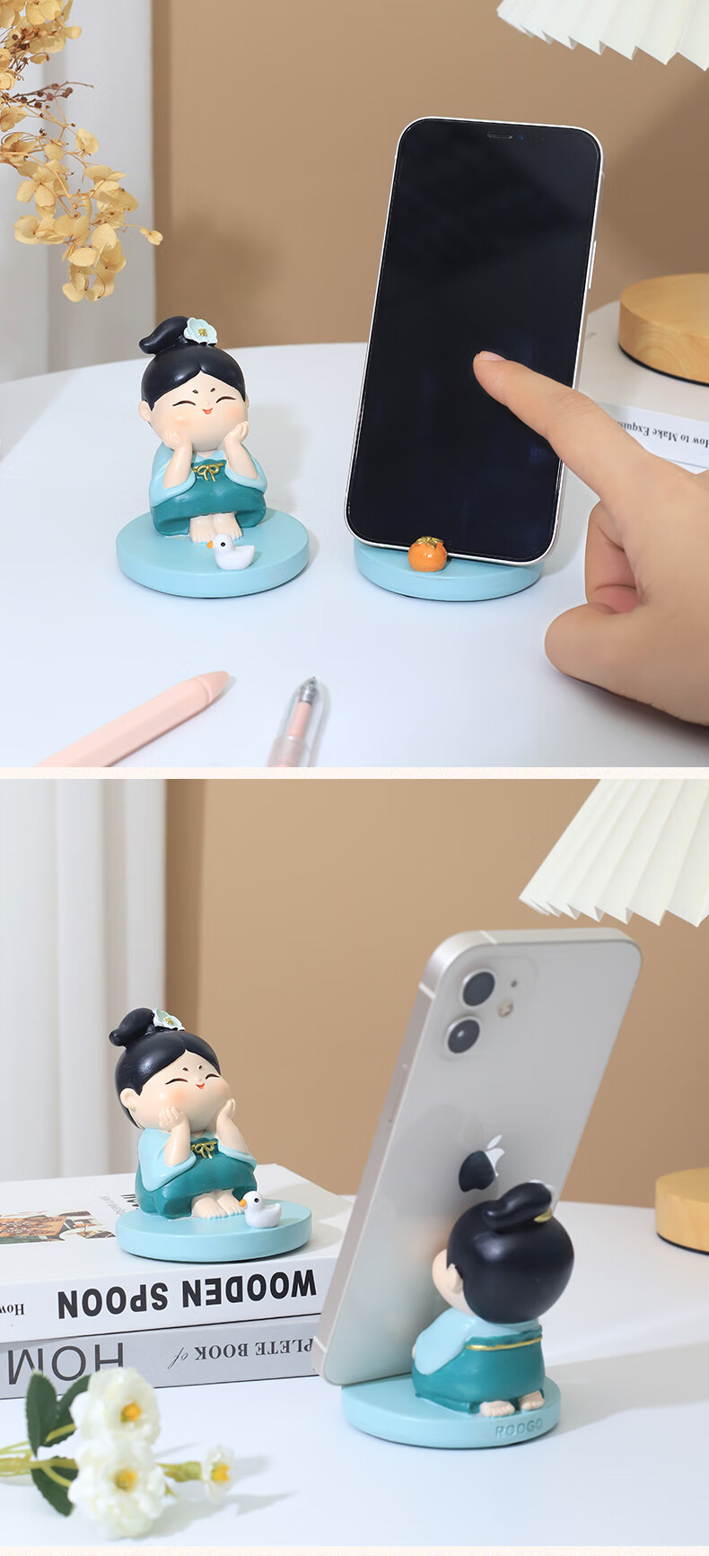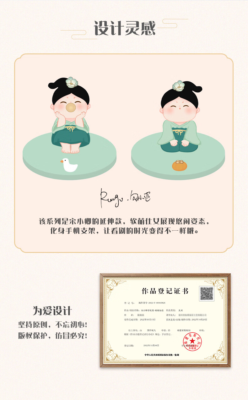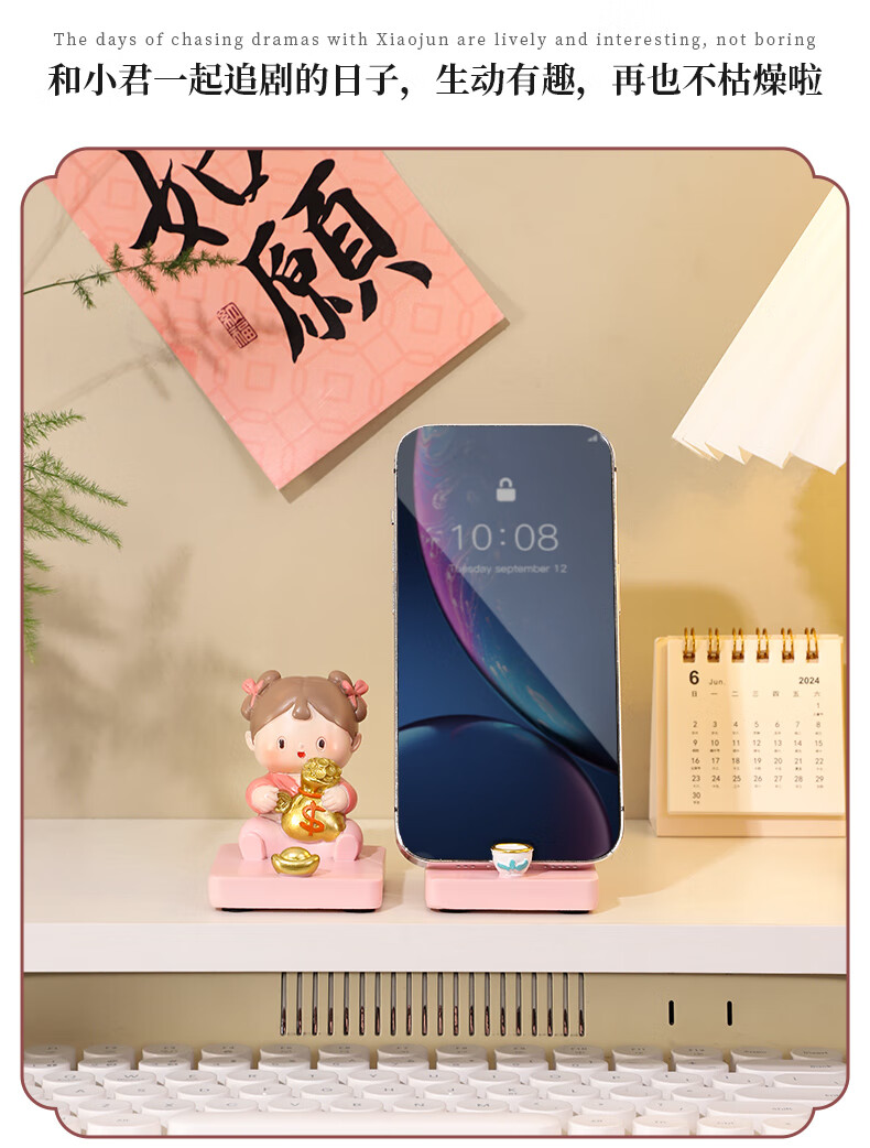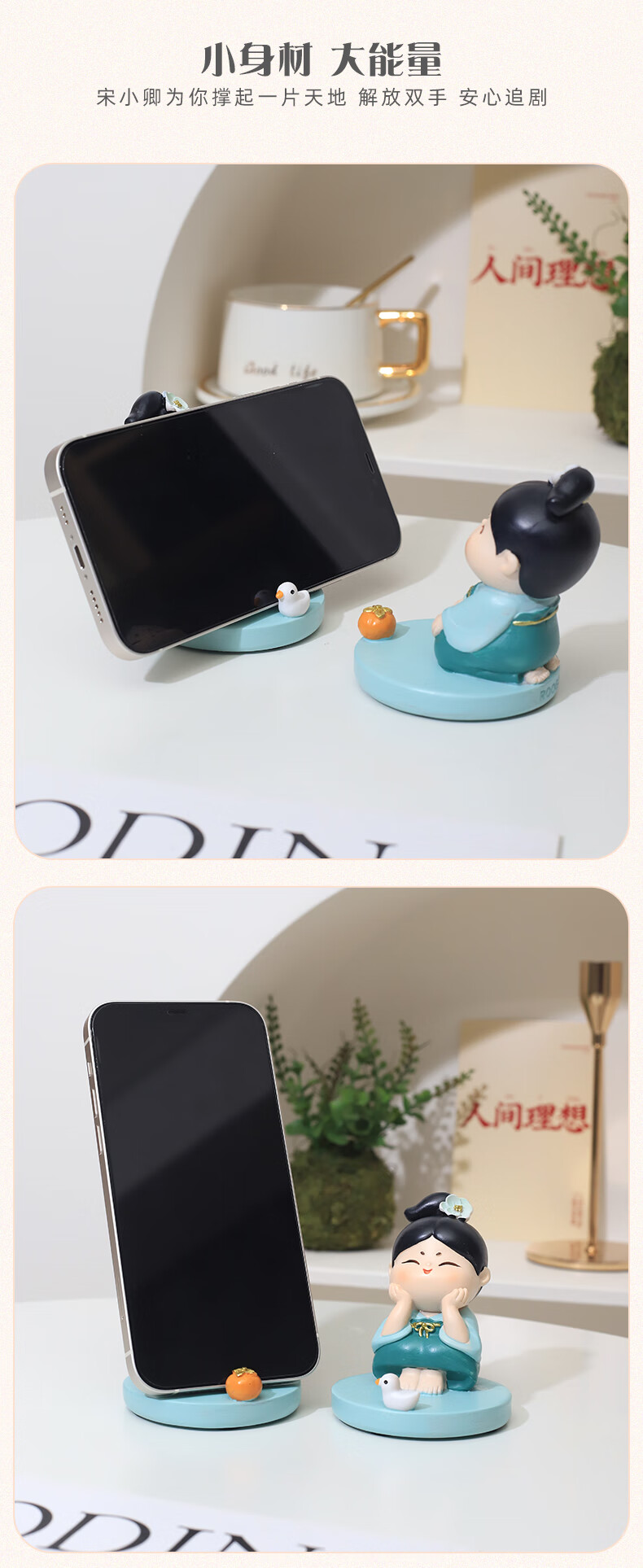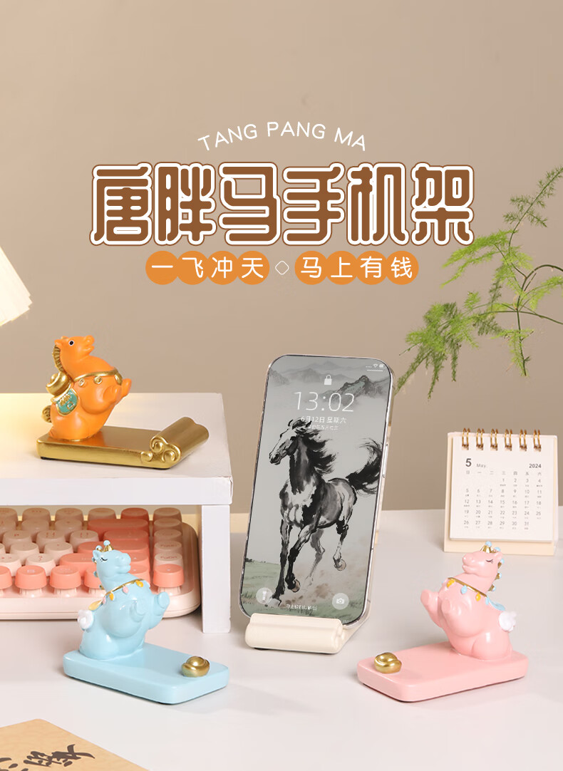 如果西安文创纪念品创意国风手机架实用桌面办公室摆件伴手礼新年礼物 唐仕女手机架全套2个