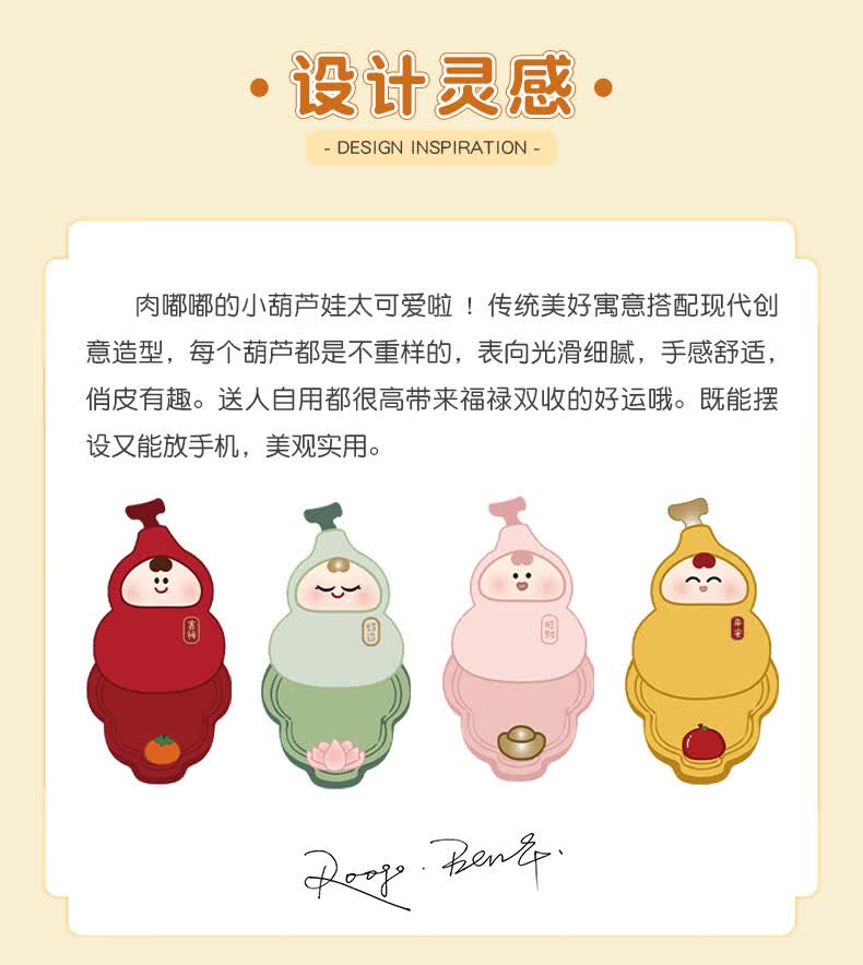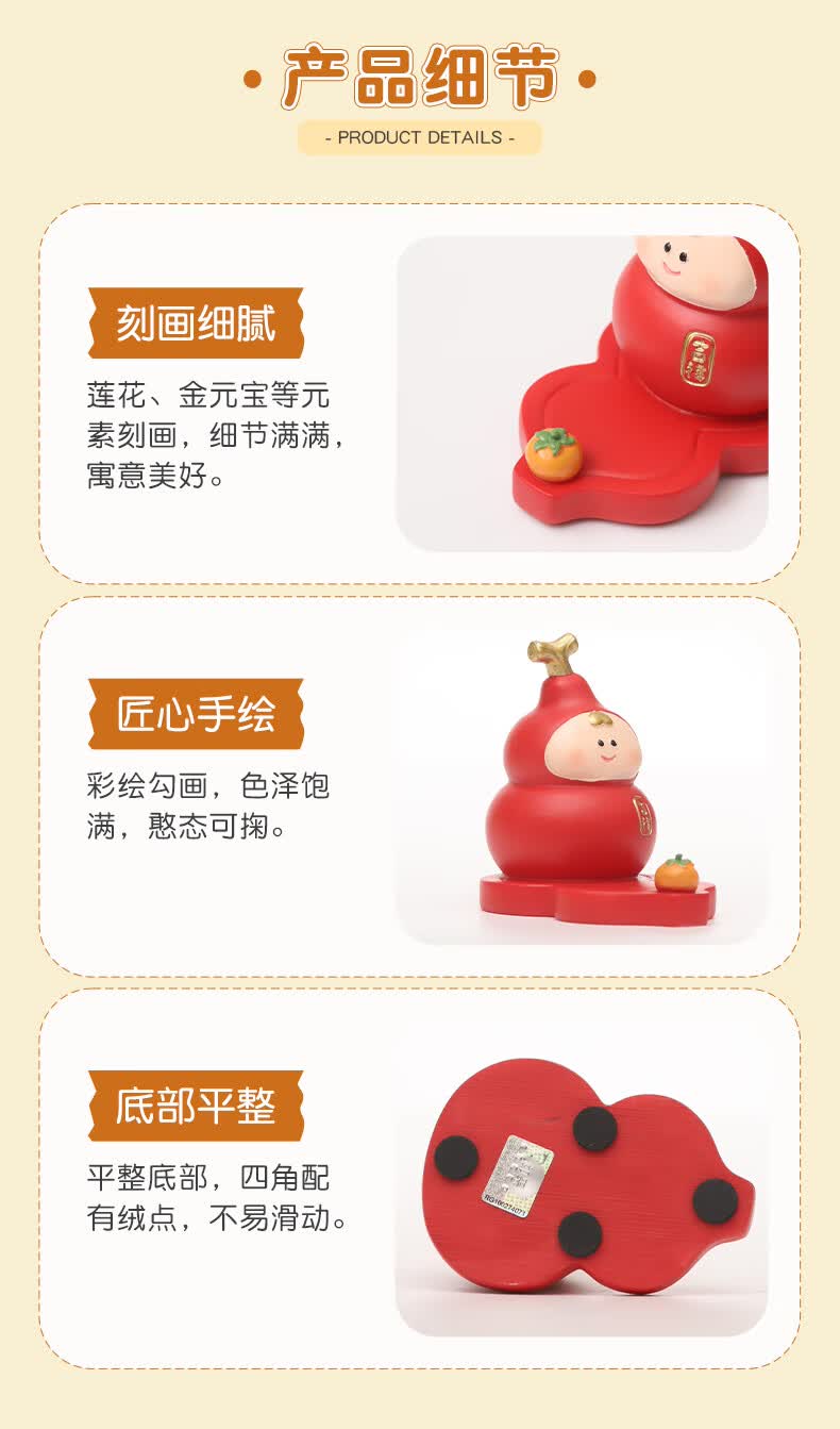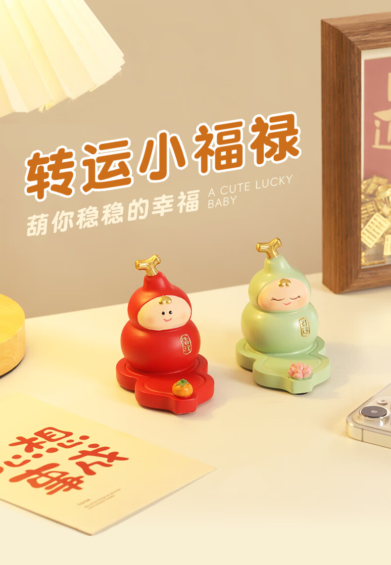 溥畔葫芦娃娃喜庆中国风书桌摆件纪念公仔招财幸运平安福禄伴手礼物 创意葫芦玩具「幸运」