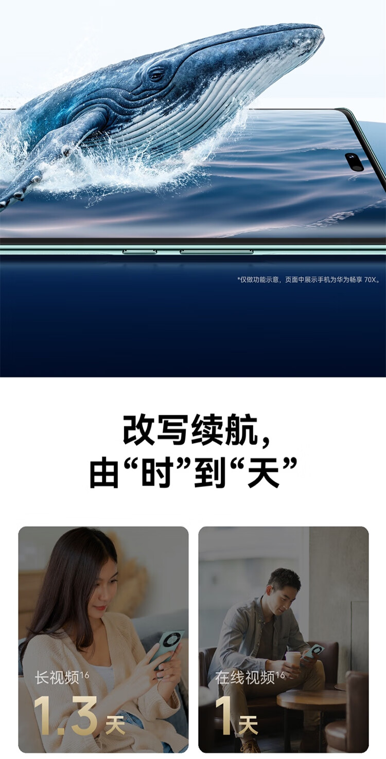 华为畅享 70X 尊享版 256GB 流沙金 6100mAh华为巨鲸长续航 麒麟8000芯片华为手机【赠话费券】