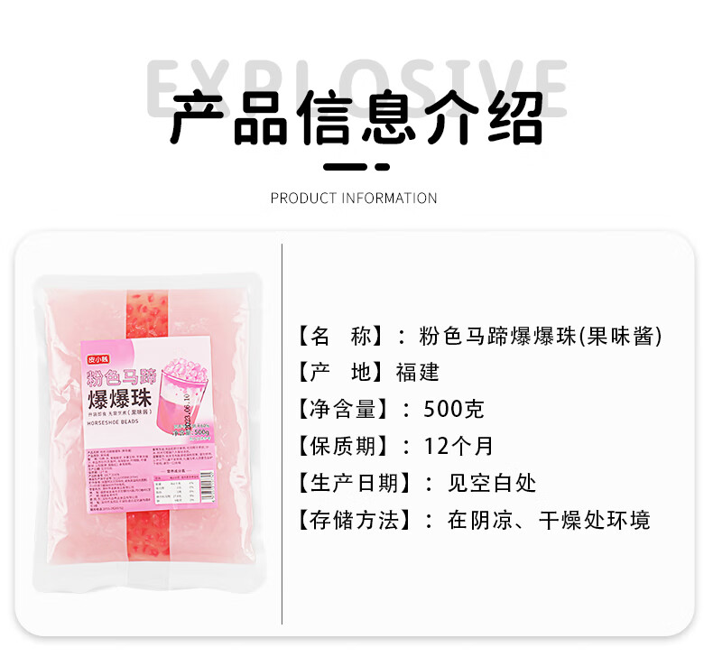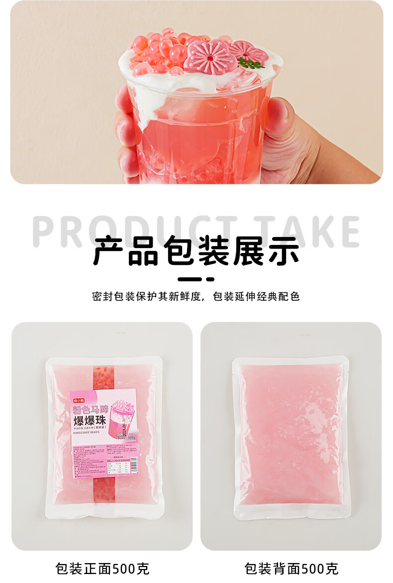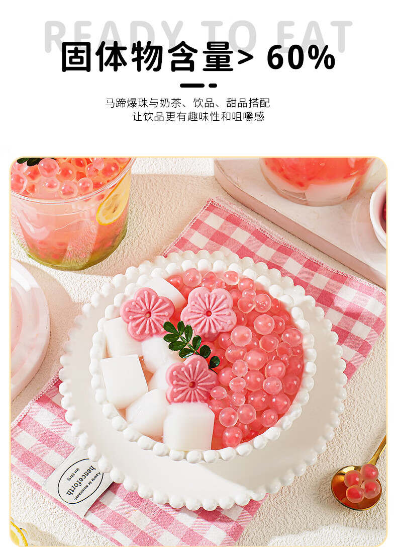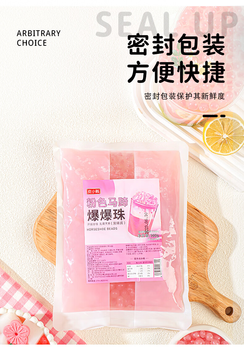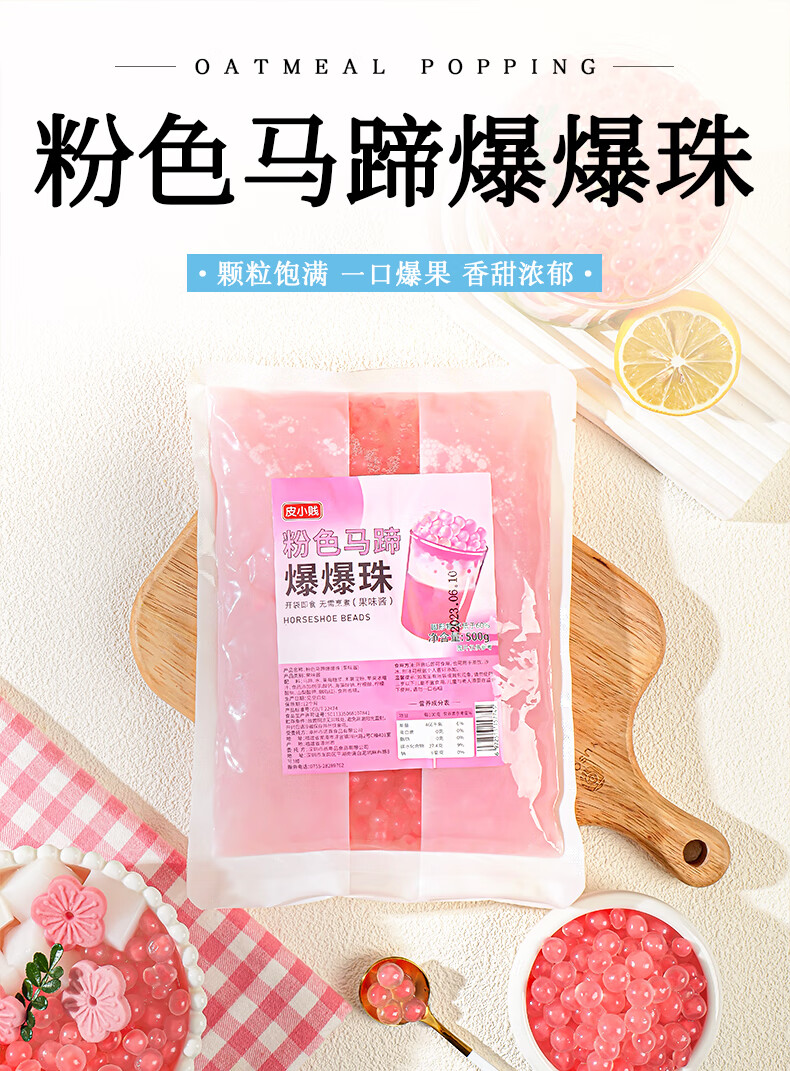 皮小贱粉色马蹄爆爆珠晶球脆啵啵摆地摊冰粉奶茶店水果捞原料奶茶小料