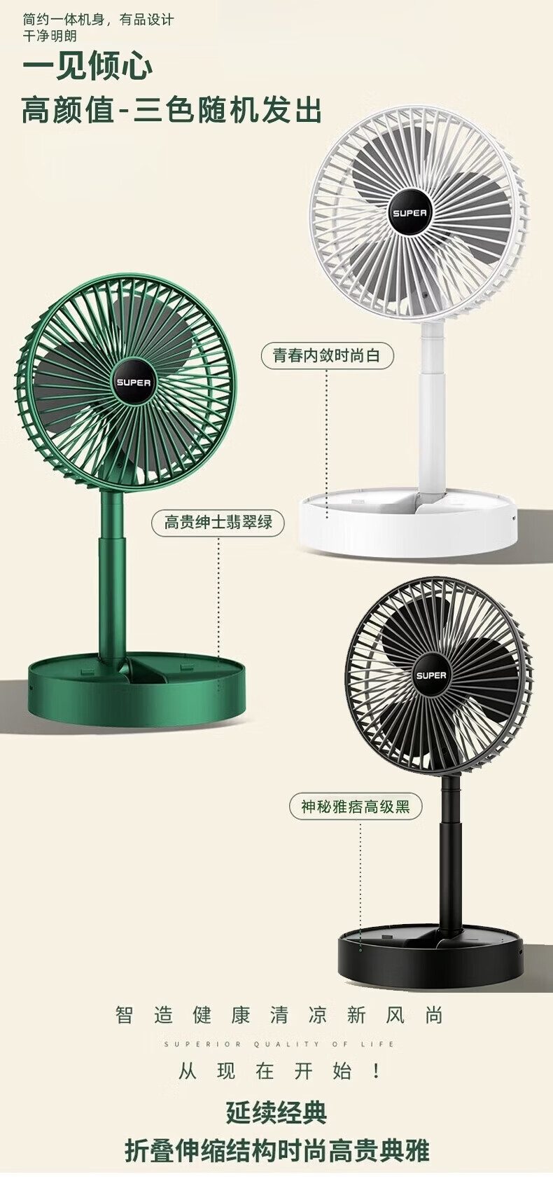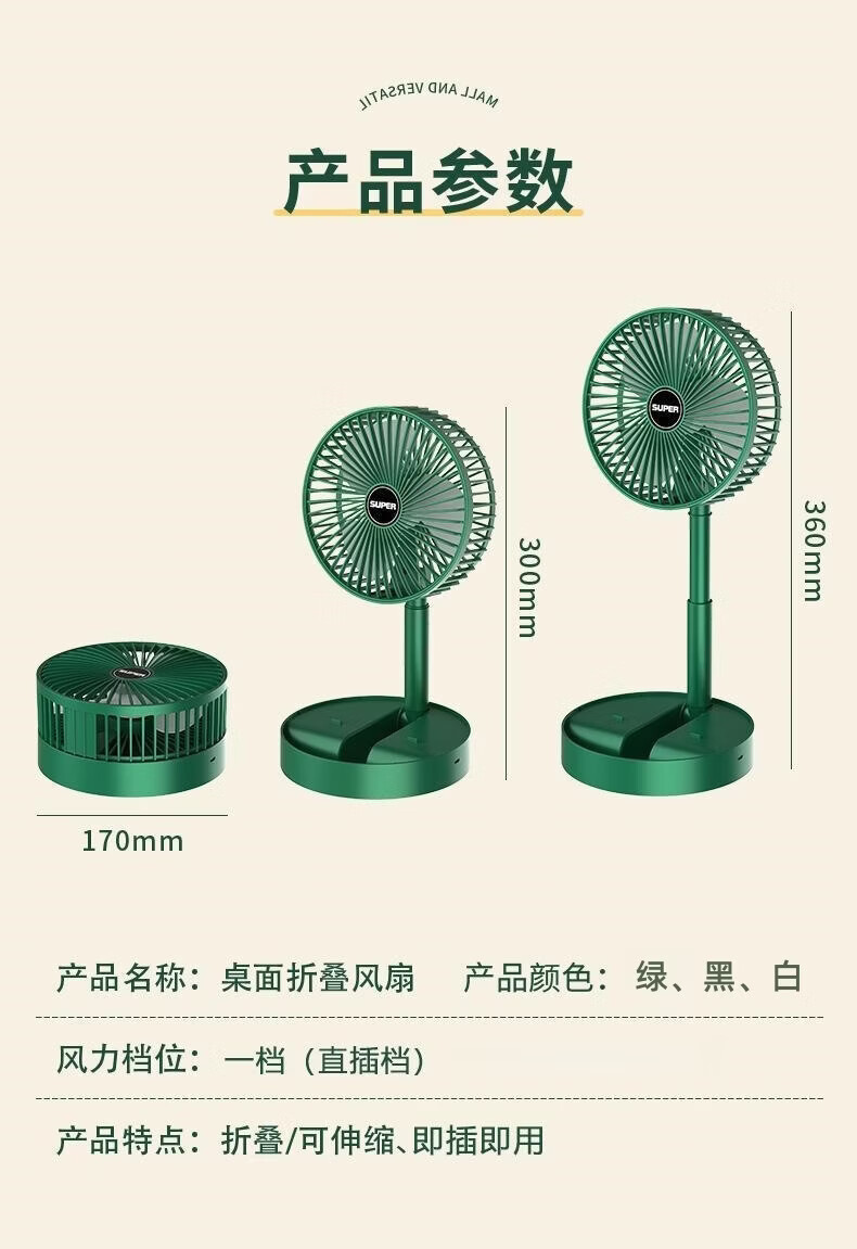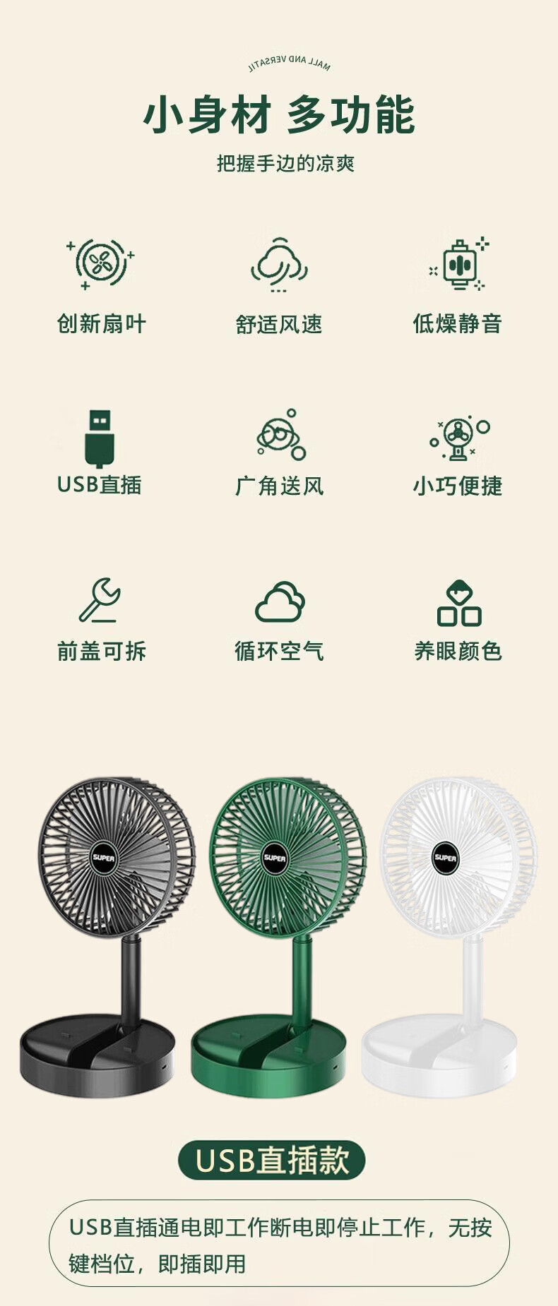 伸缩折叠小风扇家用静音运行学生宿舍办公室台式USB直插桌面大风力台面落地两用折叠电风扇SSF2 直插款【颜色随机】无档位折叠风扇-1个装 0mAh