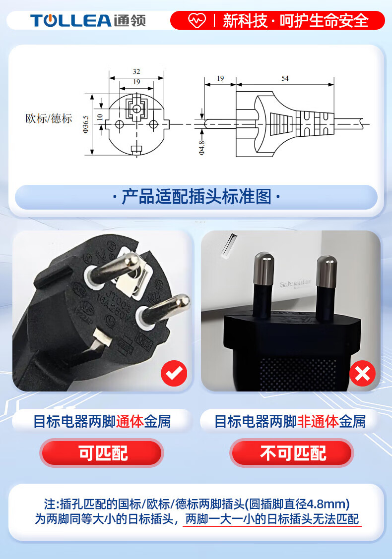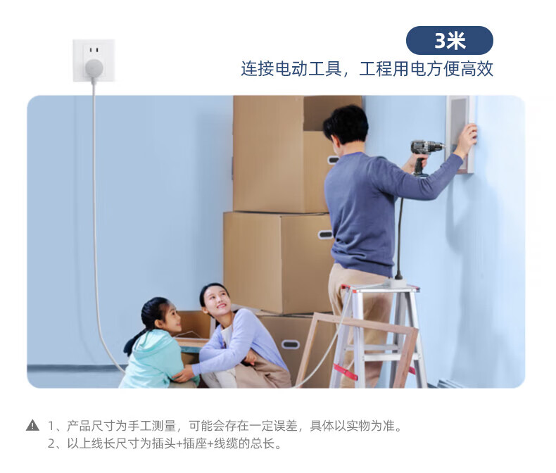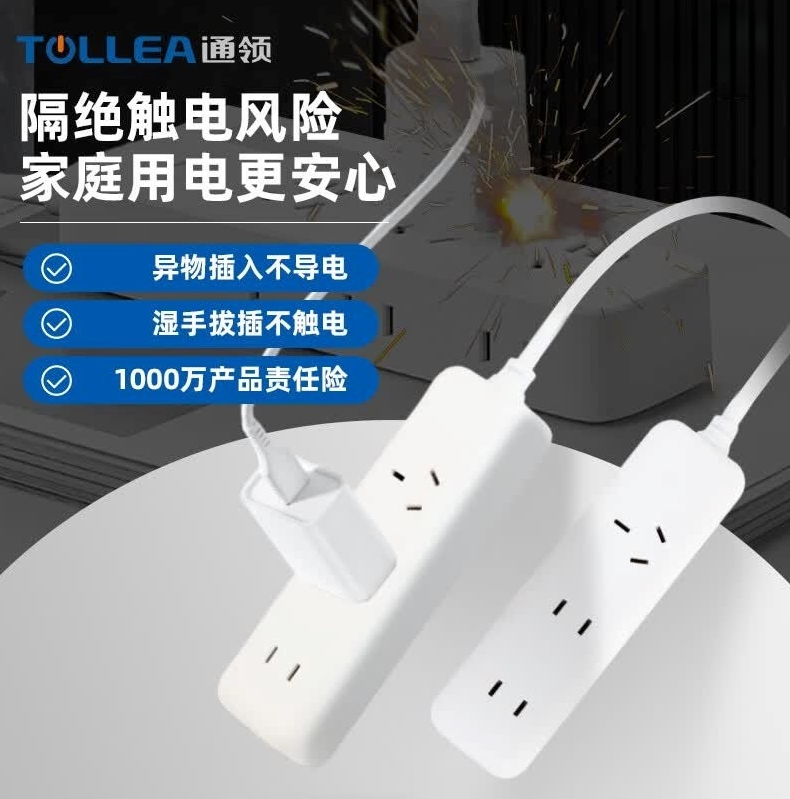 通领【专利防触电】国内首款防触电插排专利防水防溅圆孔插座 含1000万责任险拖线板/排插/插线板家用 3位*3.0米防触电白色