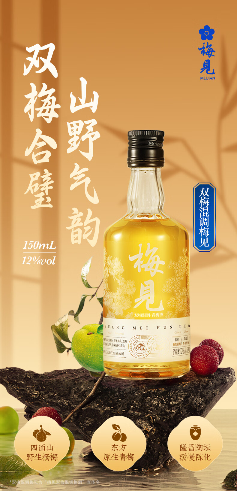 梅见12度青梅酒 果酒梅子酒低度微醺男女士小瓶酒便携伴手礼节日送礼 双梅混酿+乌梅梅见 12度150mL*2