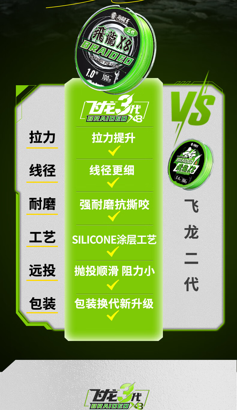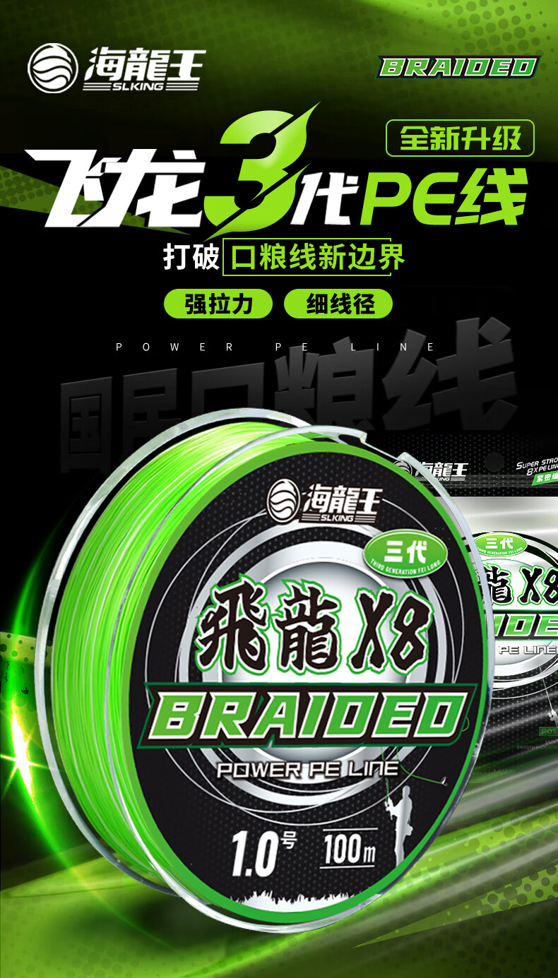 海龙王8编pe线路亚线鱼线主线pe路亚线大力马pe线顺滑远投耐磨钓鱼线 【新升级】飞龙三代100米0.8号