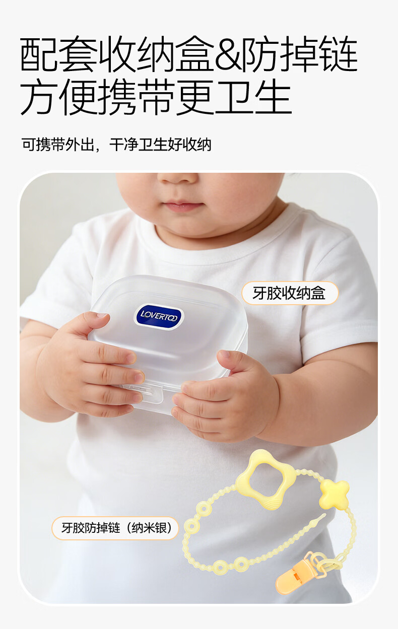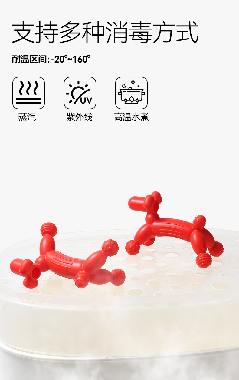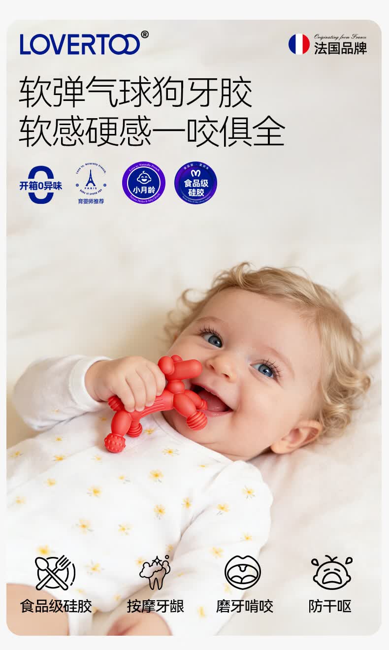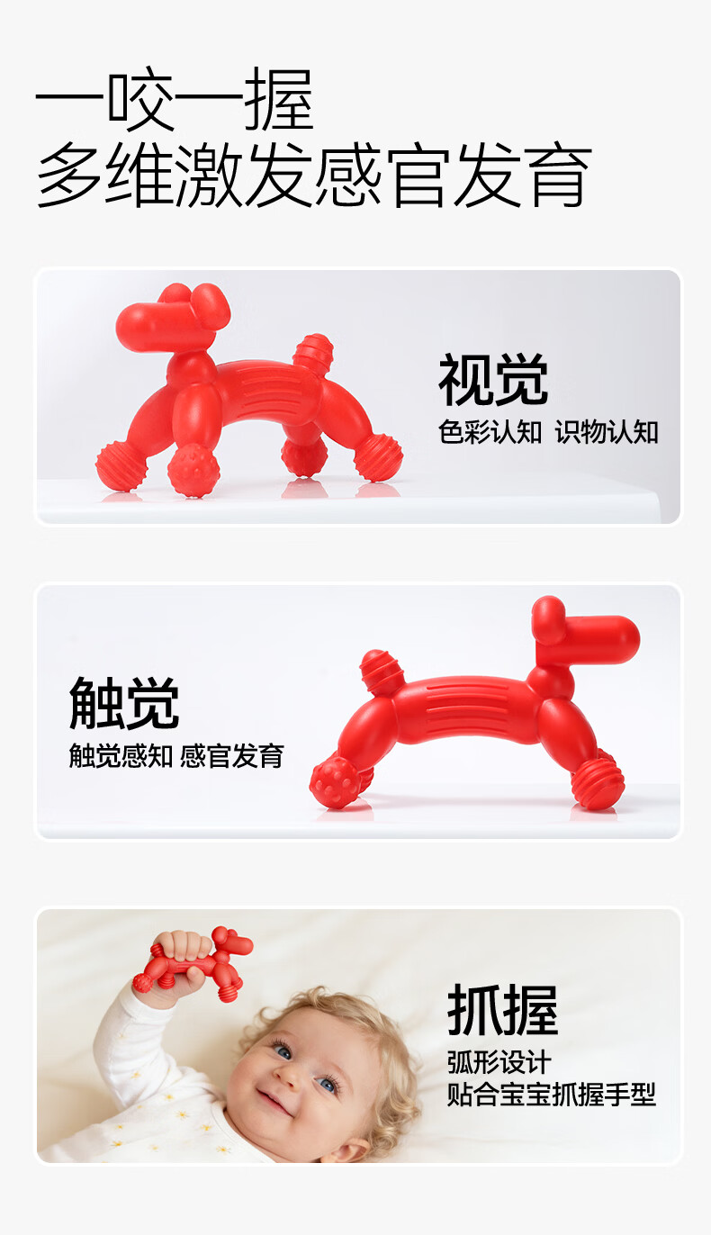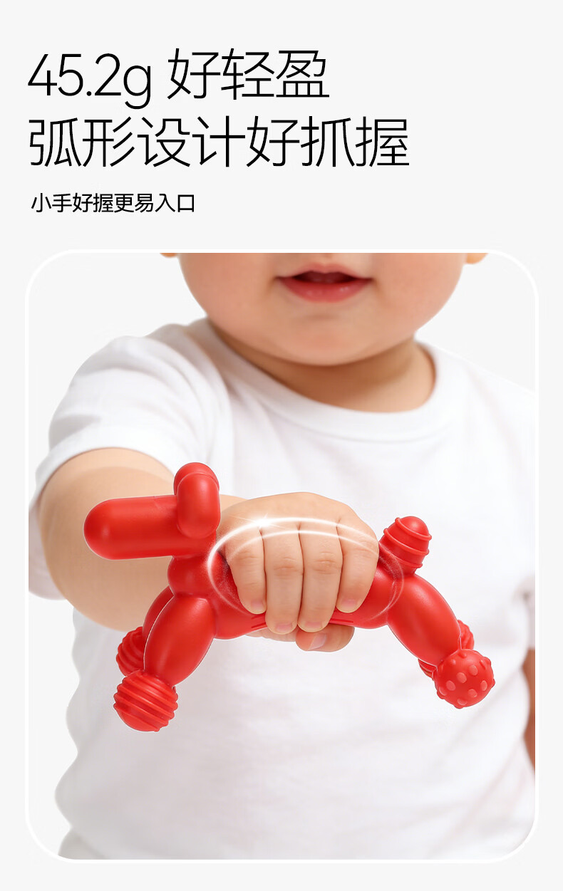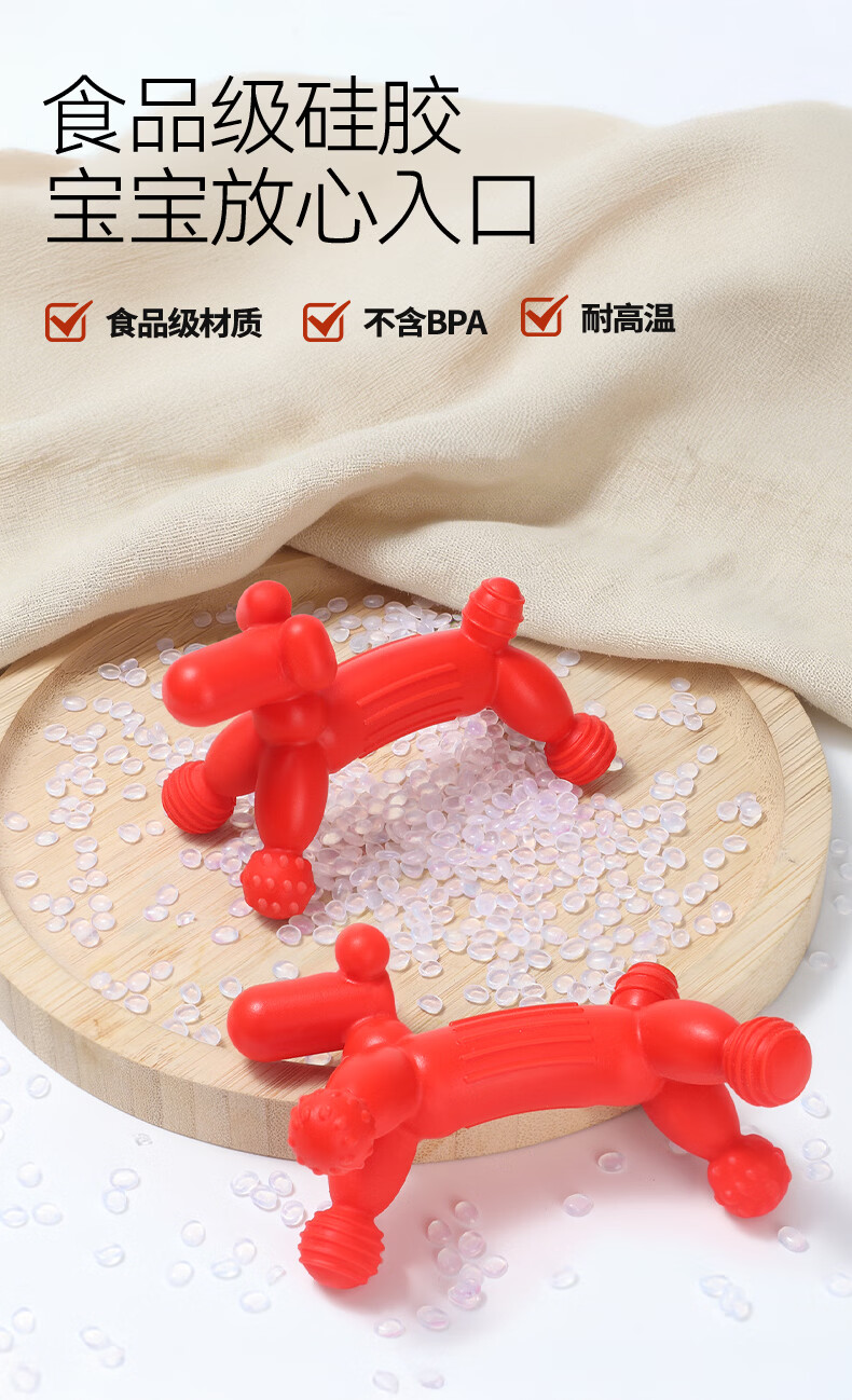 LOVERTOO婴儿牙胶宝宝防吃手气球狗咬胶口欲期安抚小蘑菇玩具硅胶磨牙棒 法式育儿-气球狗牙胶+送收纳盒+防掉链子