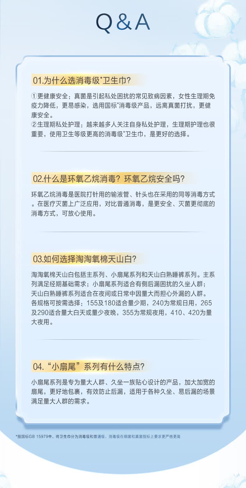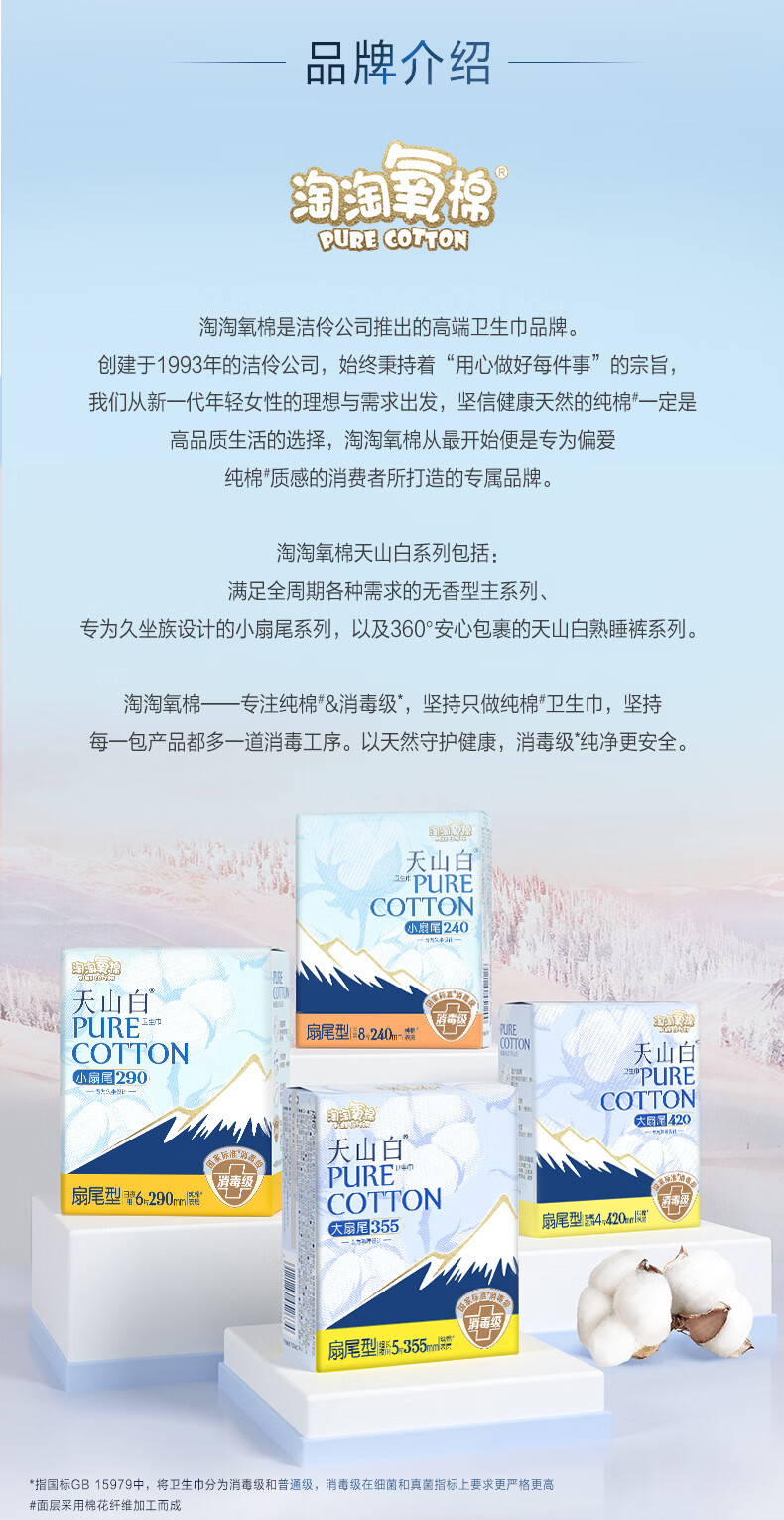 淘淘氧棉天山白消毒级卫生巾日夜用卫生巾组合安睡裤多系列任选6件姨妈巾 天山白155mm护垫25片*1包